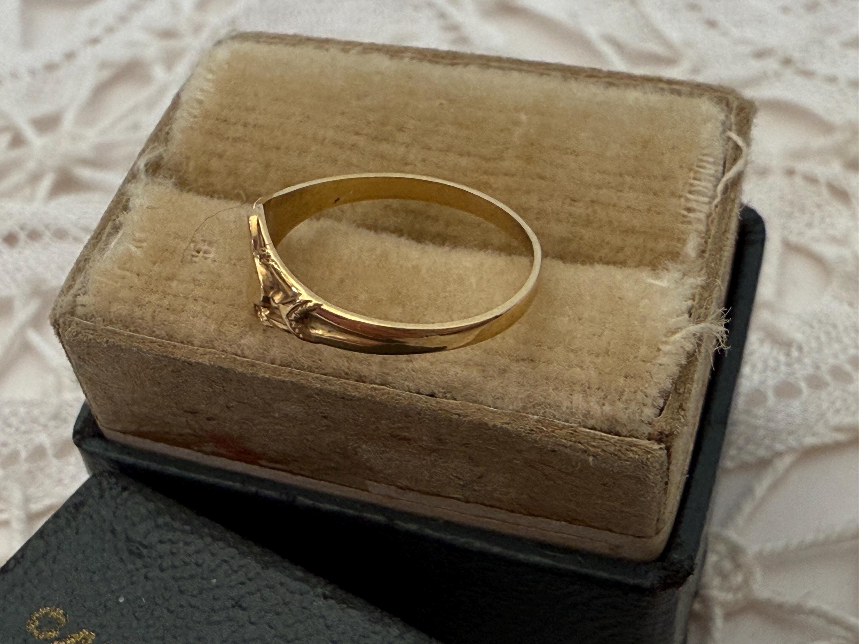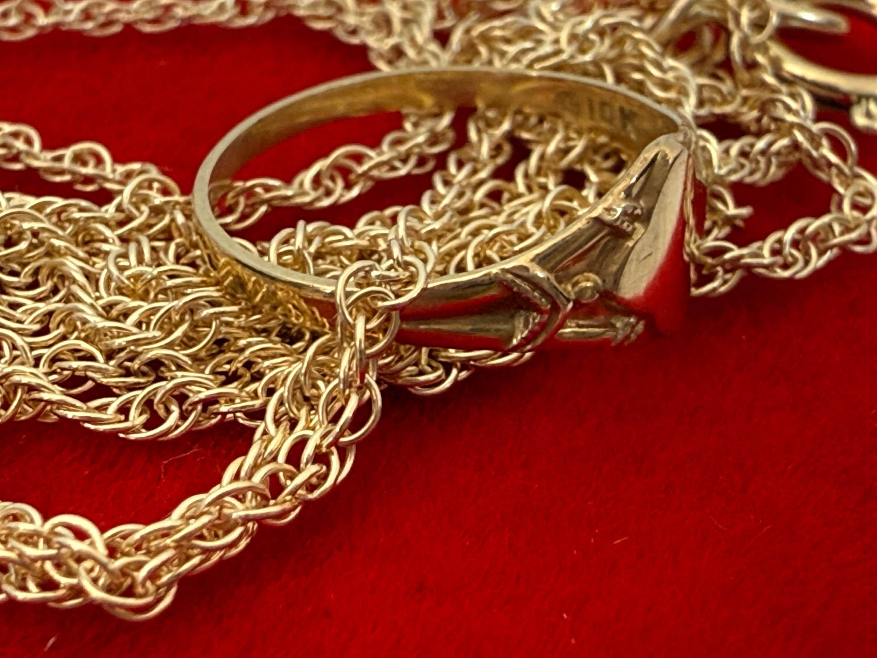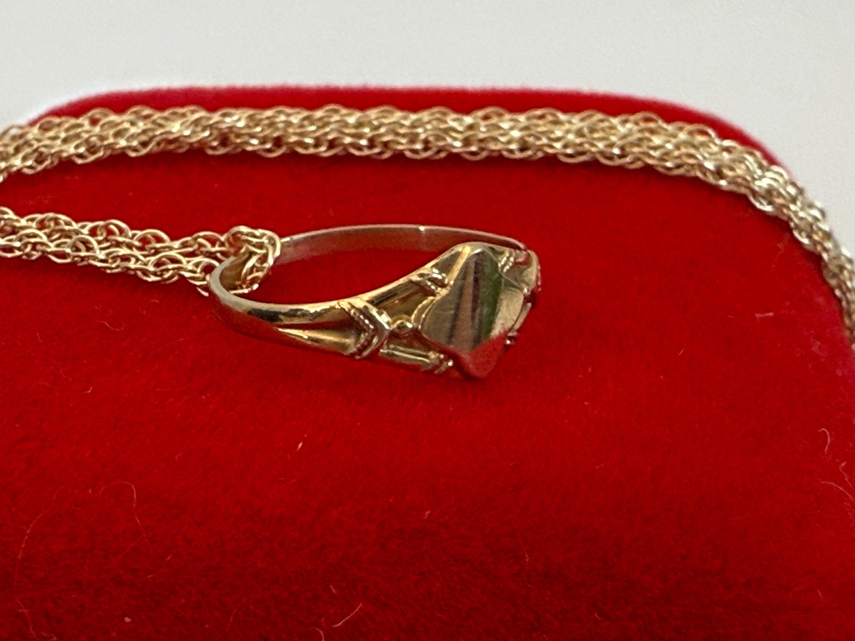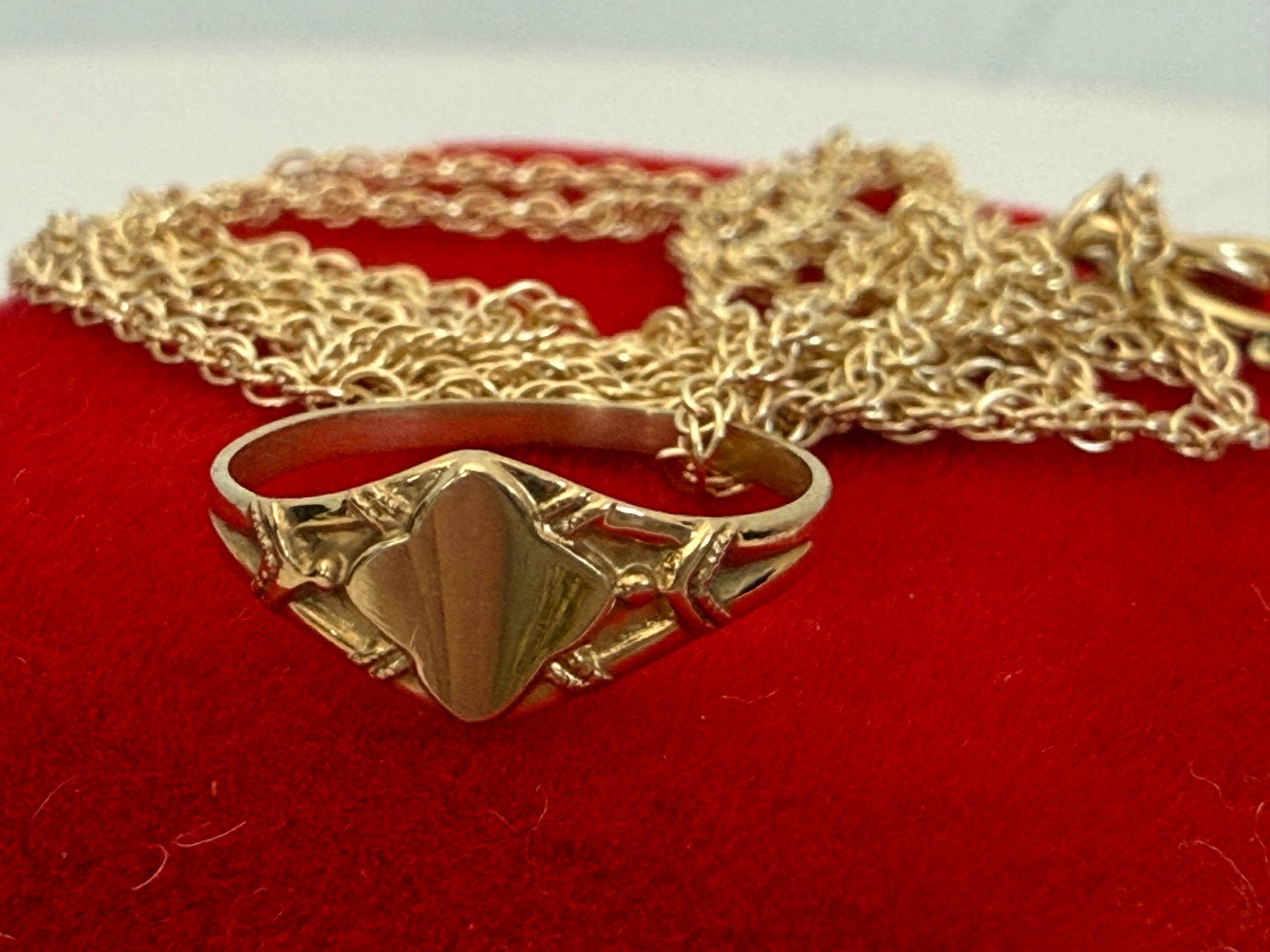 Antique 10K Yellow Gold Small Tiny Baby Ring on 14K GF Chain, Size .75