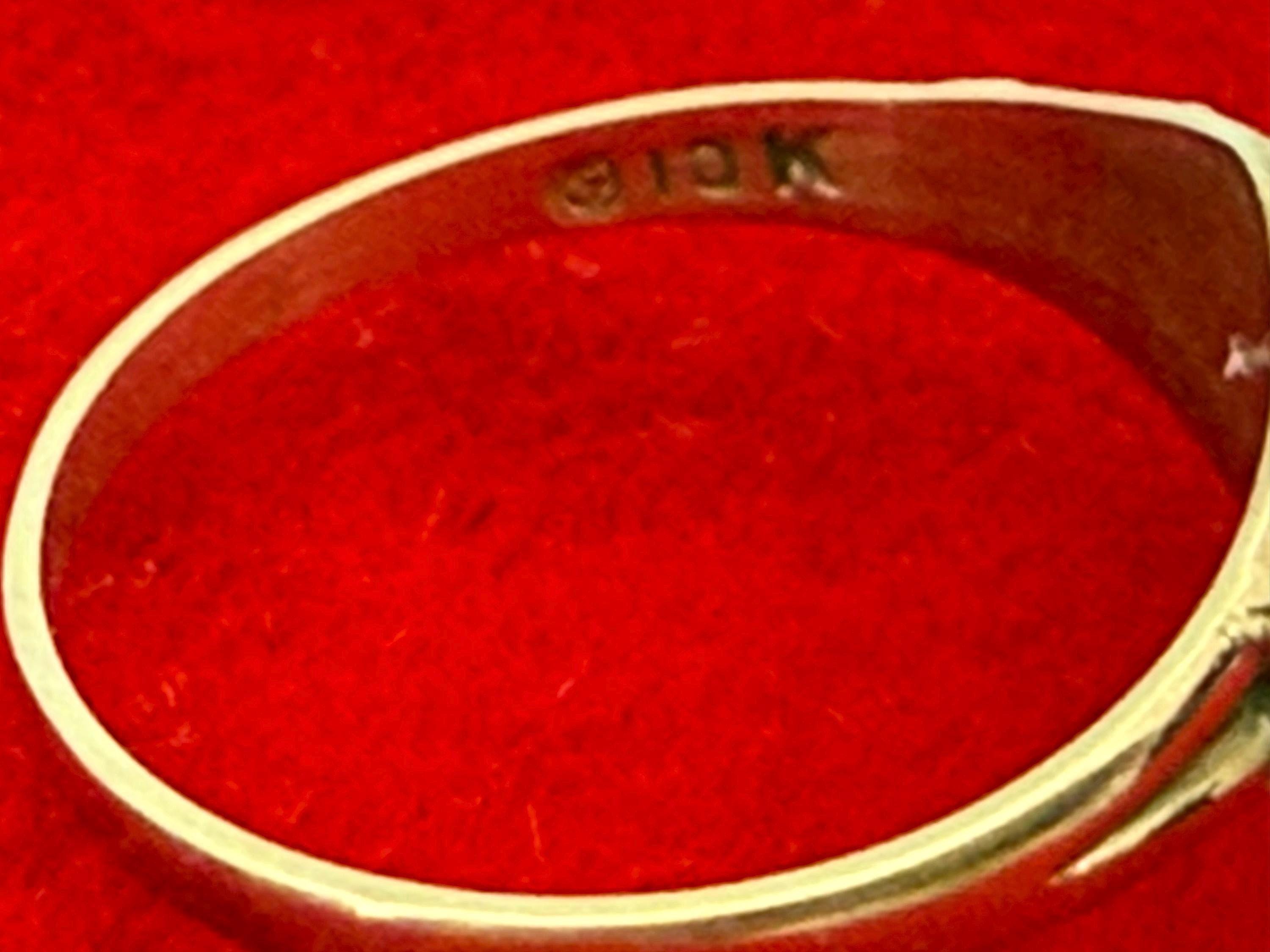Ring has 10K hallmark and a maker’s mark on inner band.