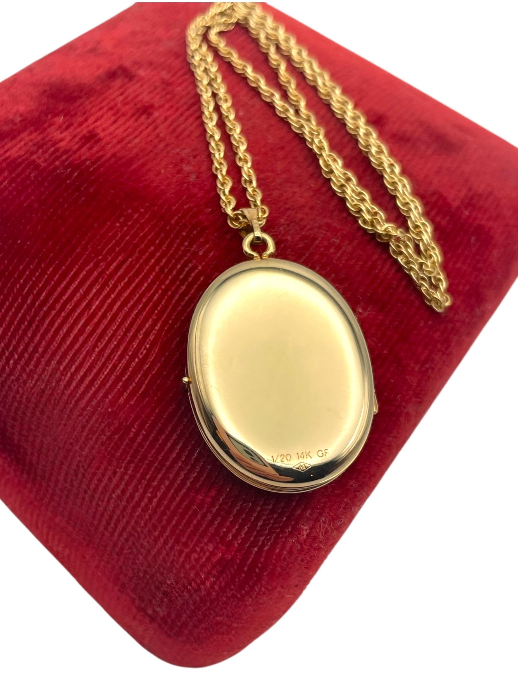 Locket is marked 1/20 14K GF with the letter M inside a diamond shape on the back of the locket.