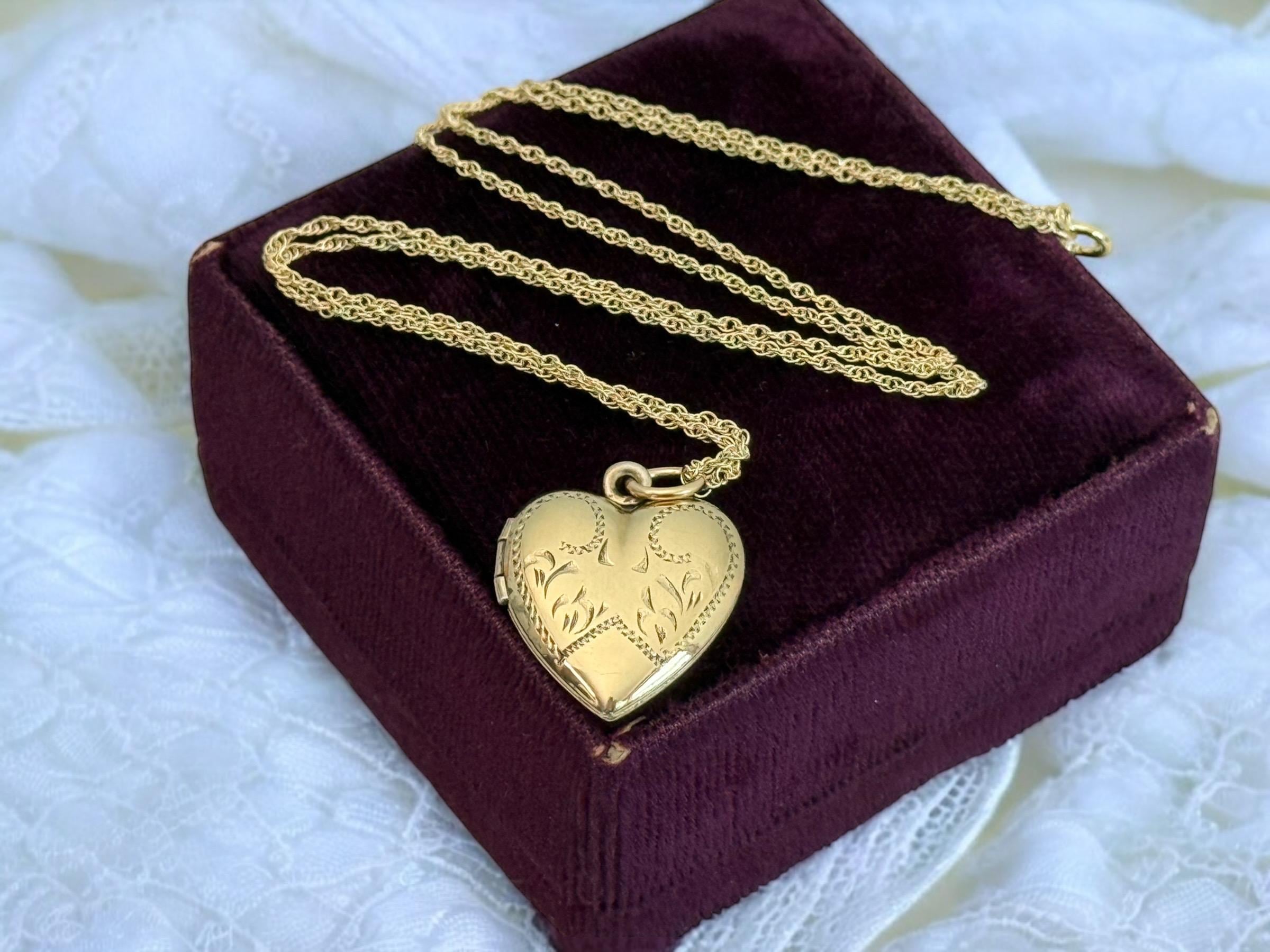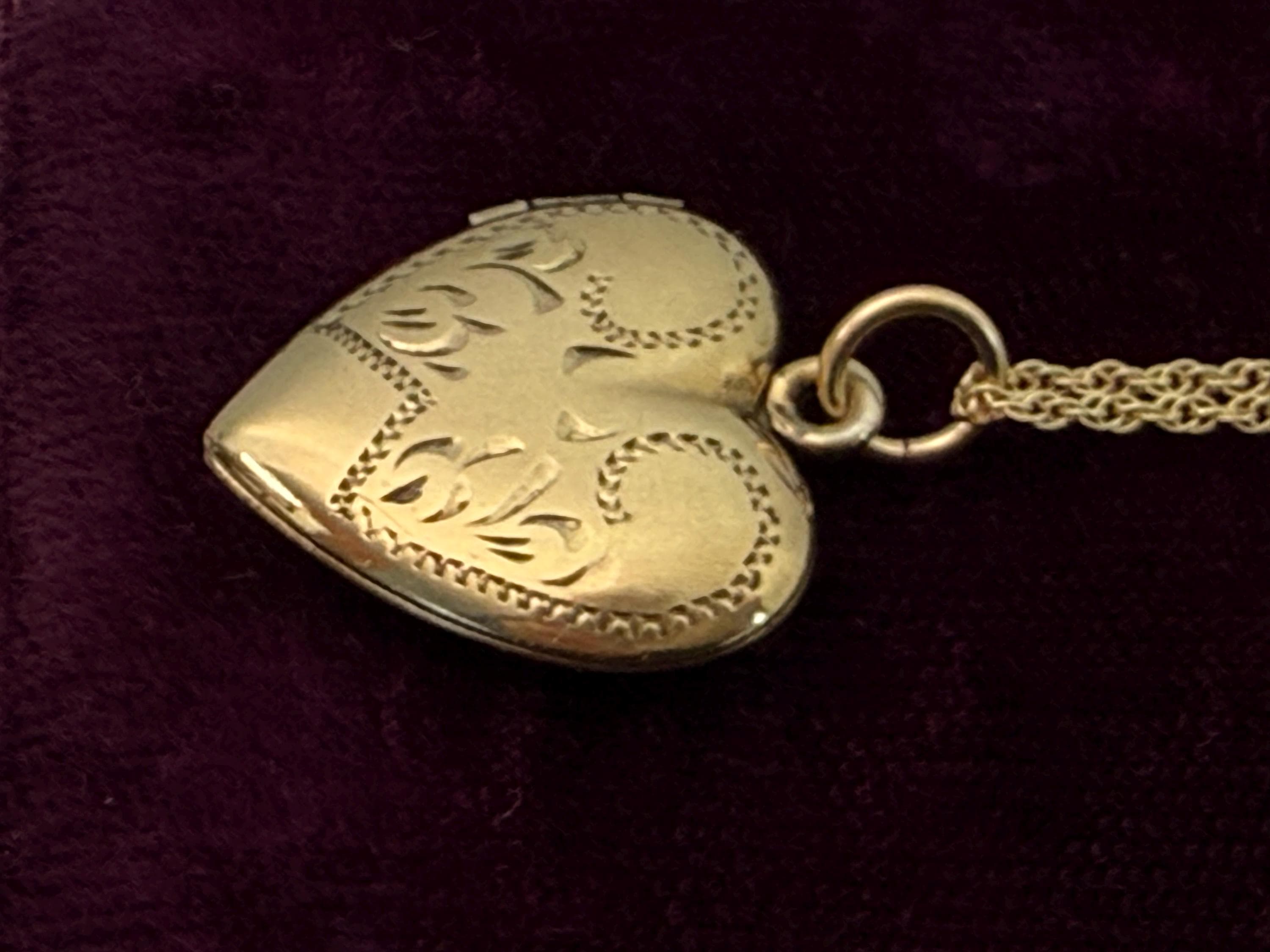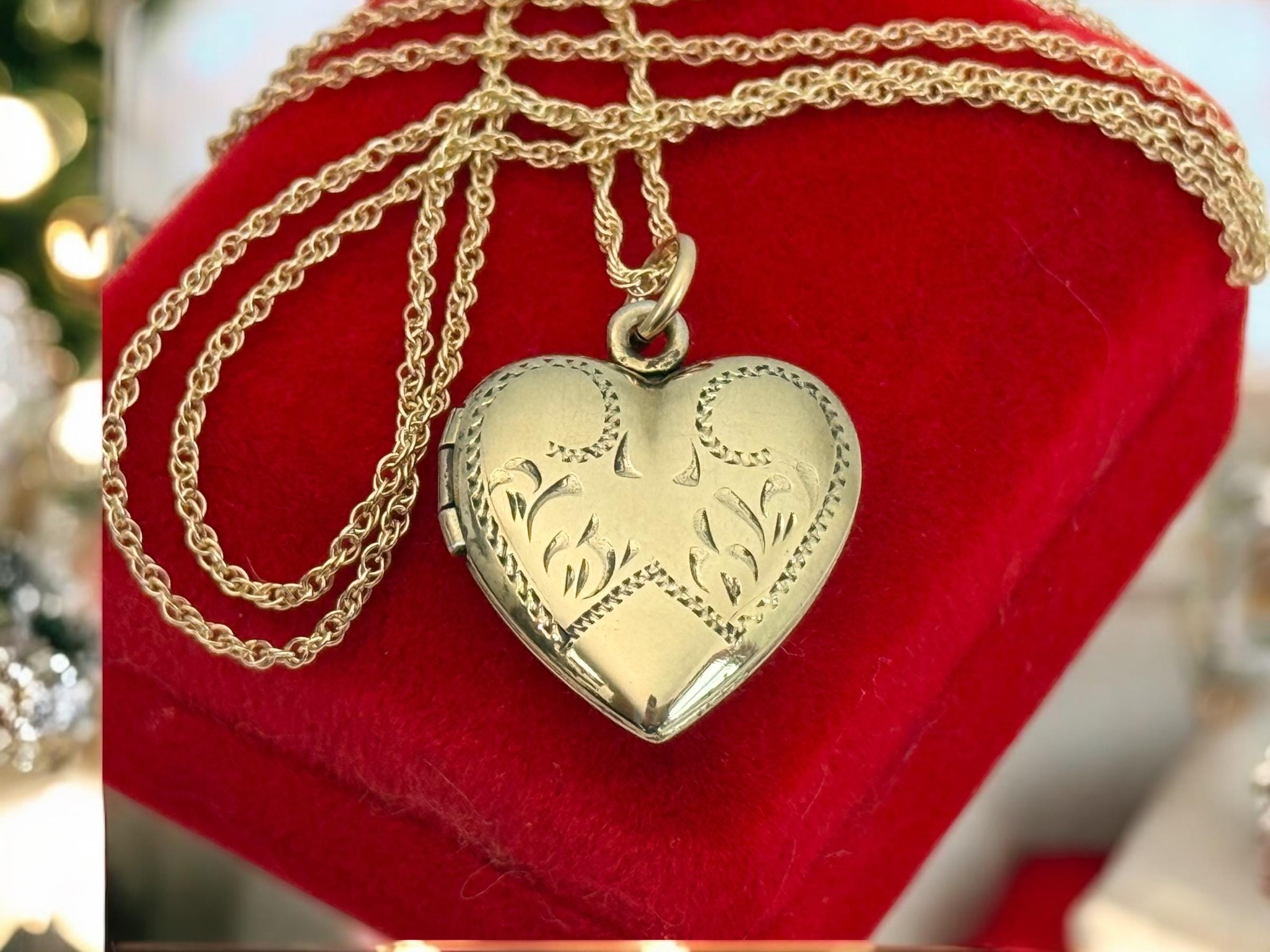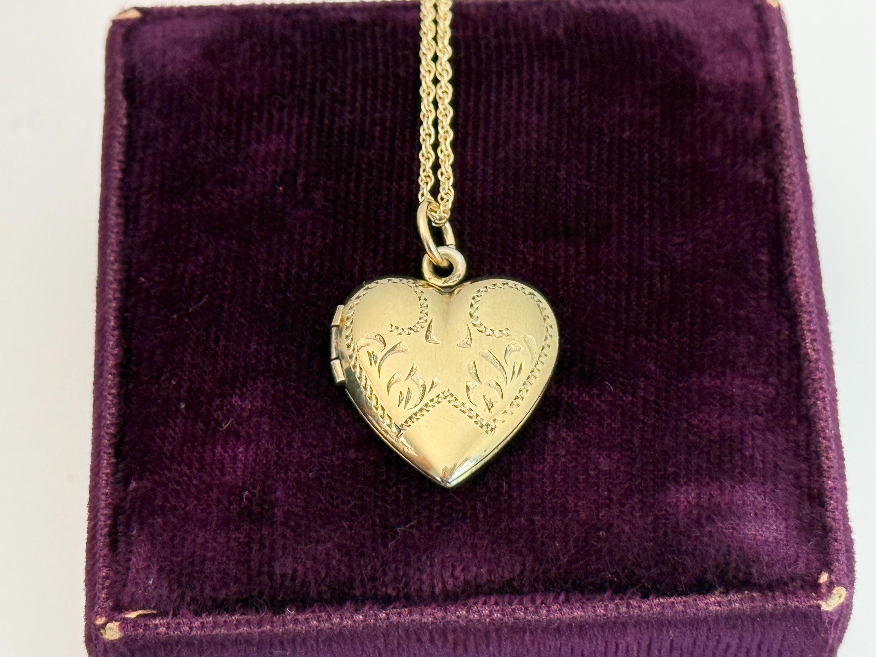 Vintage Gold Filled Heart Locket - Etched Lines Swirls, Necklace Pendant on 14K GF chain