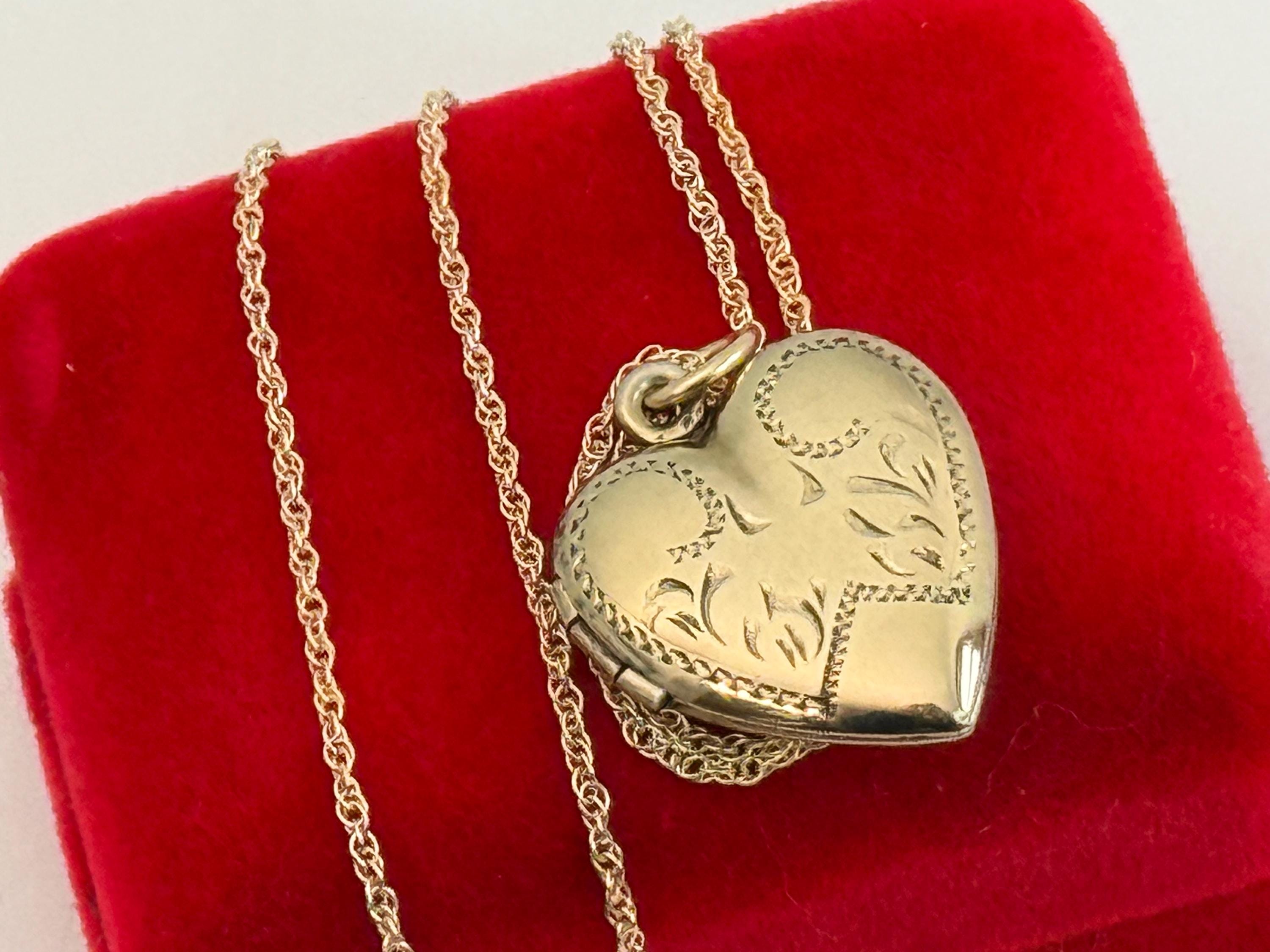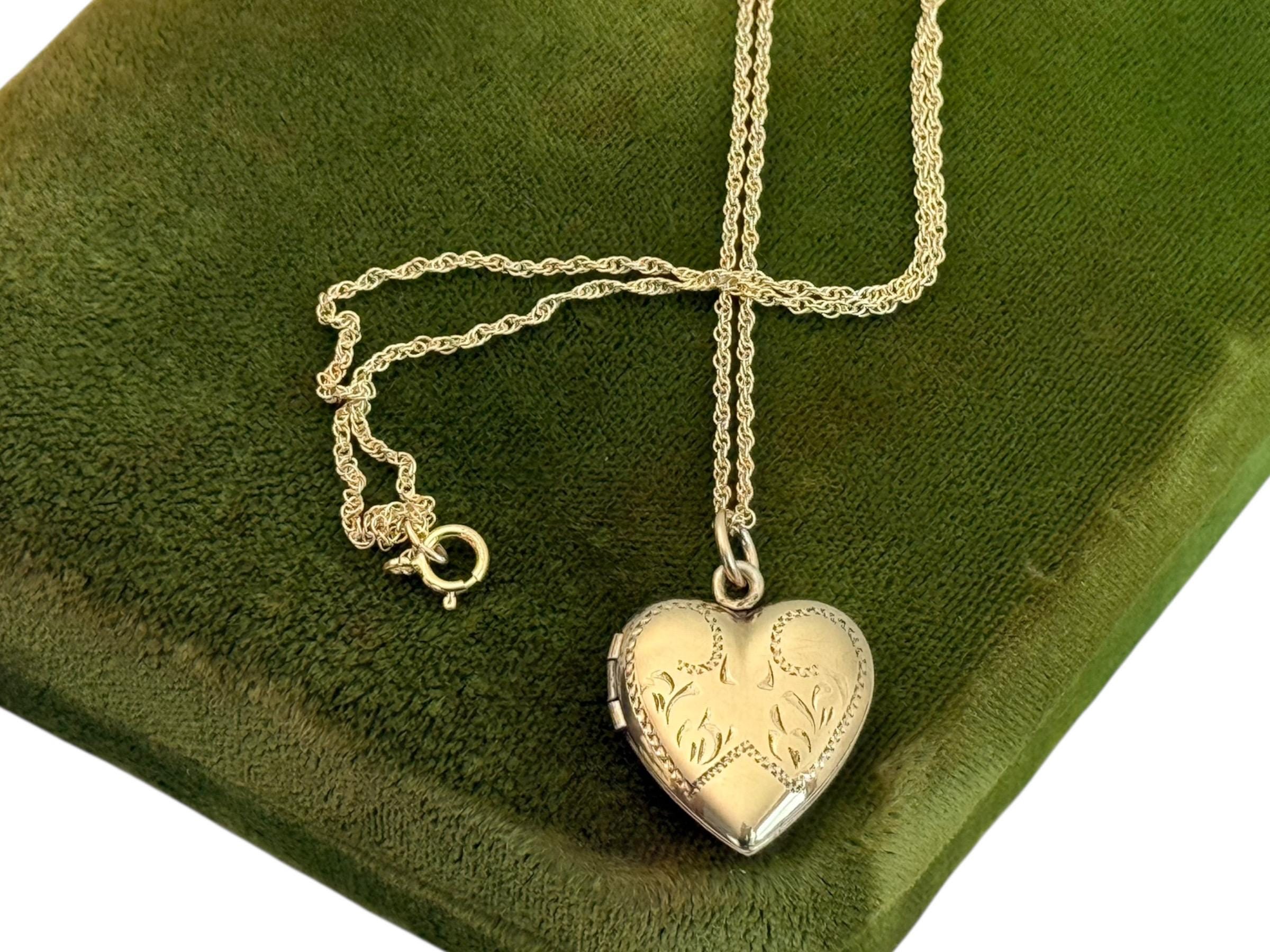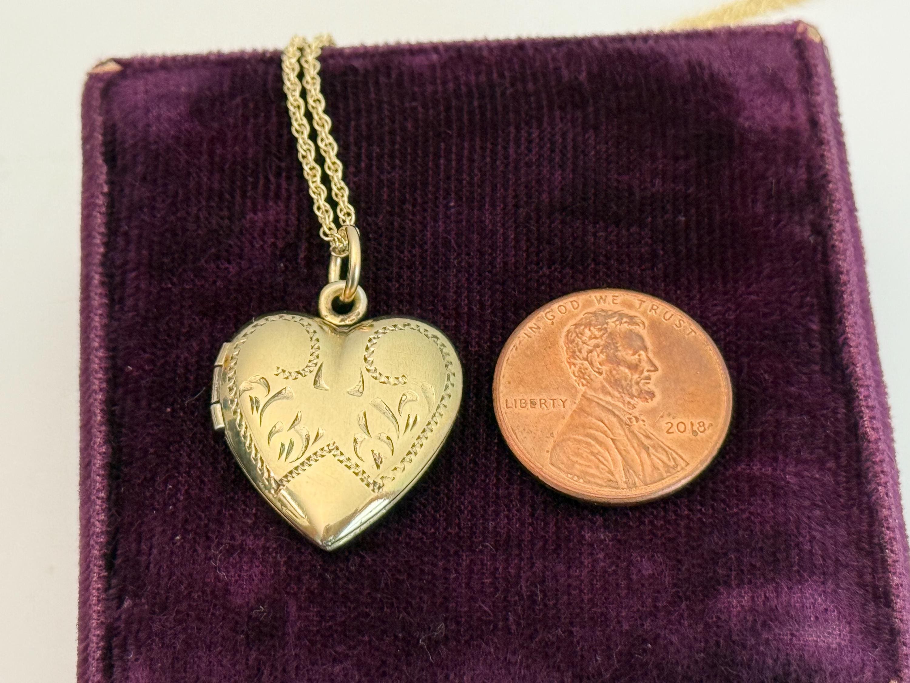 Vintage Gold Filled Heart Locket - Etched Lines Swirls, Necklace Pendant on 14K GF chain