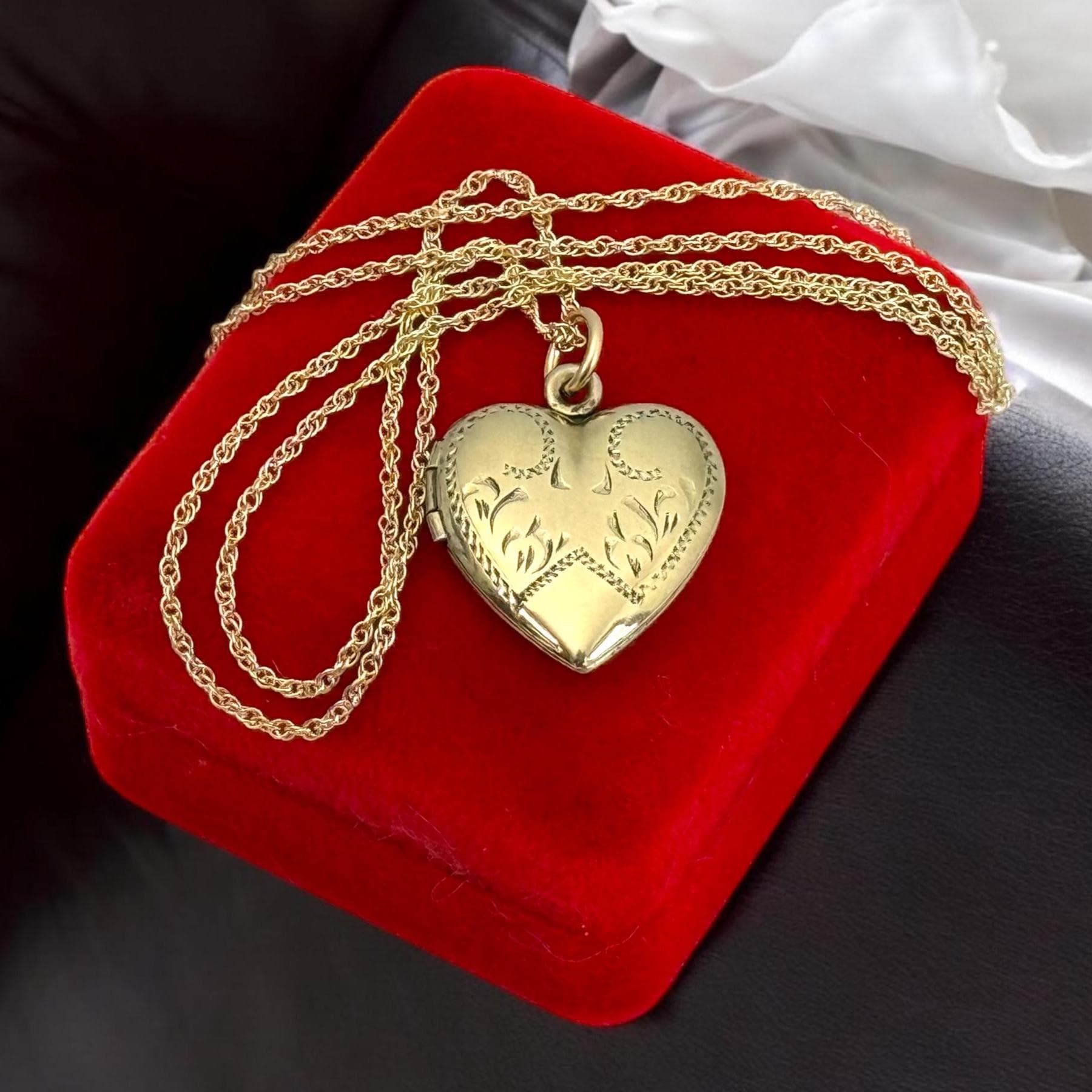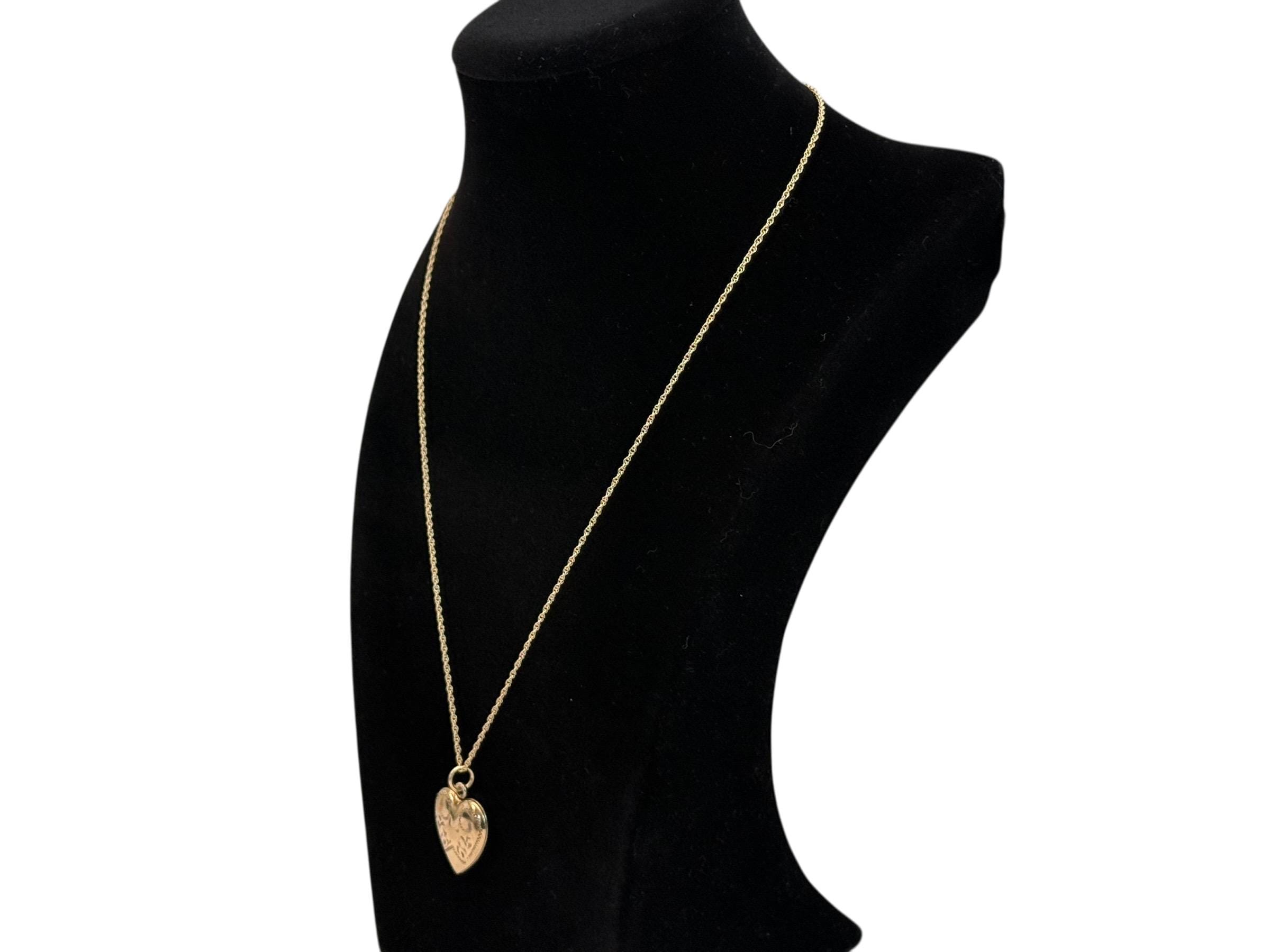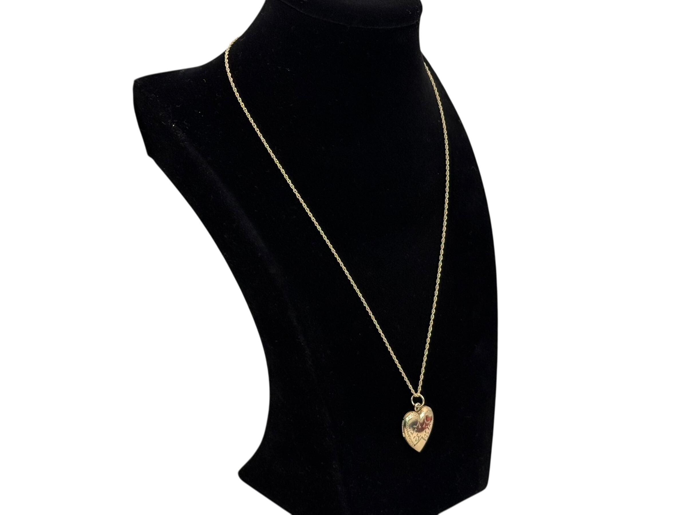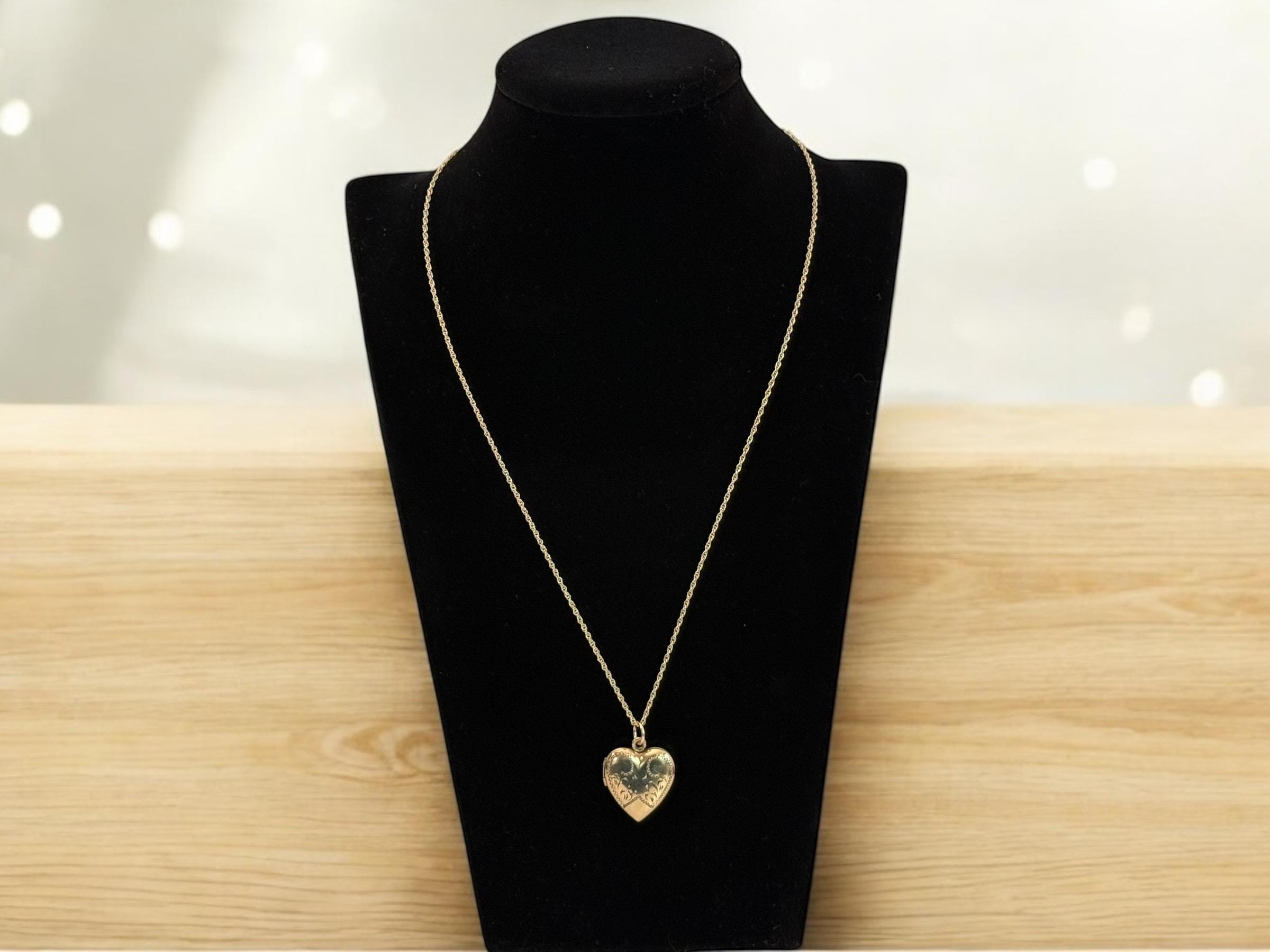 Vintage Gold Filled Heart Locket - Etched Lines Swirls, Necklace Pendant on 14K GF chain