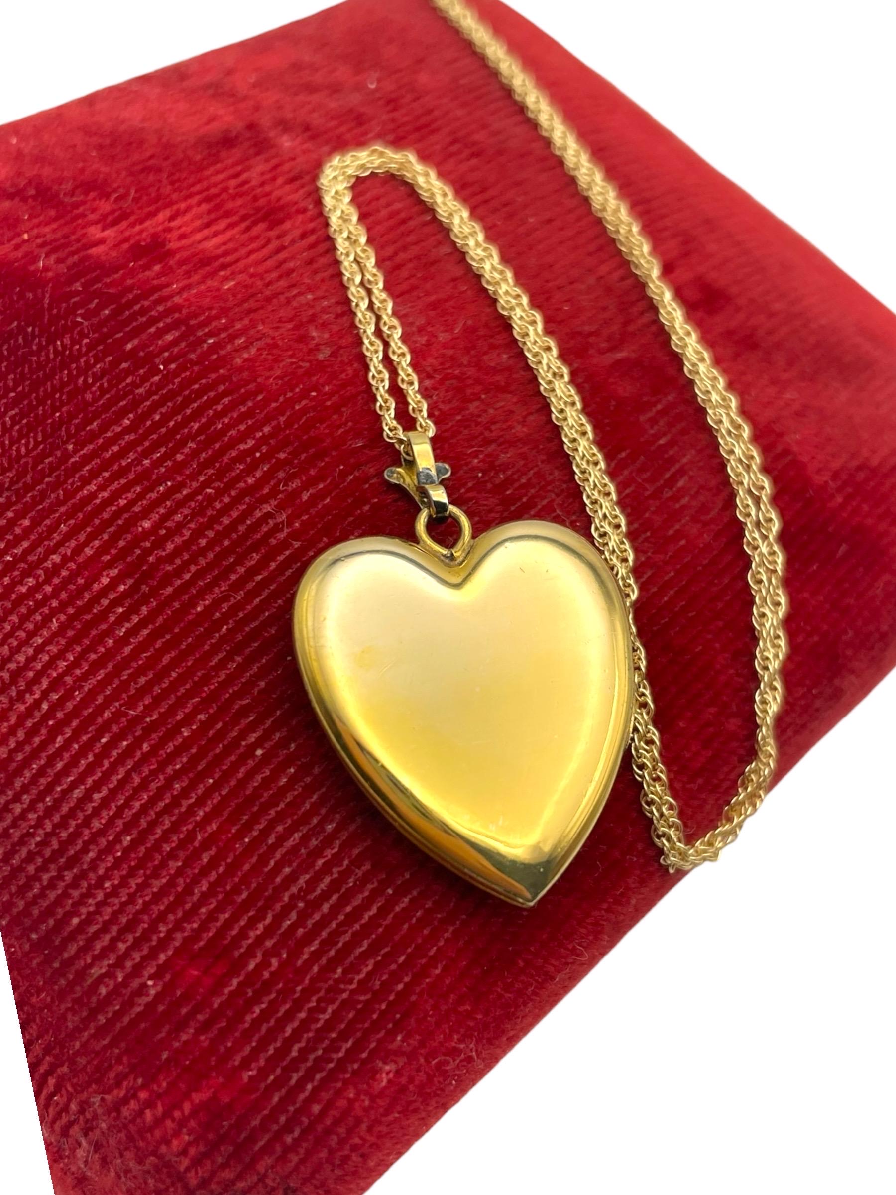 The locket hangs from a new, 20'' 14K gold filled rope chain. The spring ring clasp on the gold filled chain closes securely. Locket can be purchased with or without the chain.