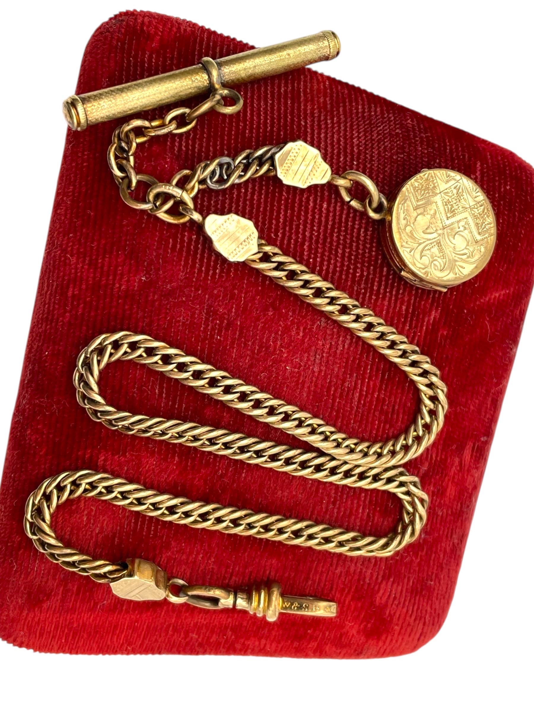 Antique Gold Filled Pocket Watch Chain: Victorian Locket Fob, W&S B Clip