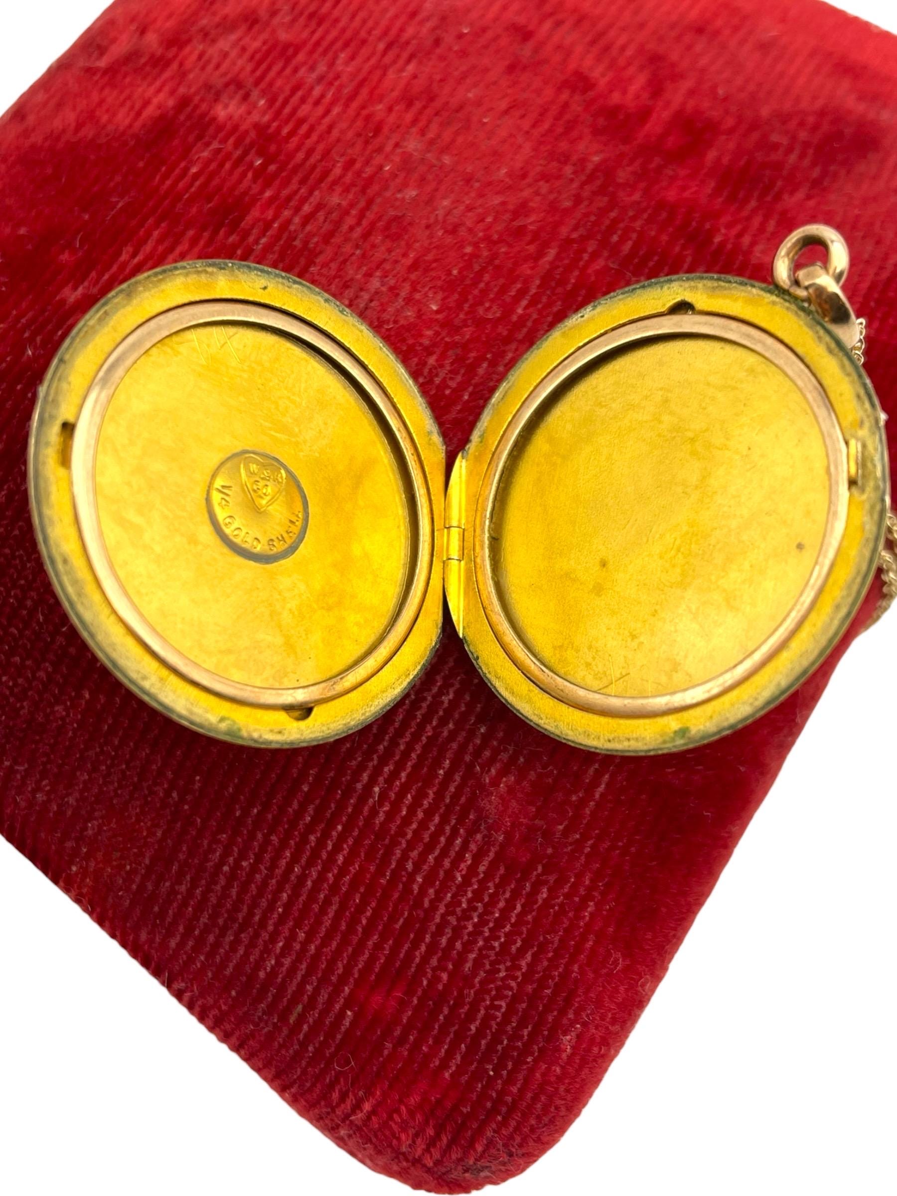 The vintage locket hangs on a new rope chain, 20” long that is marked as 14K gold filled. This locket can be purchased with or without the chain.