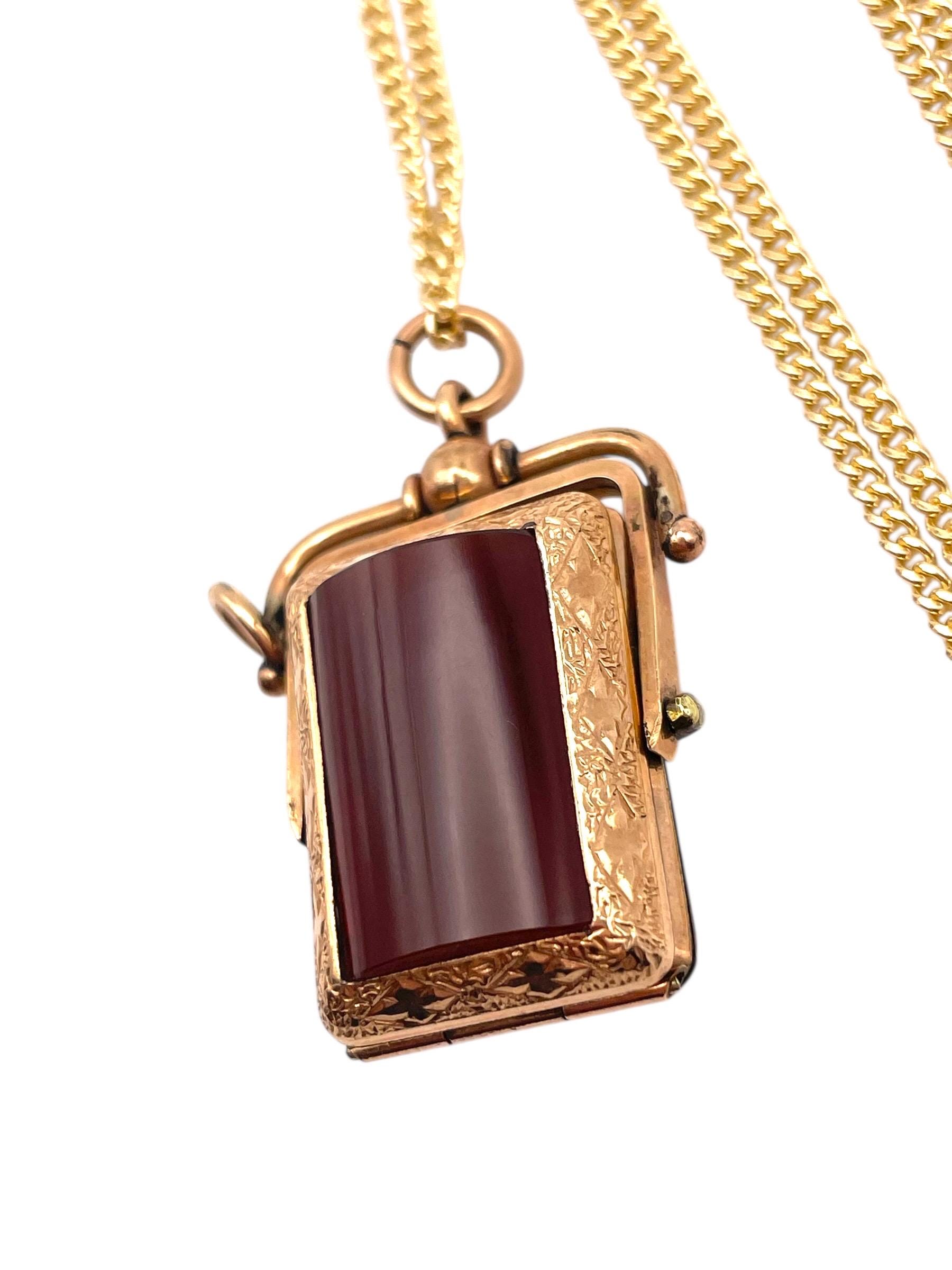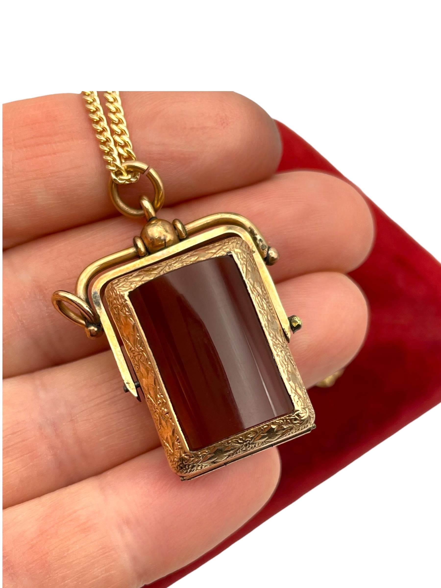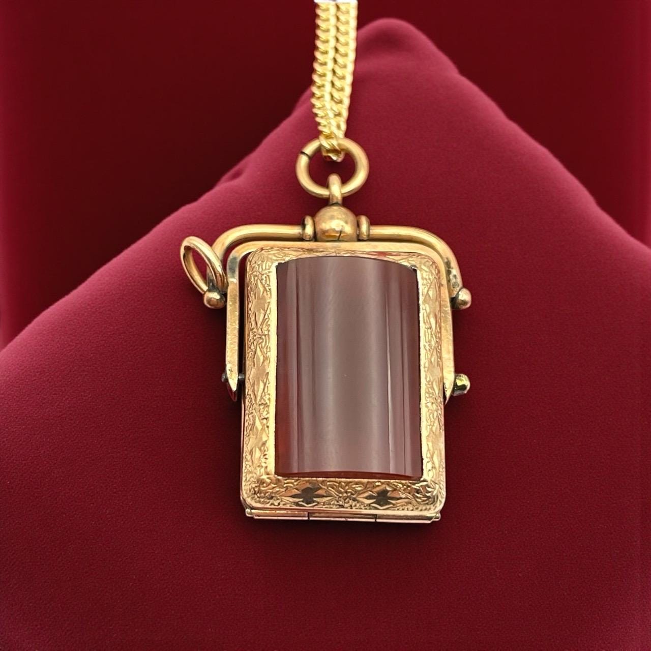 Victorian Fob Locket – 10K Gold Filled Carnelian & Black Stone Pendant