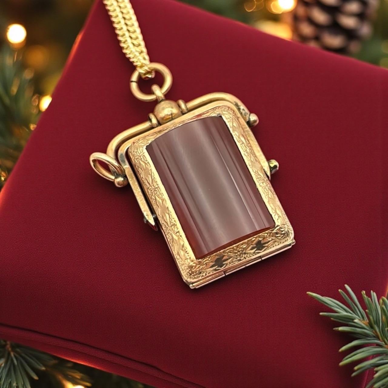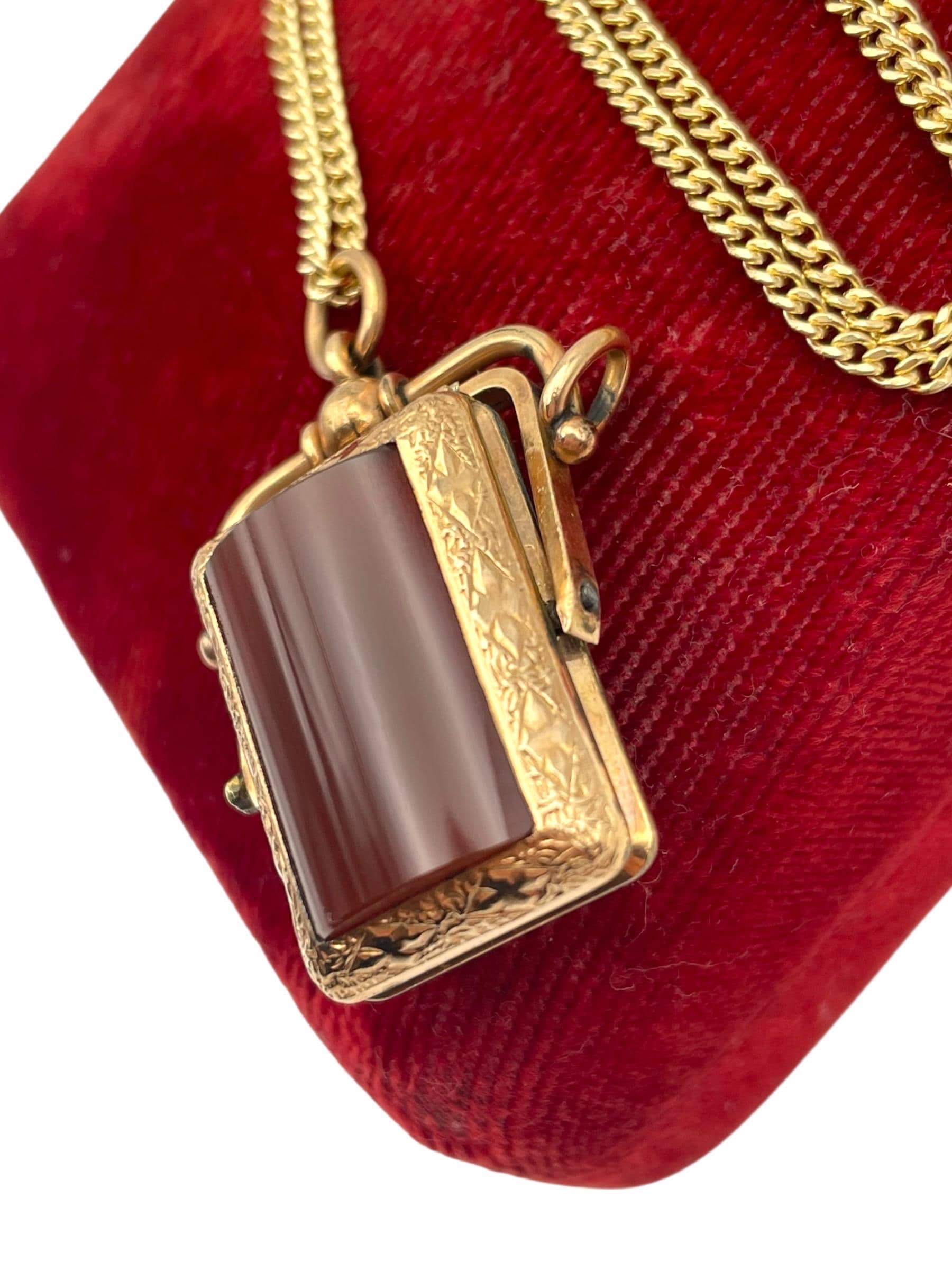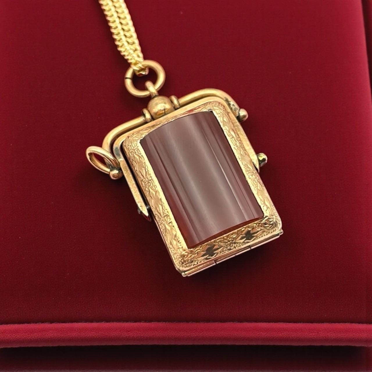 Victorian Fob Locket – 10K Gold Filled Carnelian & Black Stone Pendant