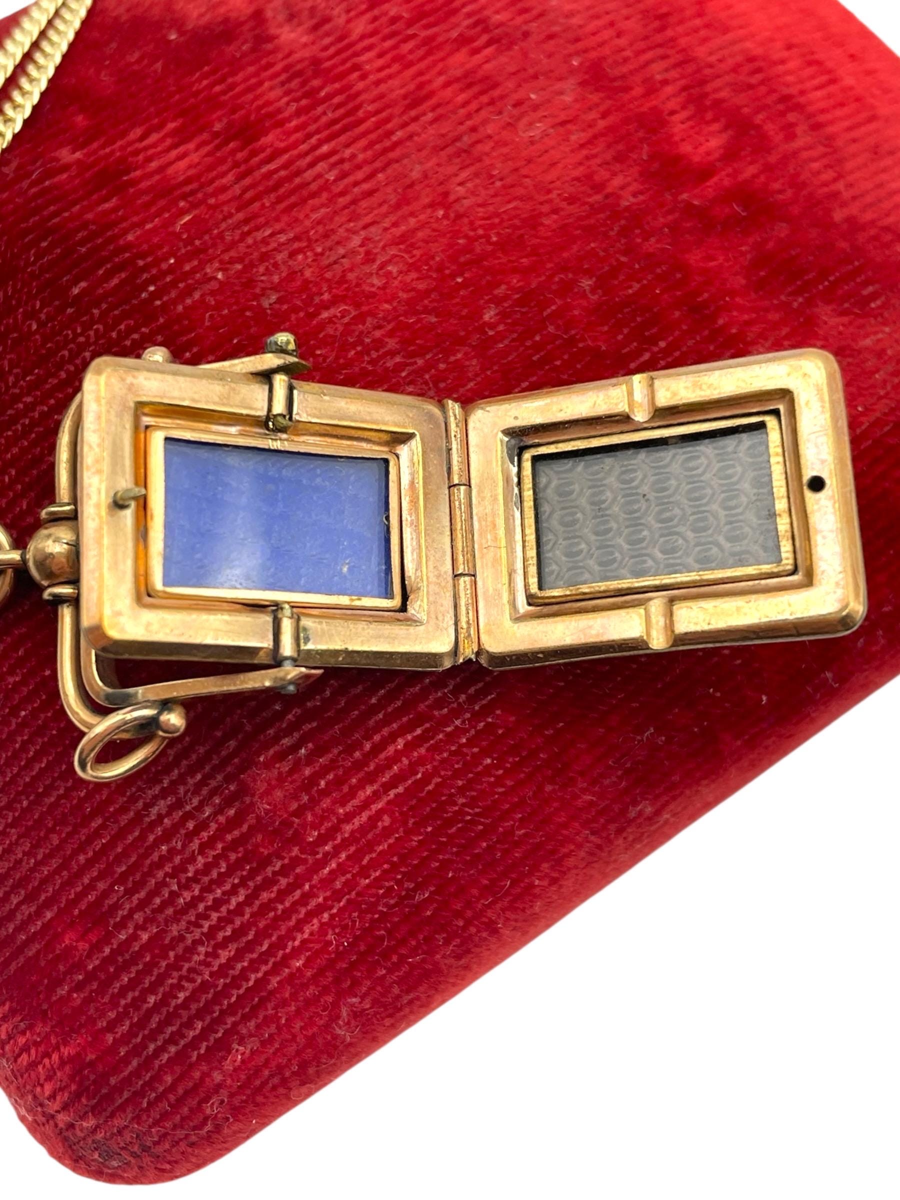 This locket fob opens up to have room for two rectangle shaped photos. The original frames, paper backings and glass photo covers are intact.