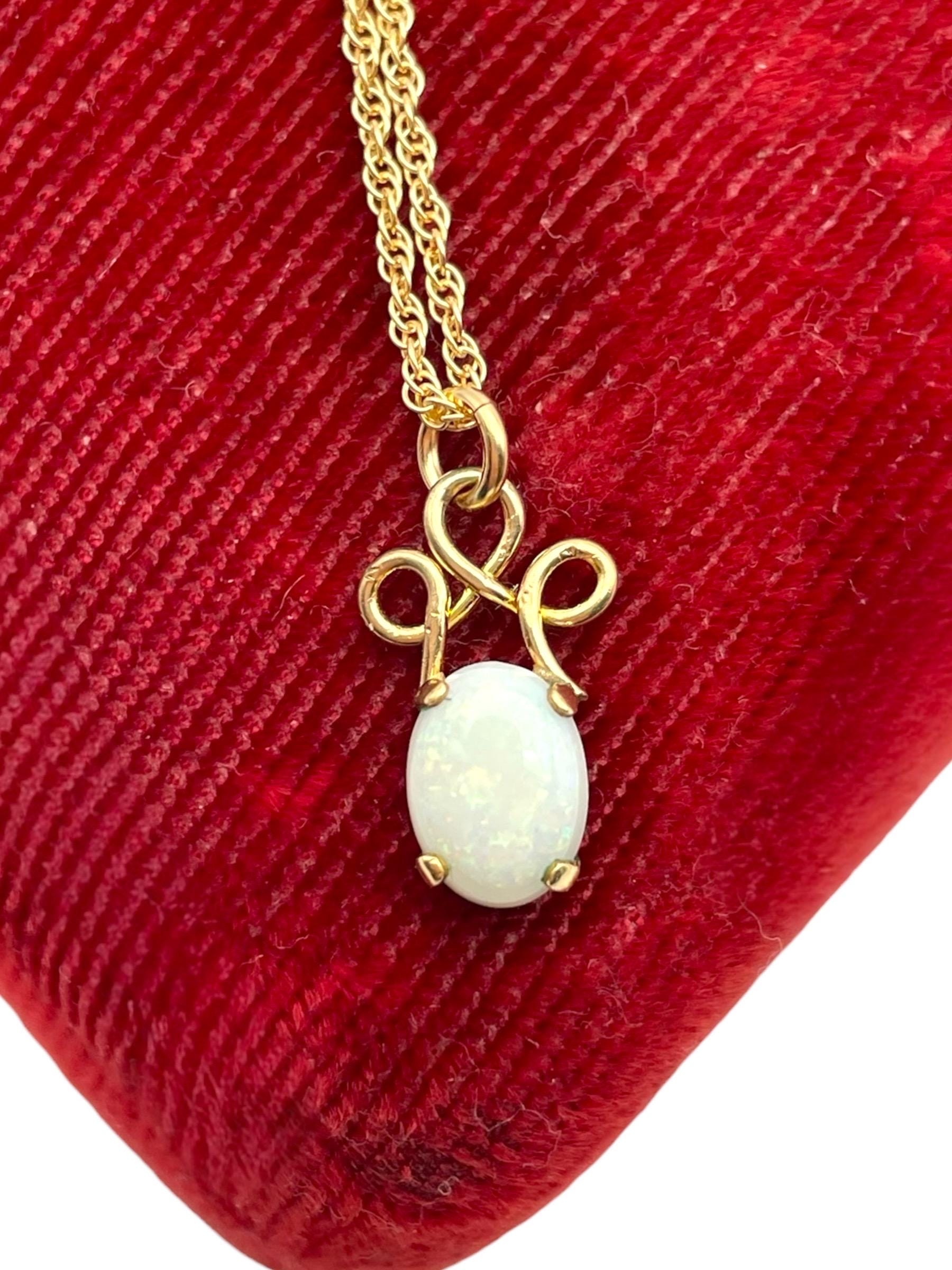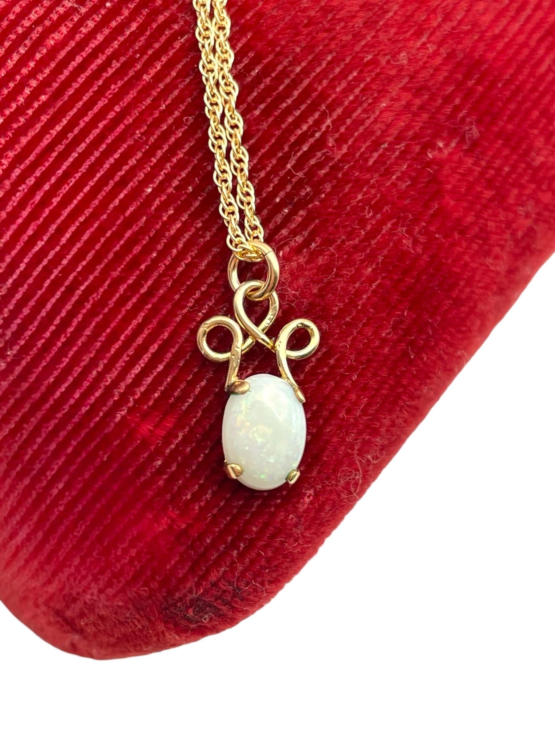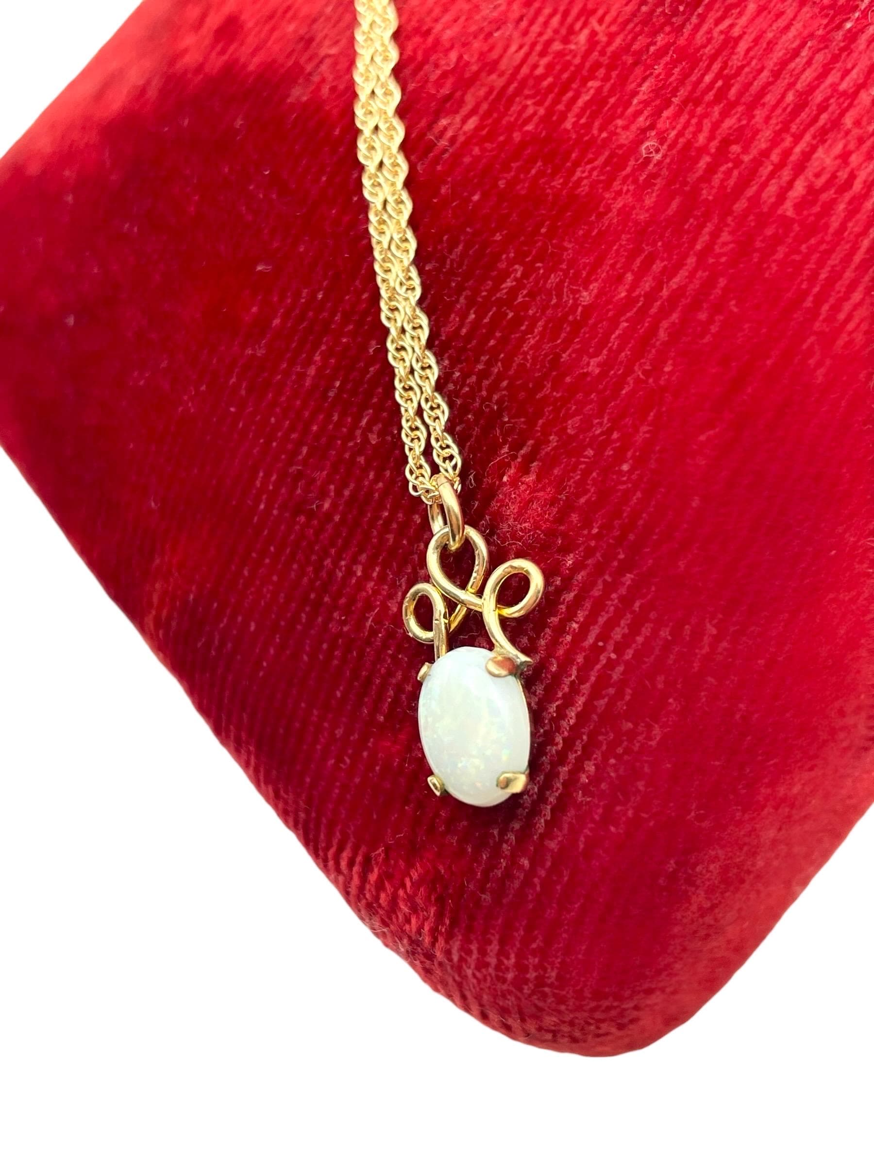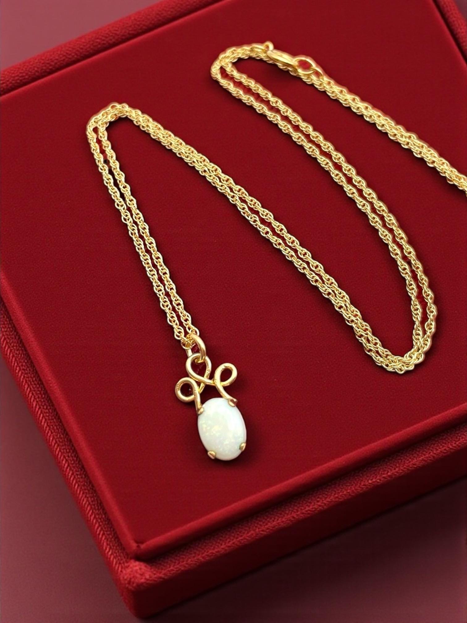 A sweet 12K gold filled opal gemstone pendant. This adorable necklace comes on a new 18'' long 14K GF rope chain.