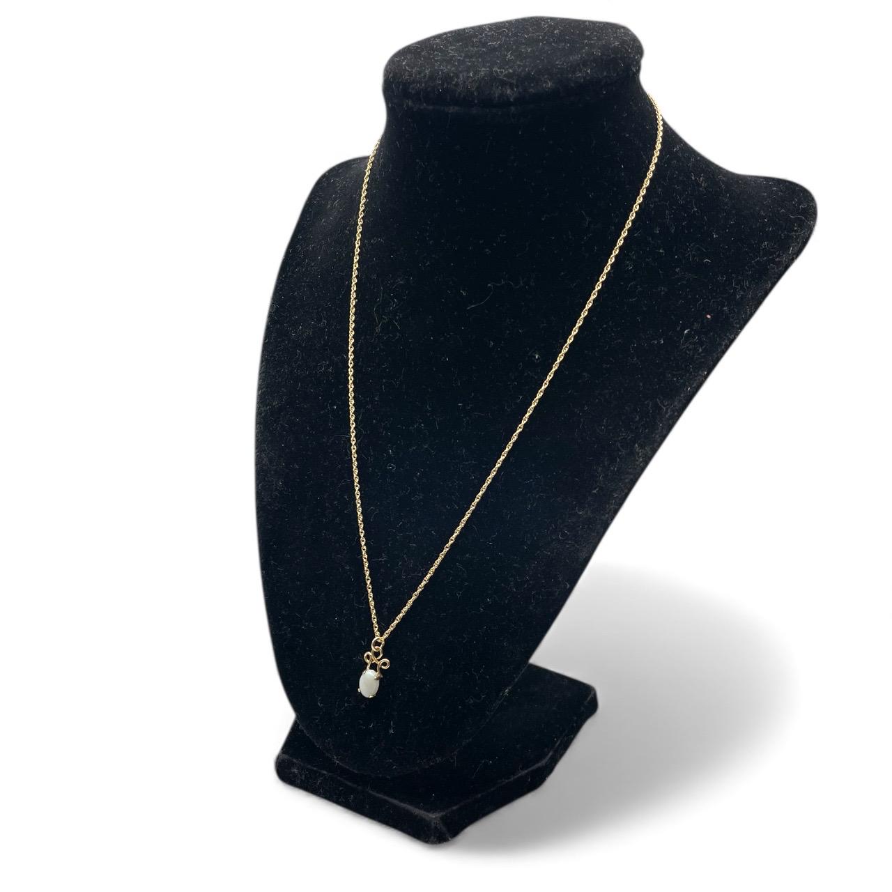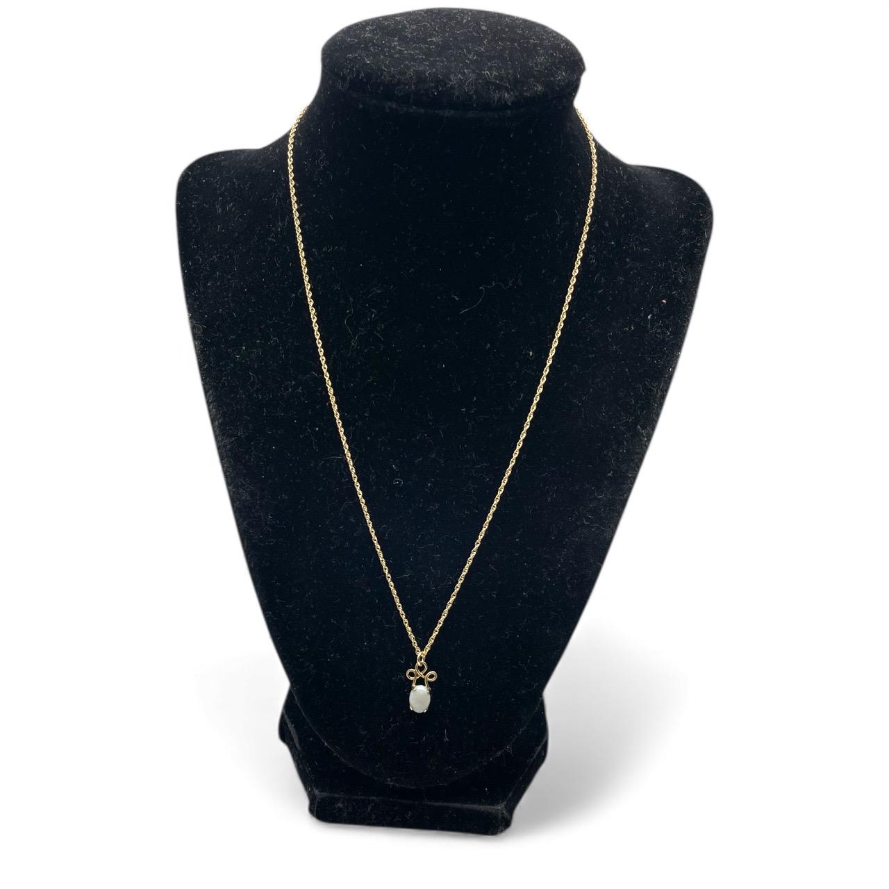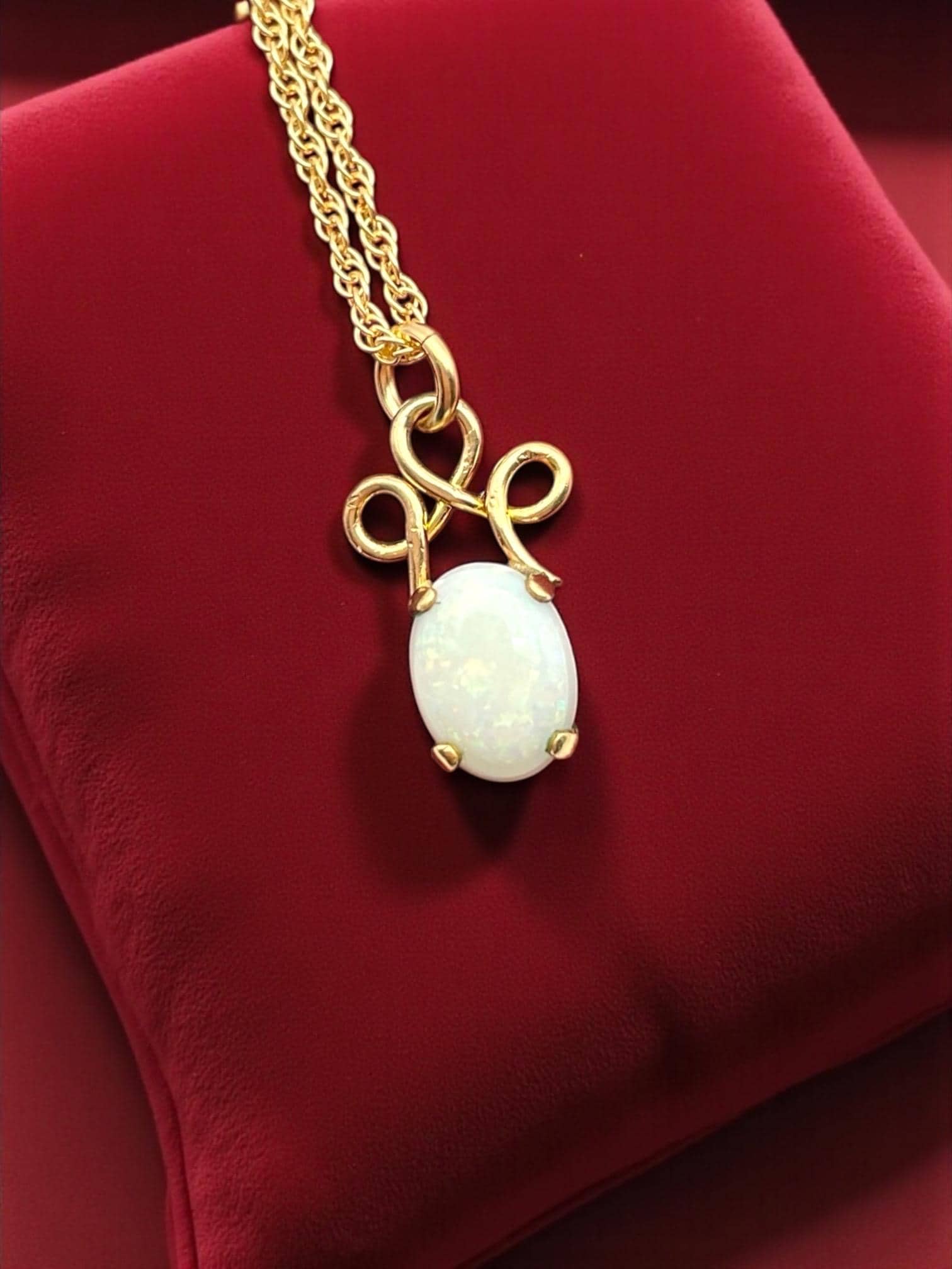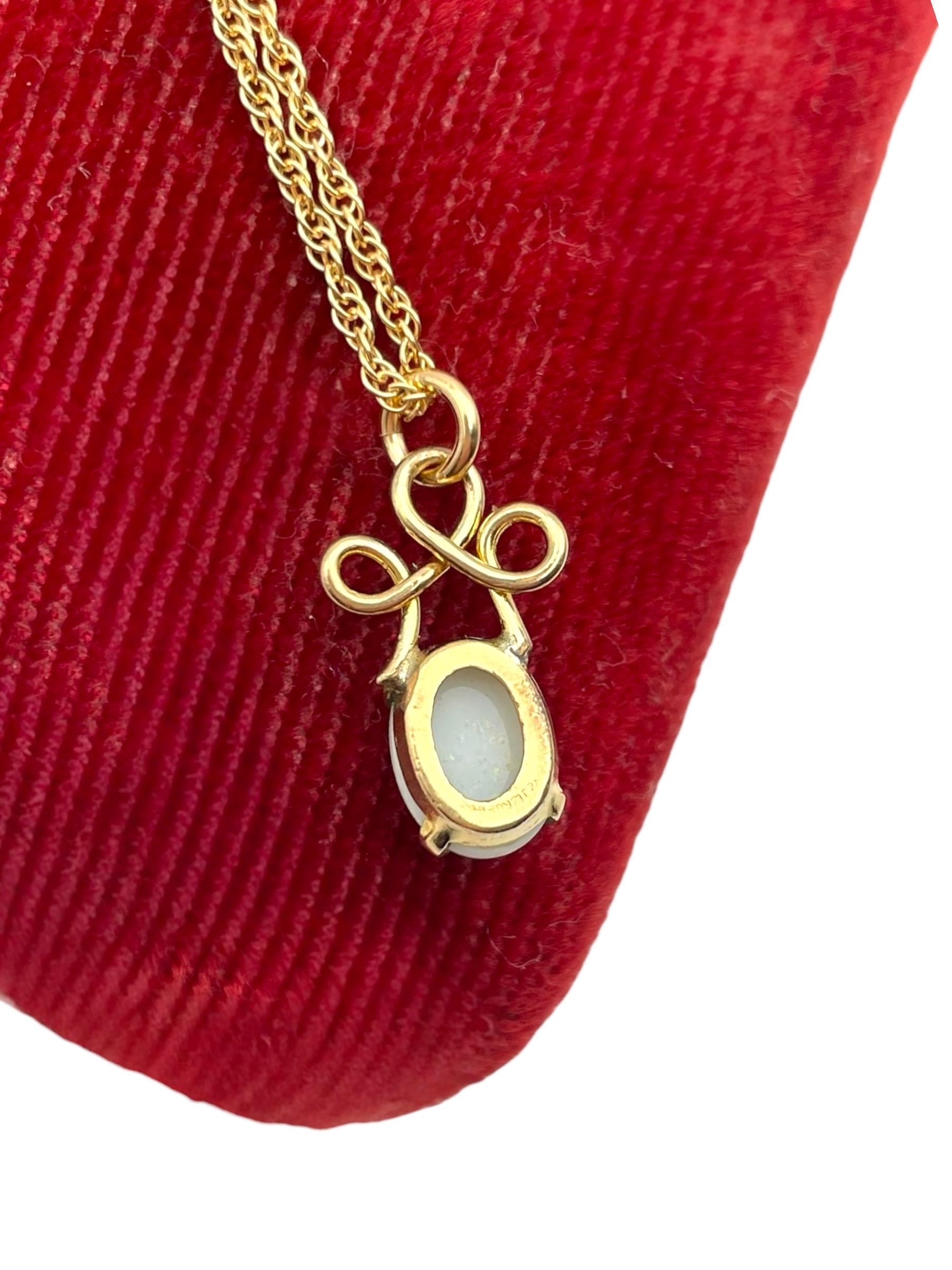 A sweet 12K gold filled opal gemstone pendant. This adorable necklace comes on a new 18'' long 14K GF rope chain.