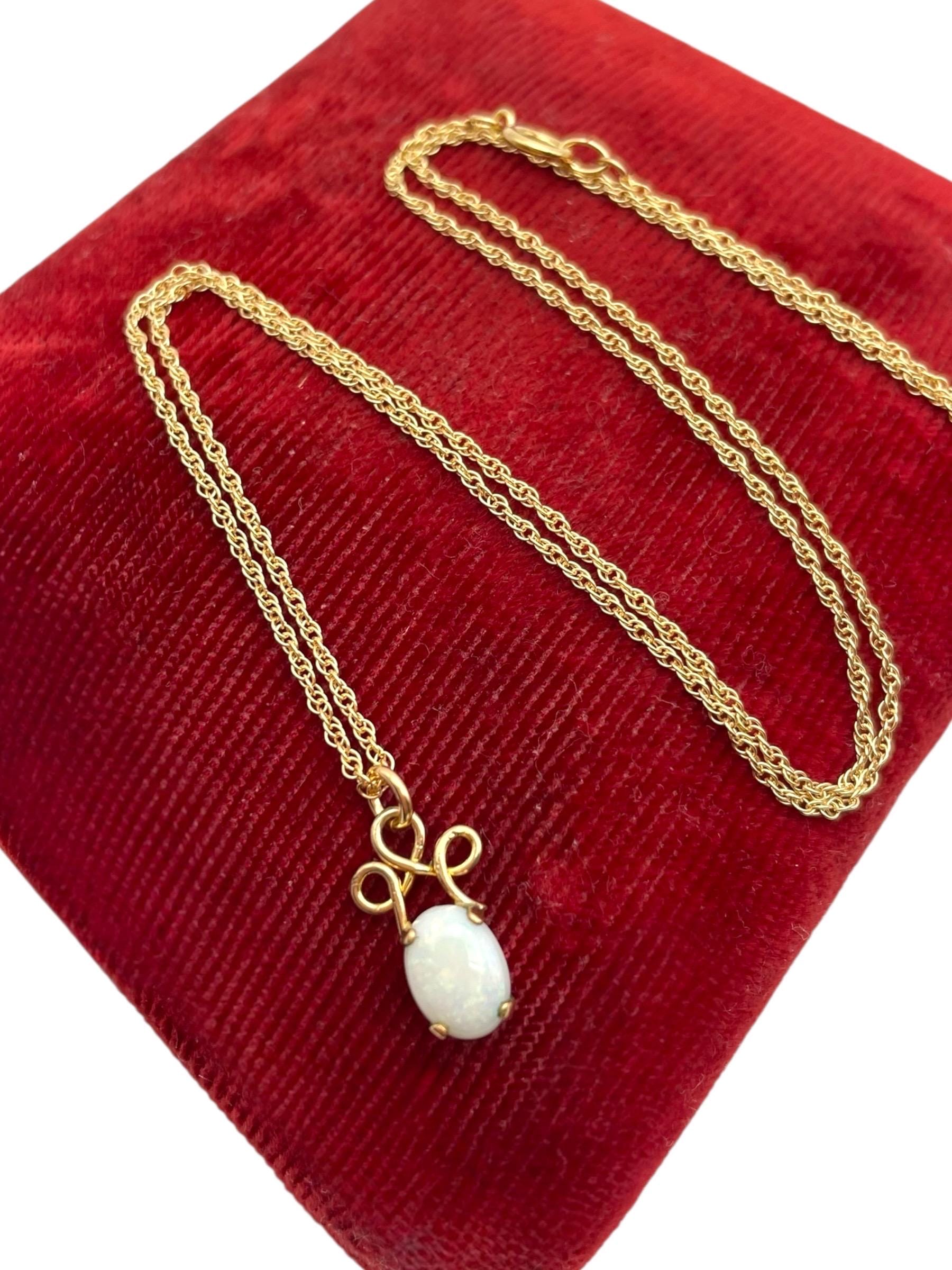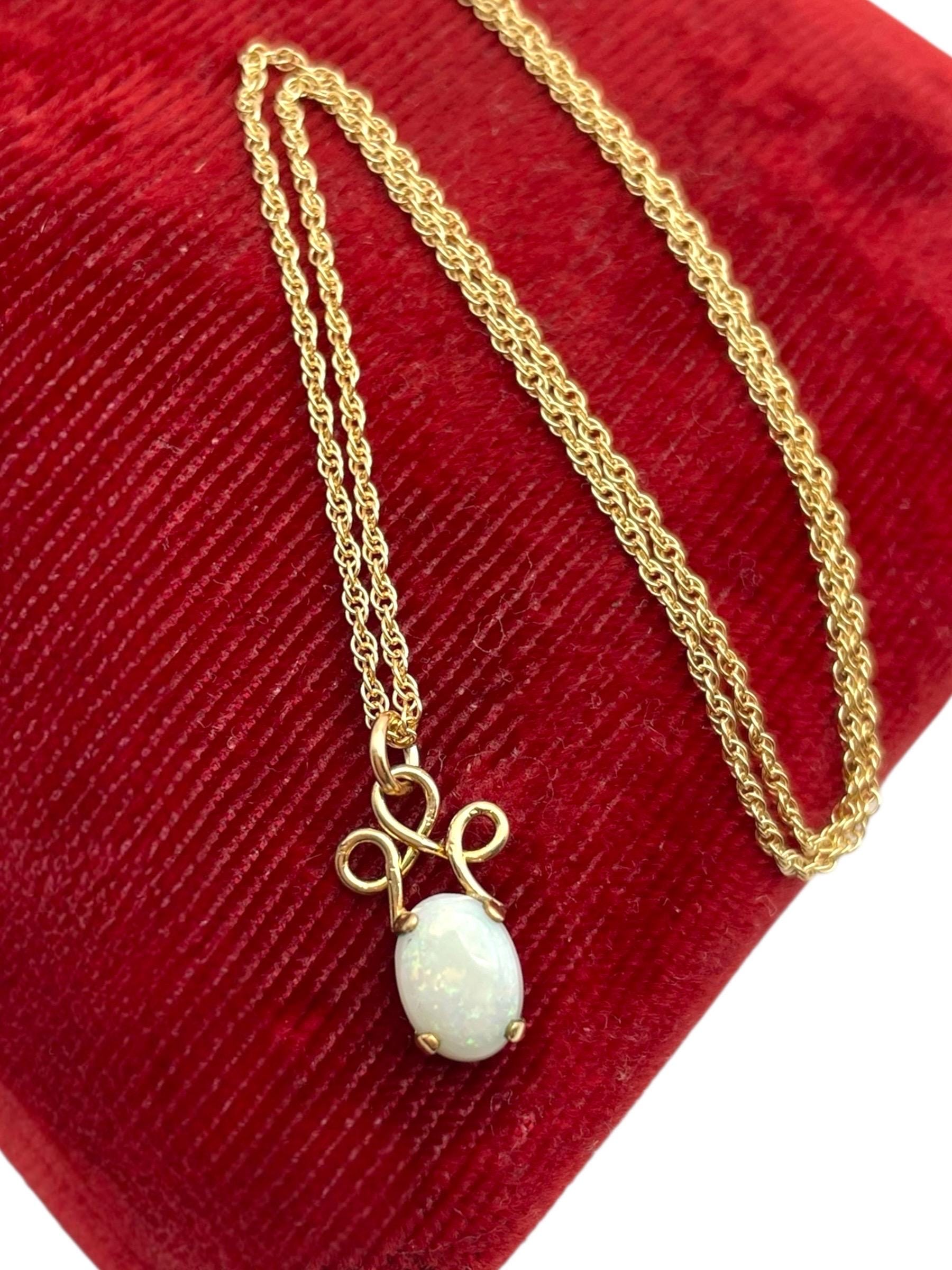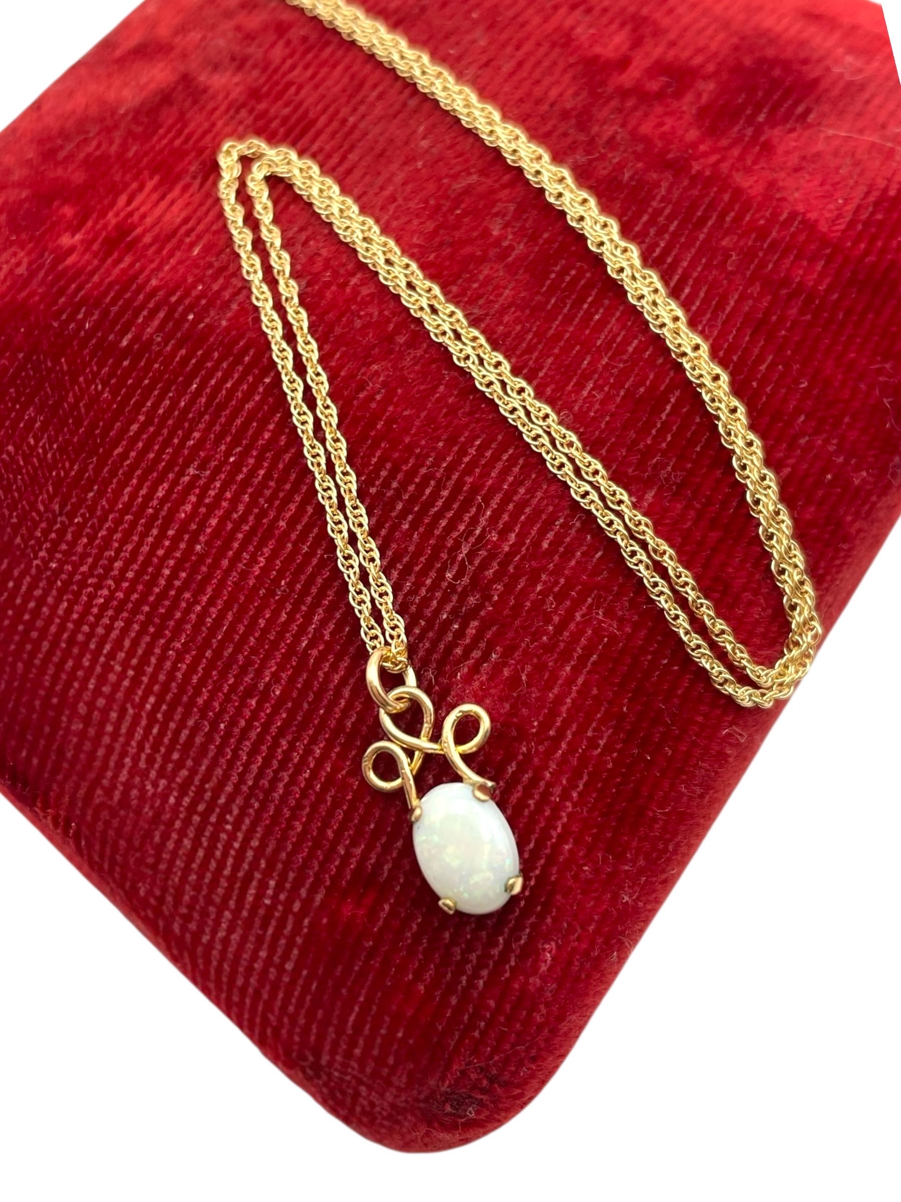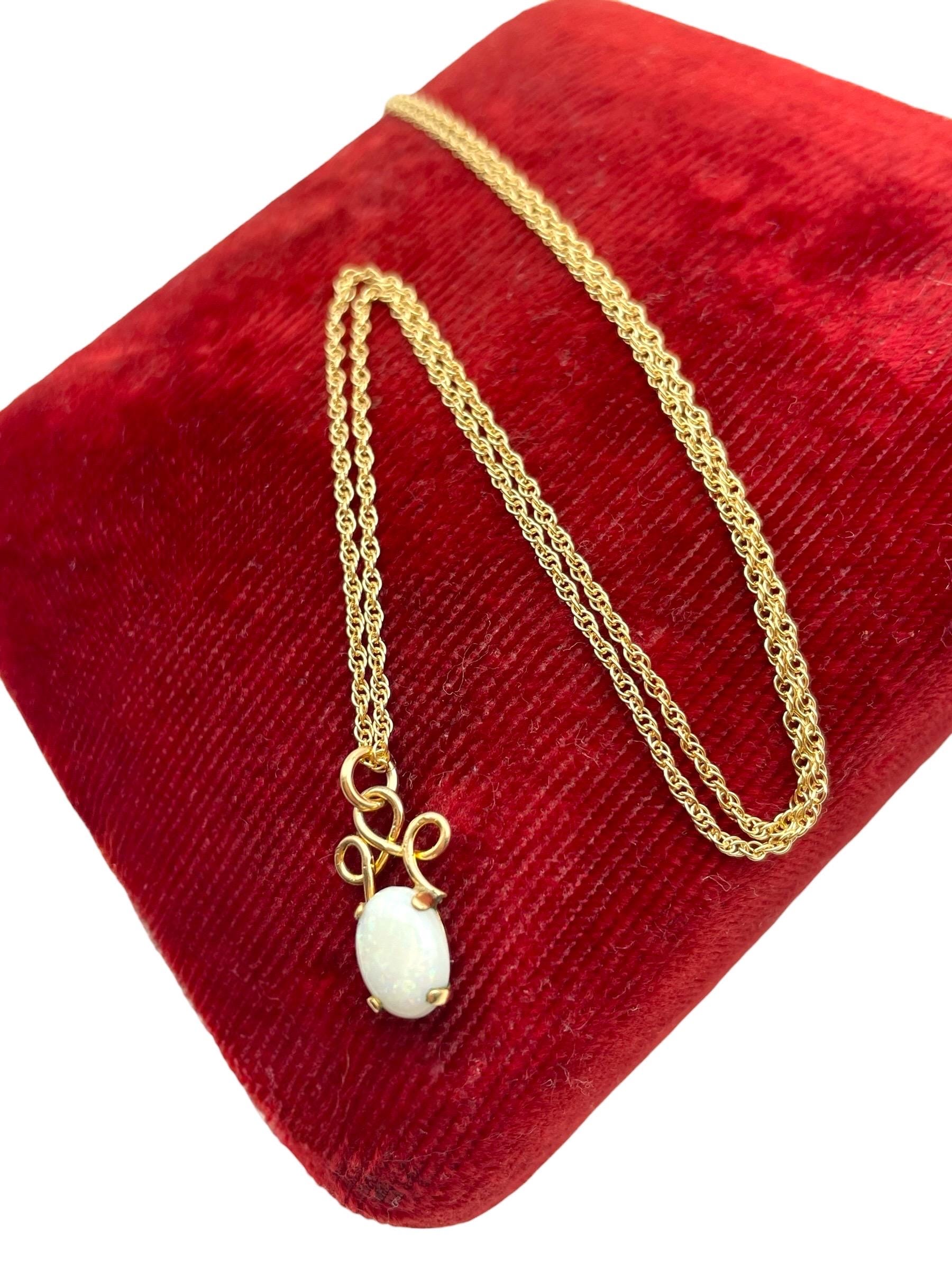 Vintage 12K Gold Filled Opal Pendant Necklace: Simple Minimal Layering Jewelry with 14K GF Chain