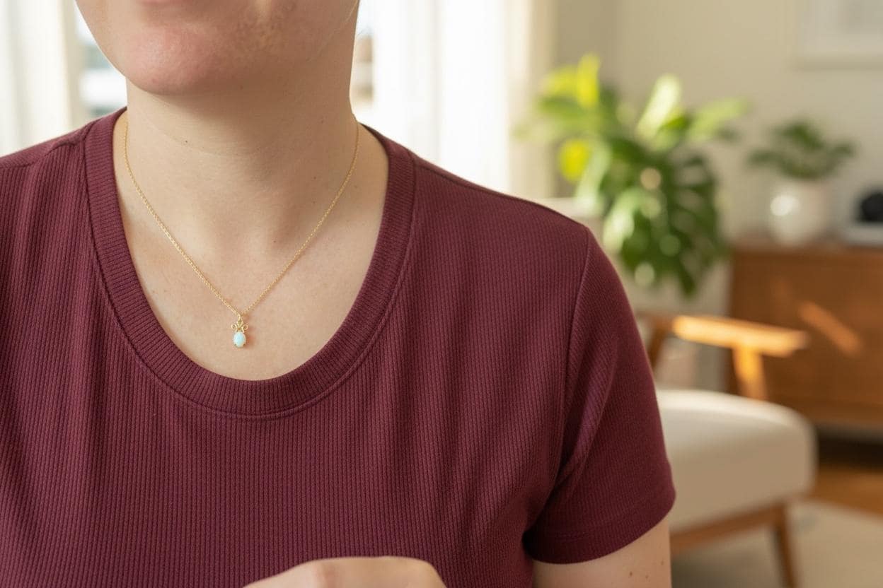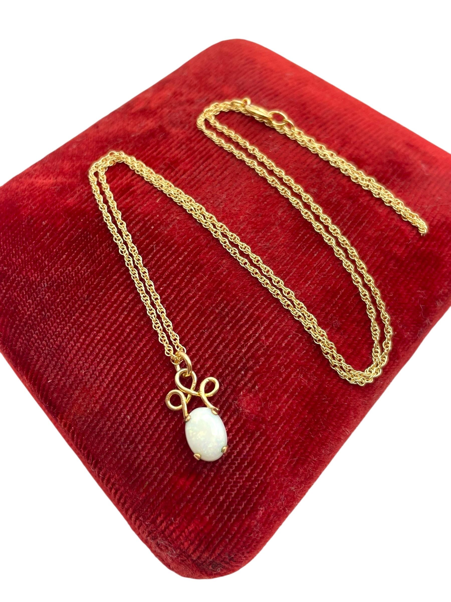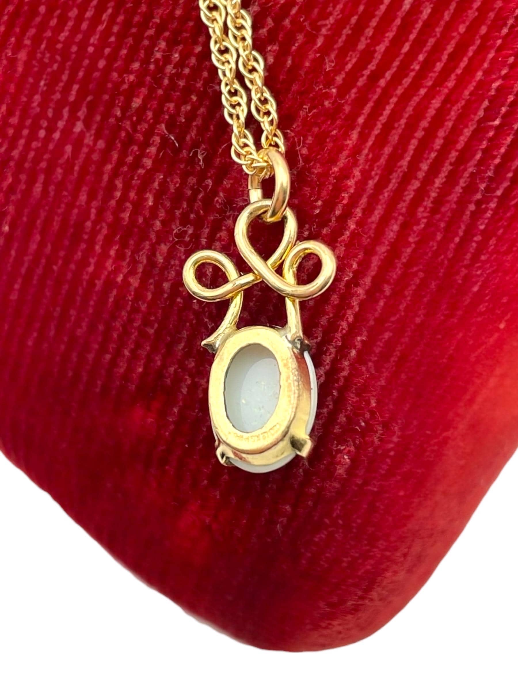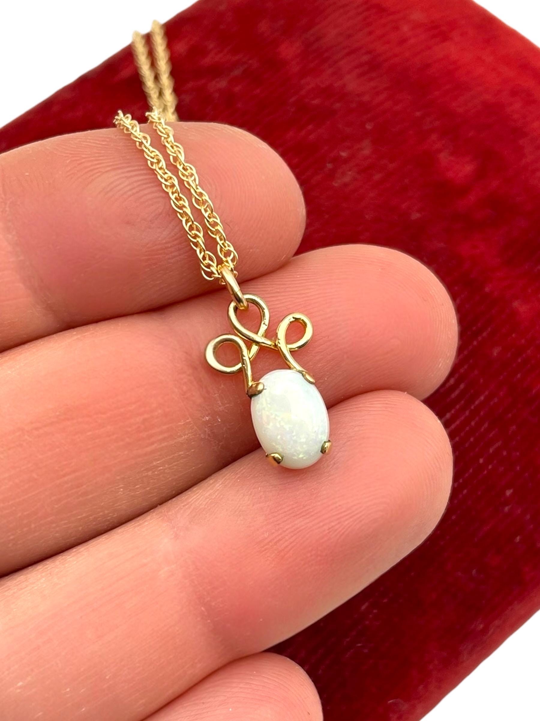 Vintage 12K Gold Filled Opal Pendant Necklace: Simple Minimal Layering Jewelry with 14K GF Chain