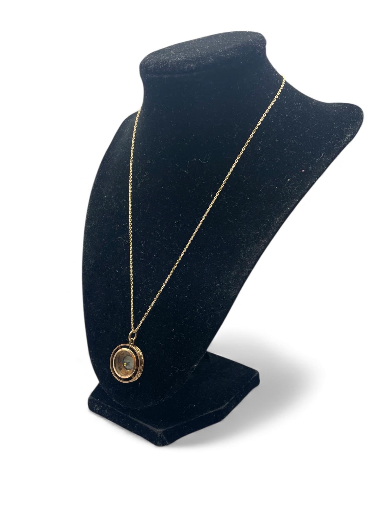 This charm pendant is circa early 1900s, we have attached it to a new 14K Gold filled rope chain that is 18'' in length. The pendant can be purchased with or without the chain.