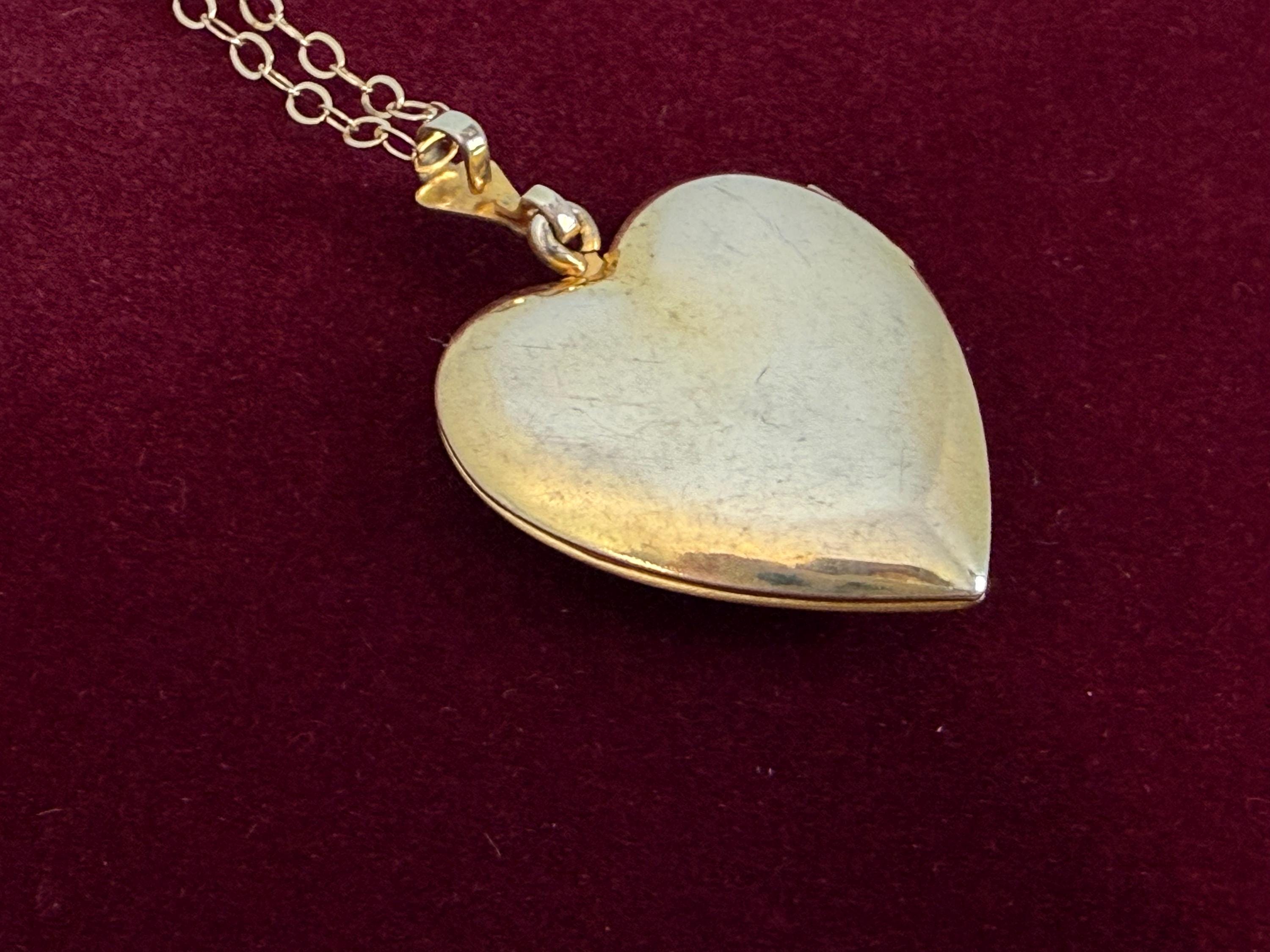 Vintage 10K PS Co Gold Filled Etched Heart Locket w/ GF Chain, 2 Photo Necklace