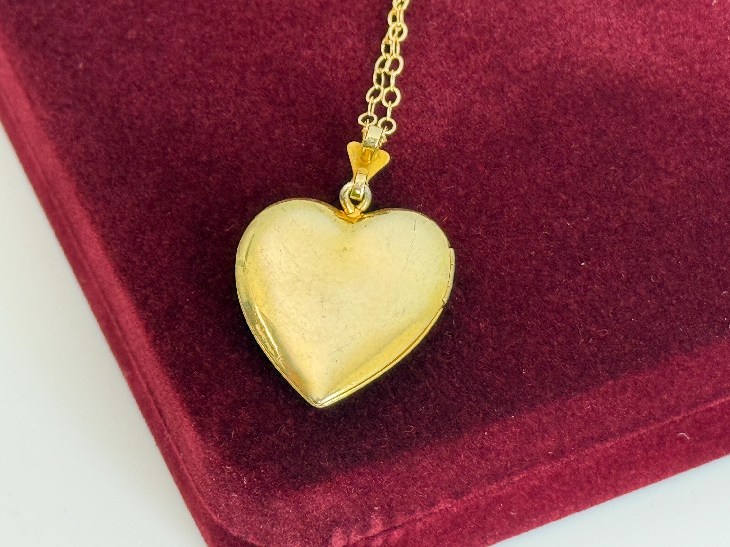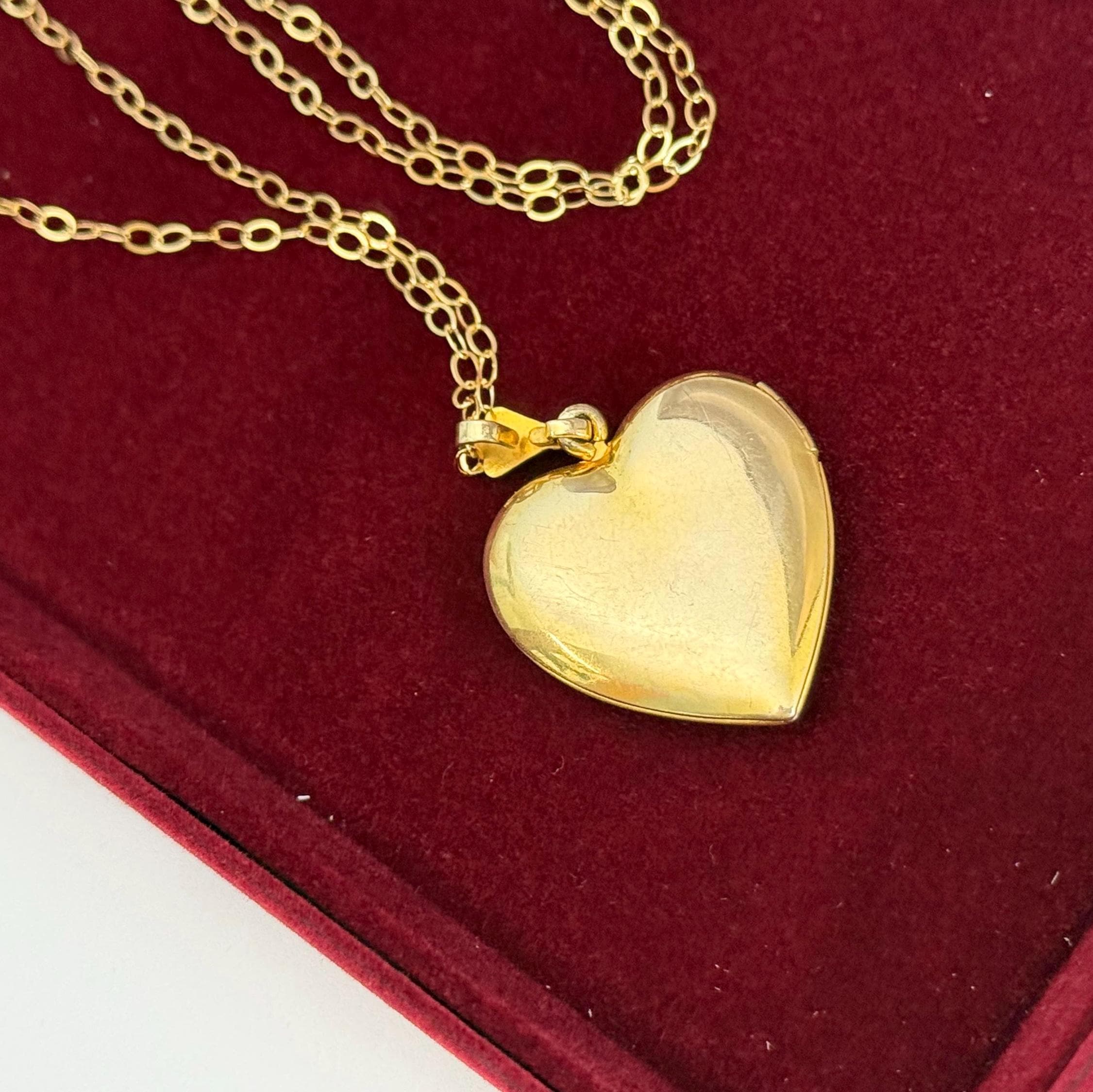 The vintage locket hangs from a new 14K gold filled chain that secures with a spring clasp.