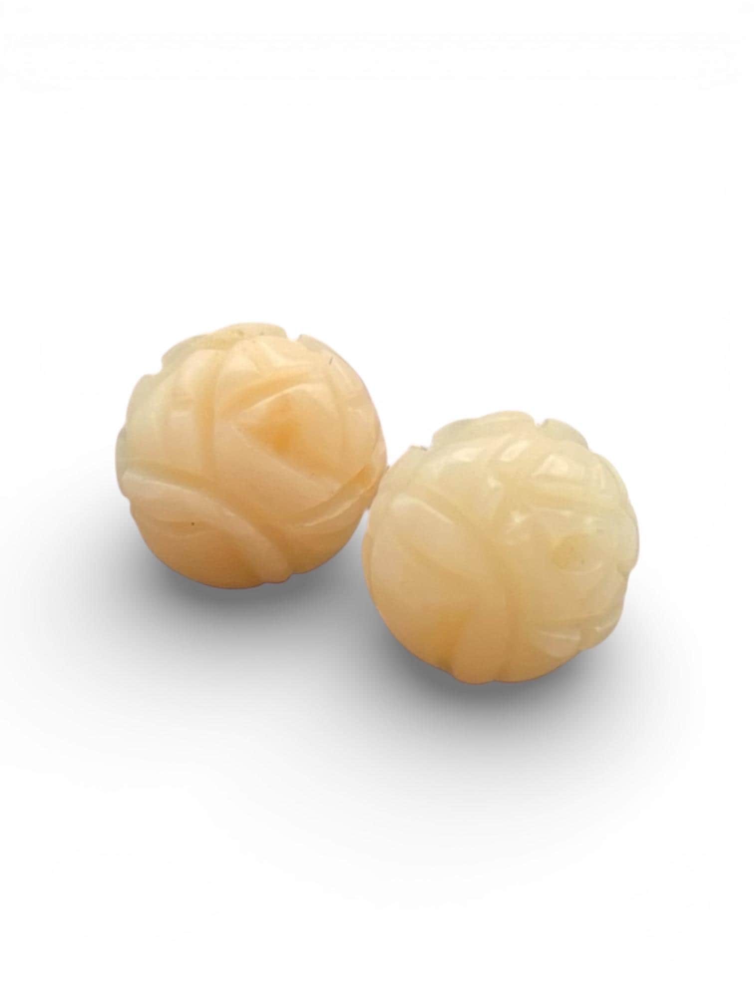 Vintage 14K Gold Carved Coral Earrings - Carved Flowers Rose Angel Skin Pink with Post Backs 8mm