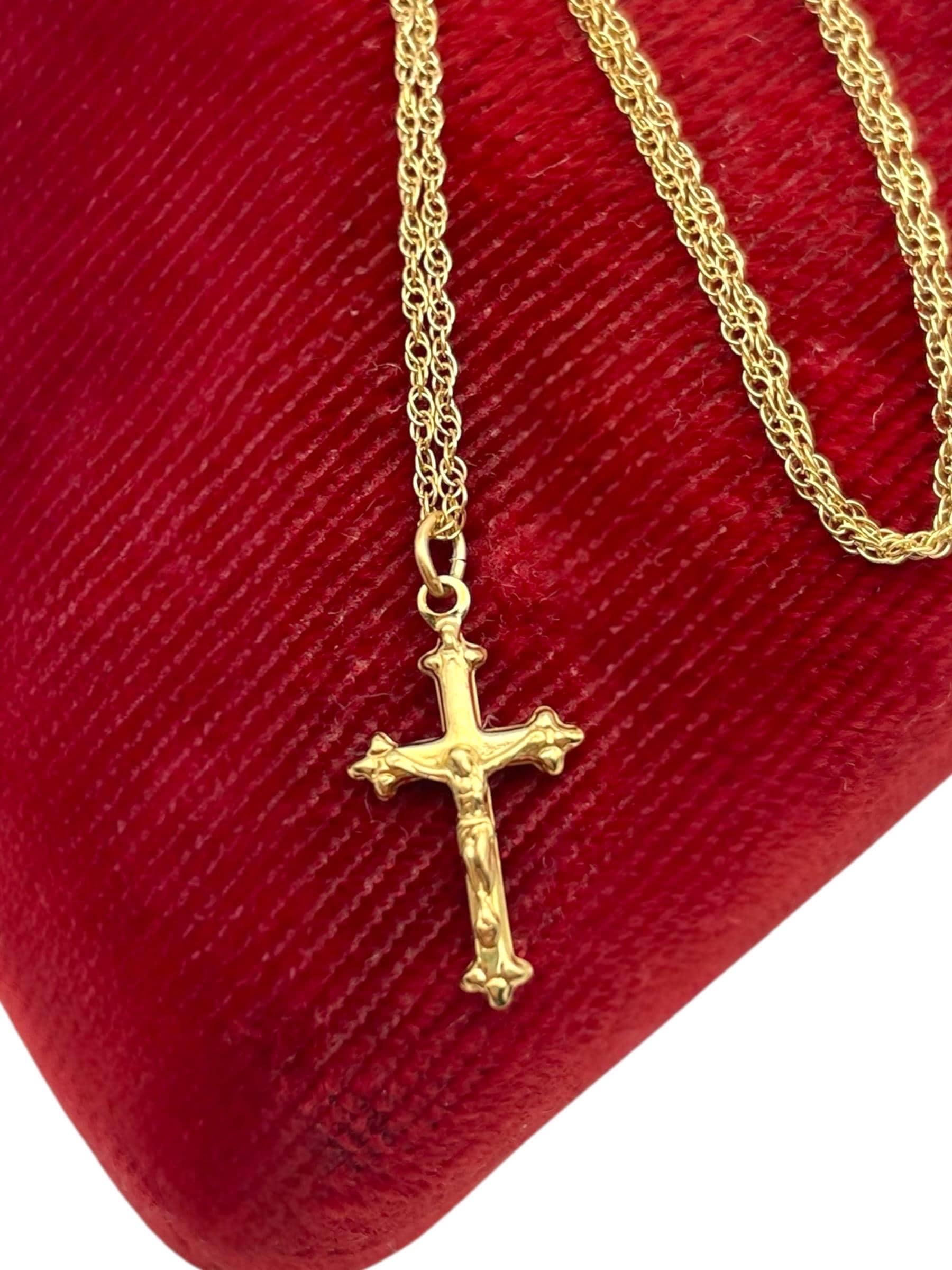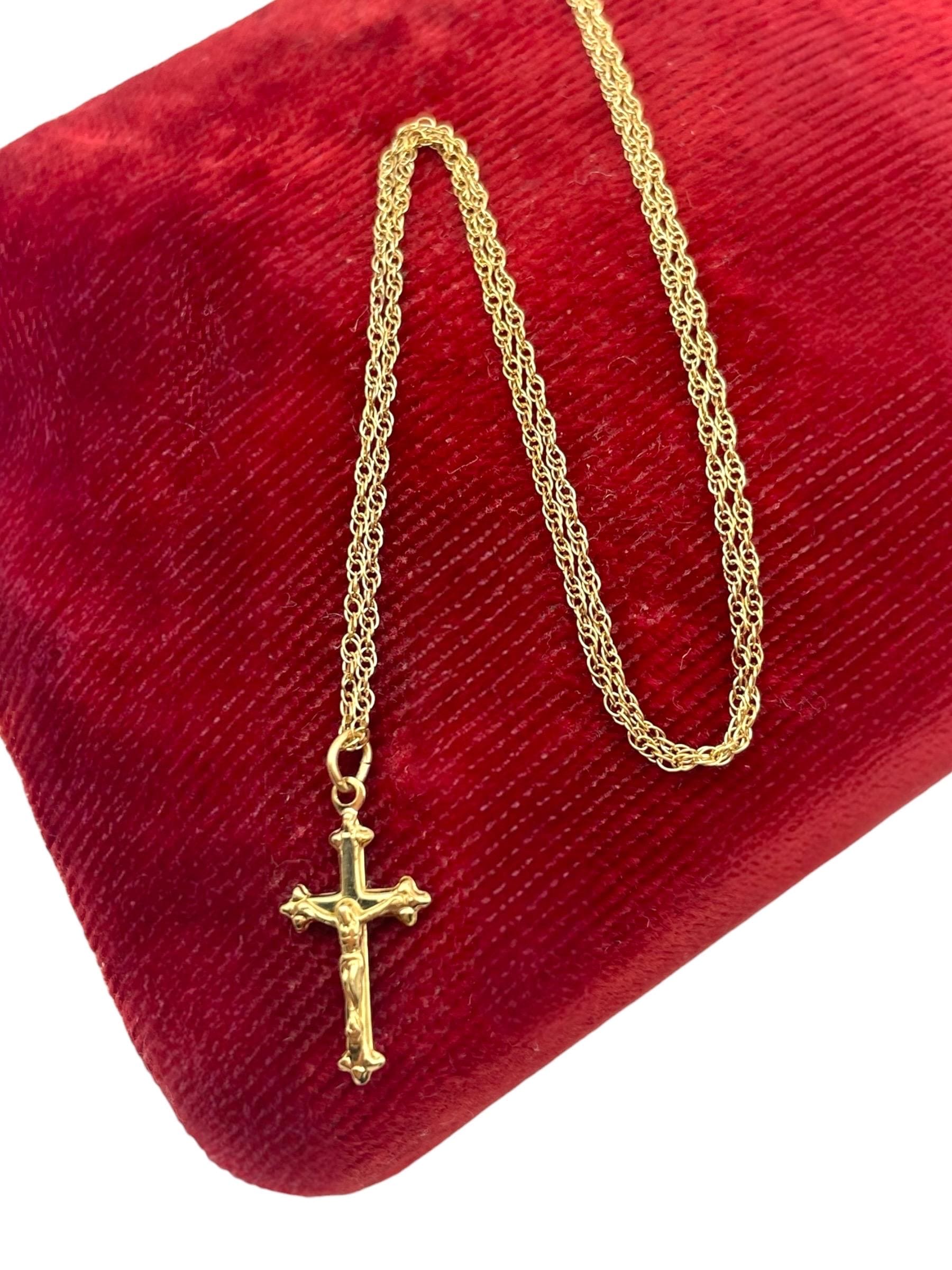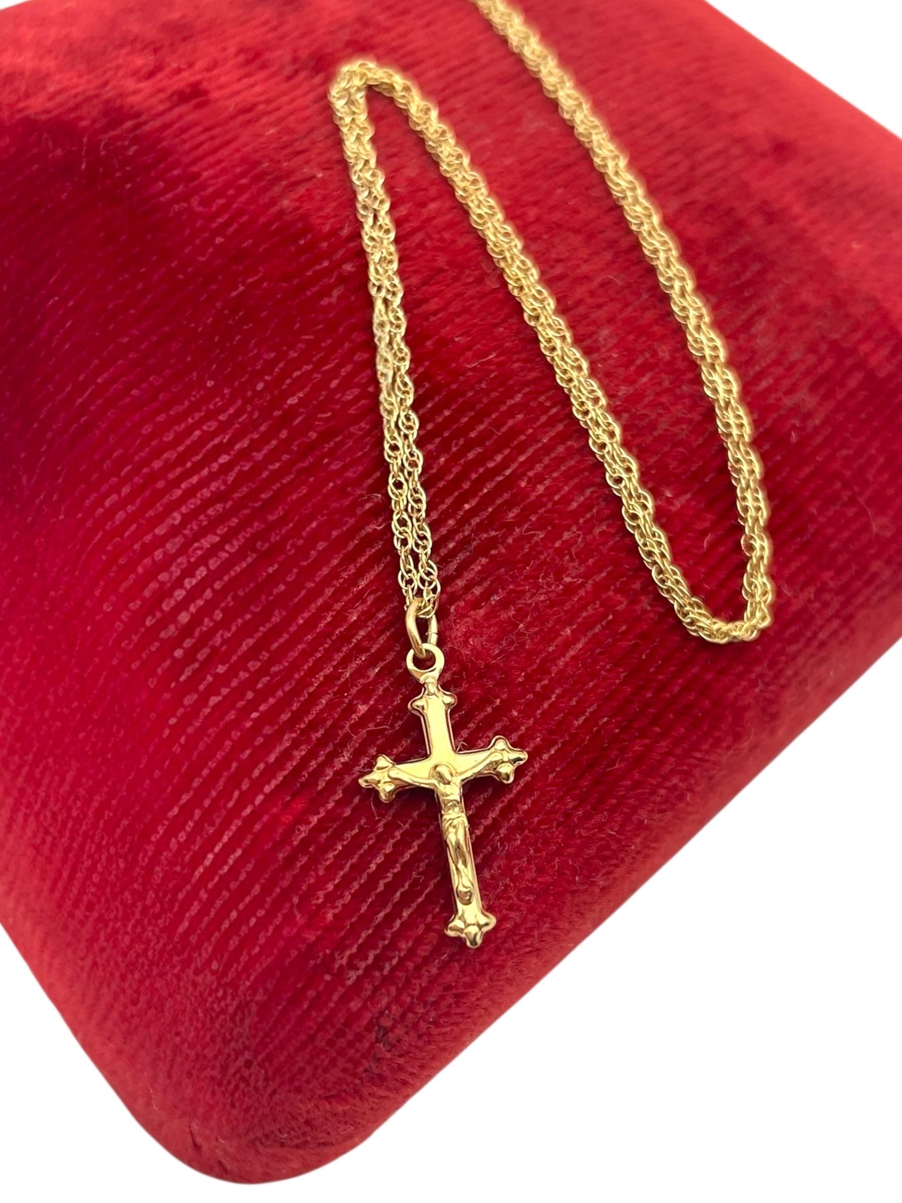 Vintage Petite 14K Gold Filled Cross Necklace: Small Religious Crucifix Pendant 14K GF with Chain by PPC