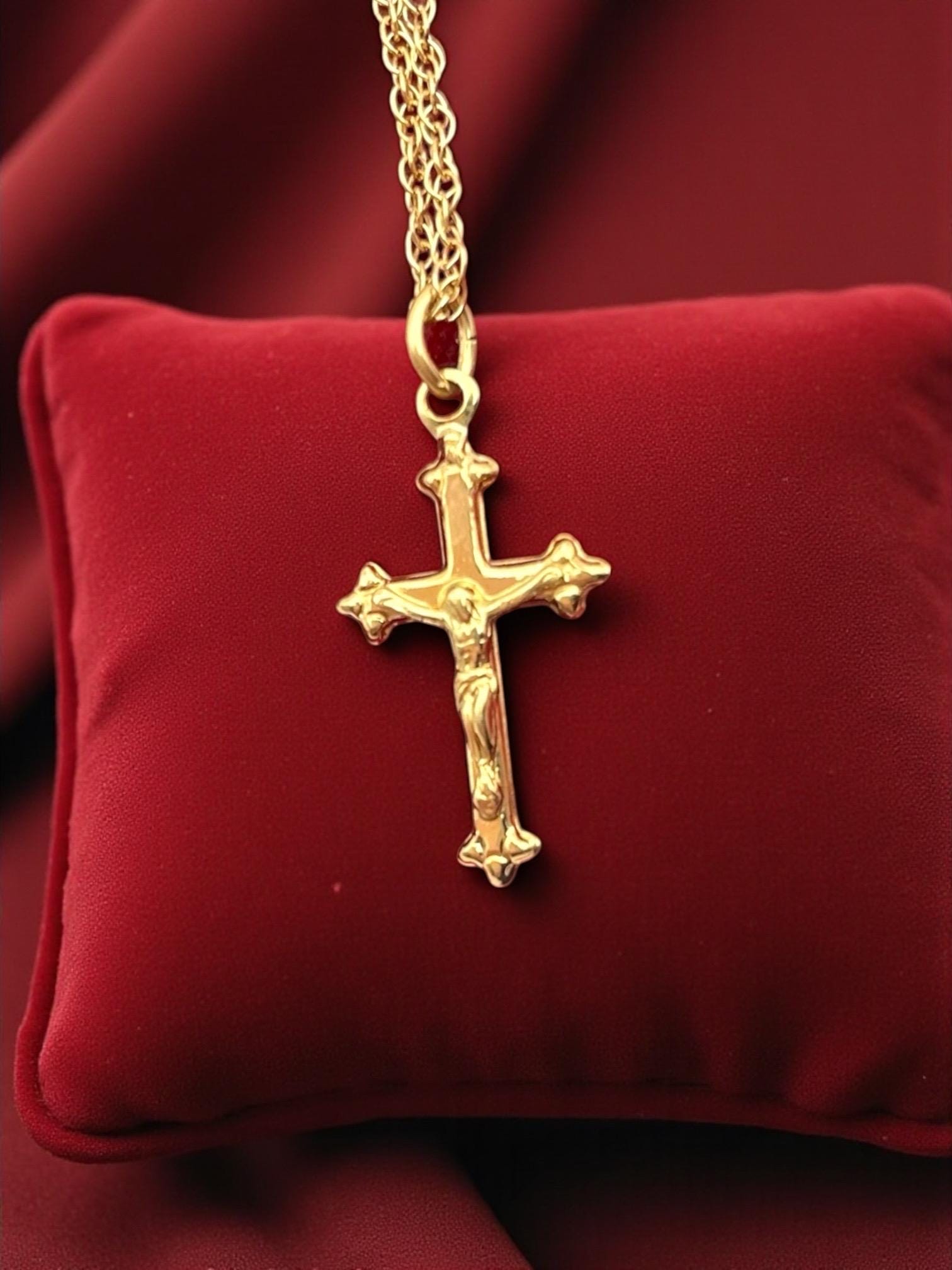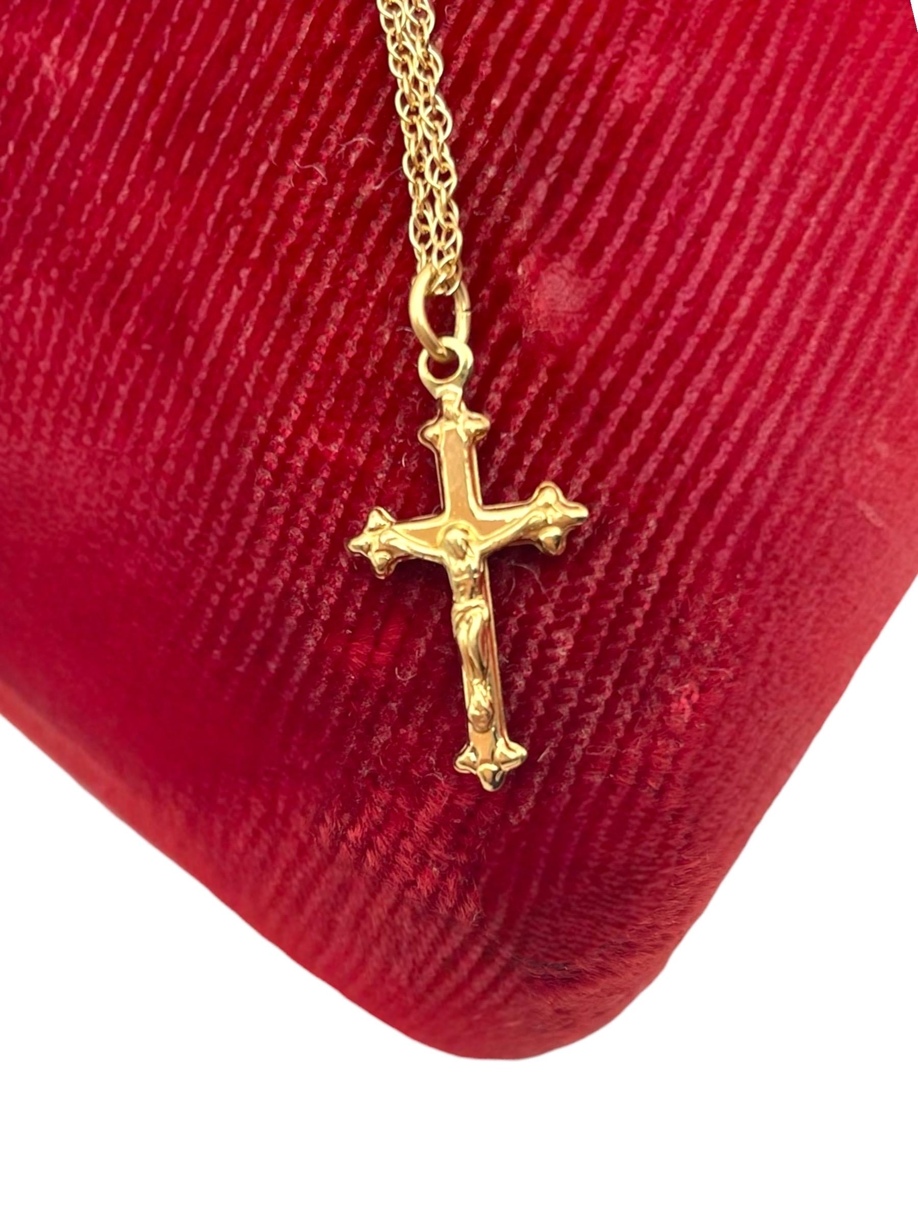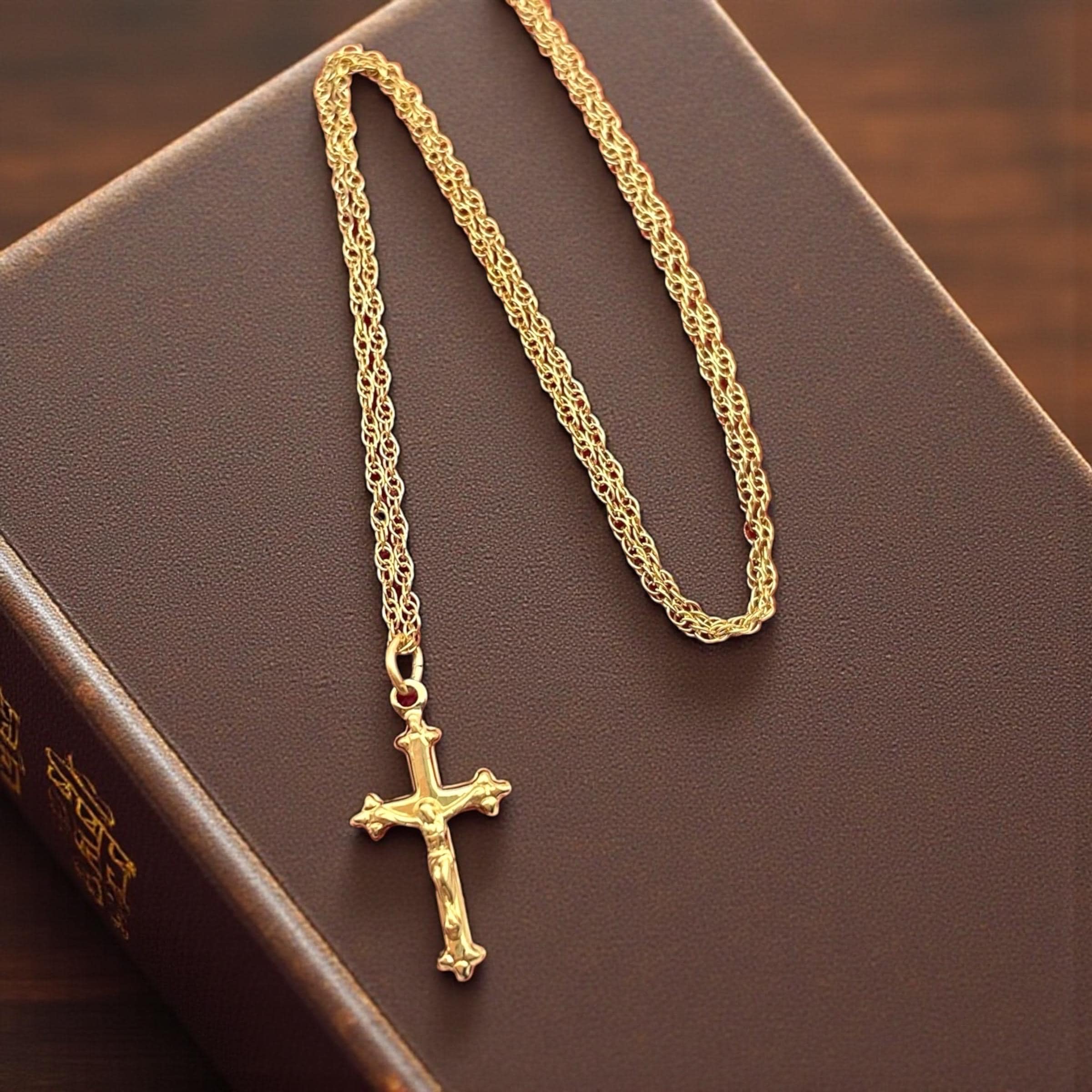 Vintage Petite 14K Gold Filled Cross Necklace: Small Religious Crucifix Pendant 14K GF with Chain by PPC