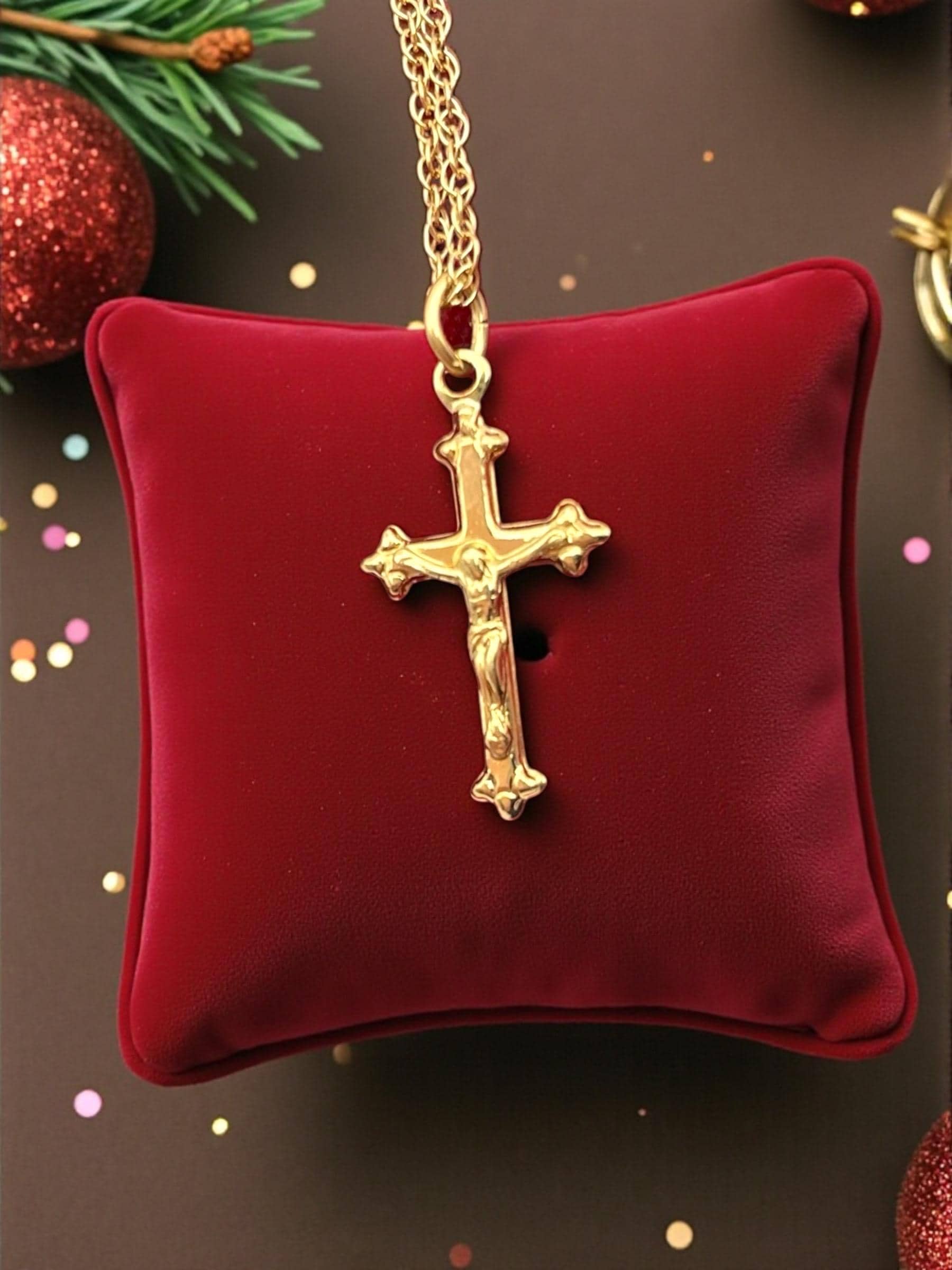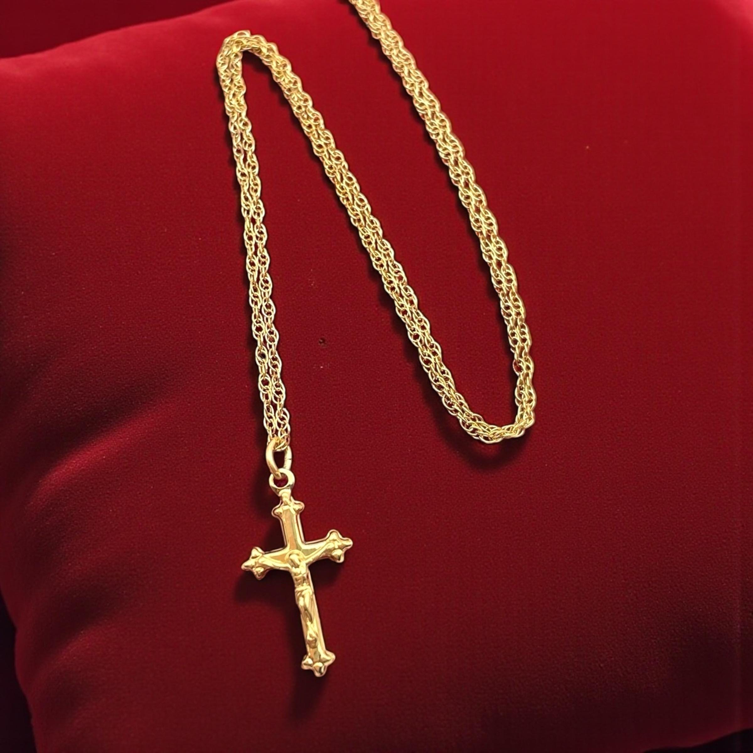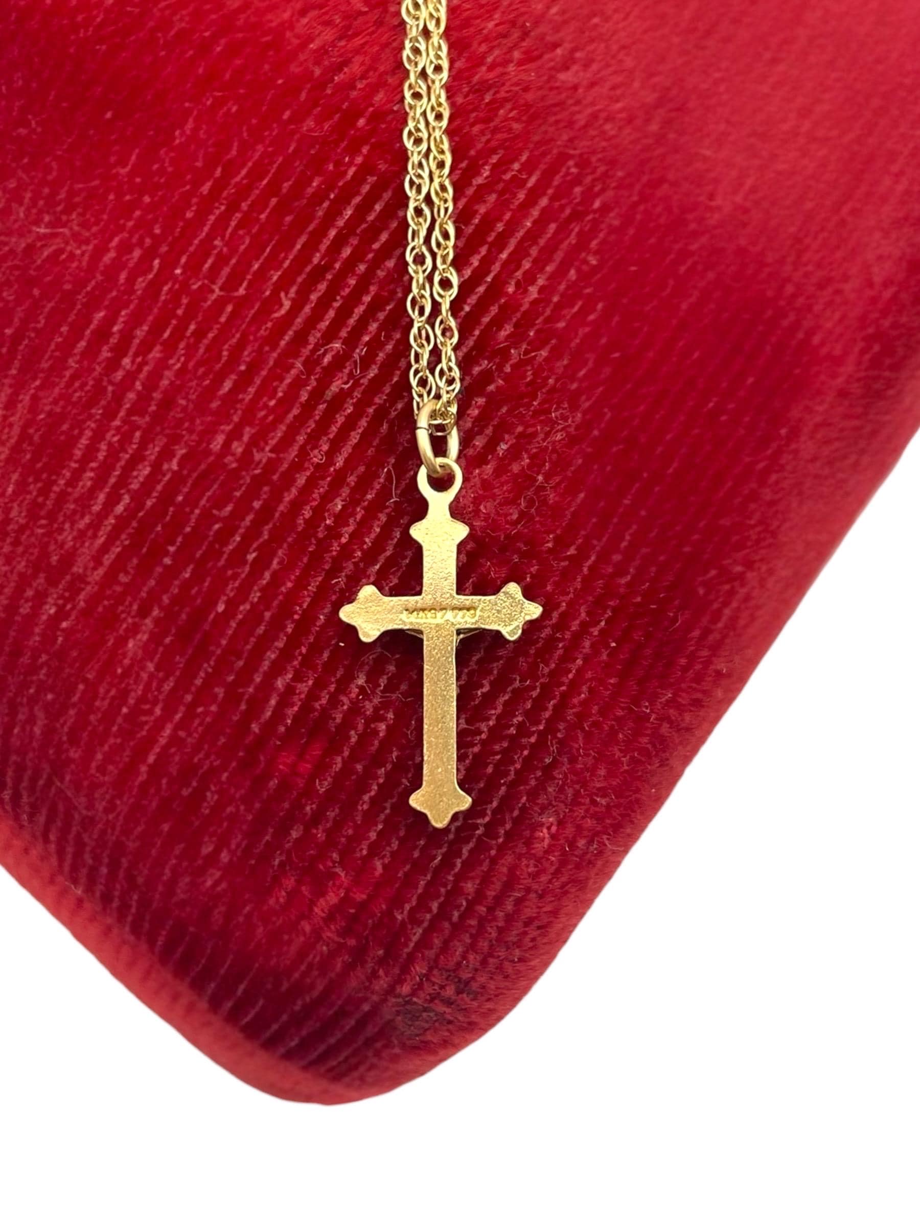 The cross is attached to a 18'' long 14K gold filled chain and also marked for PPC.