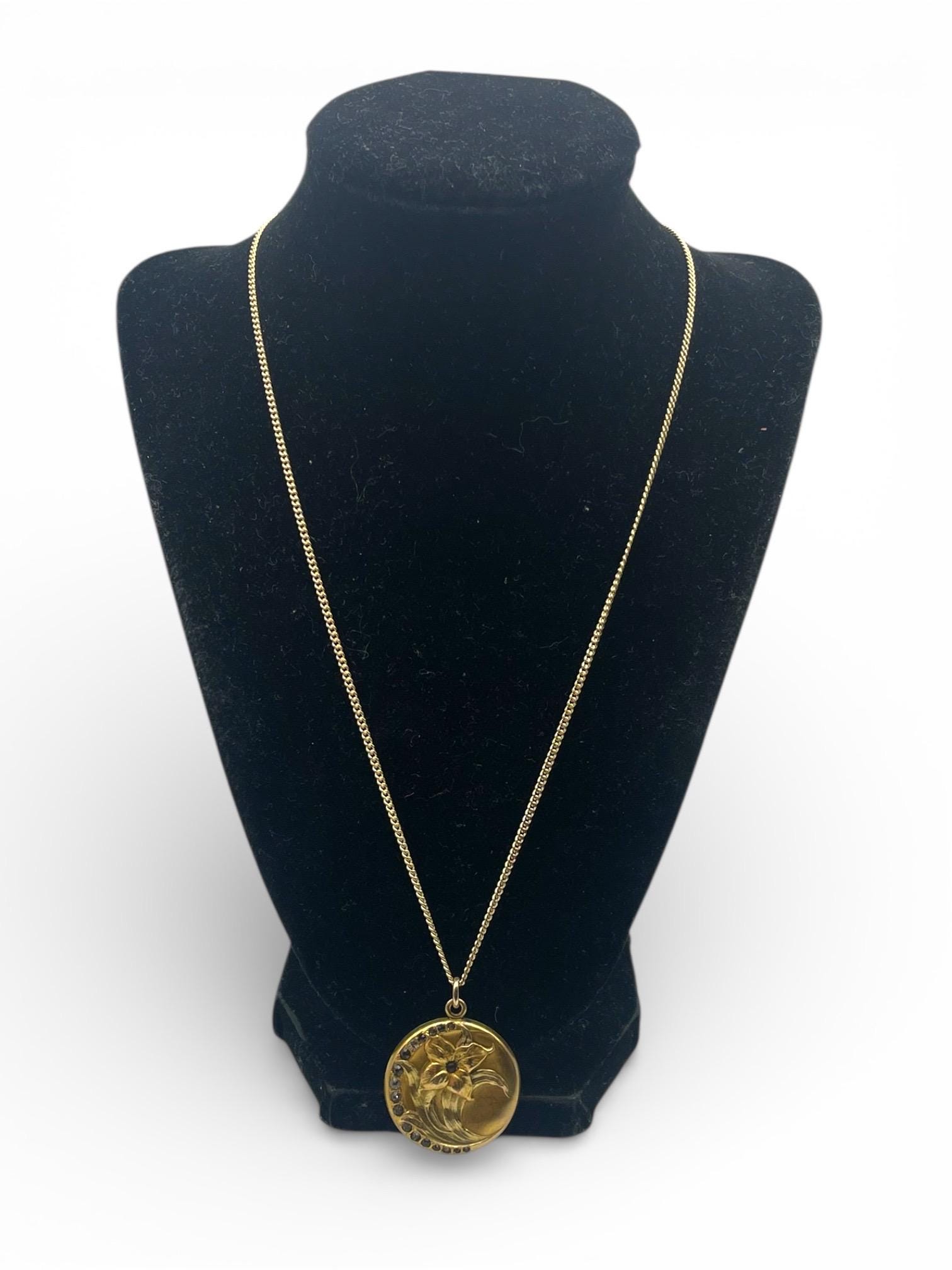 Antique Art Nouveau Gold Filled Locket - Repousse Floral Flower Paste Gemstones Necklace W&H Hallmark