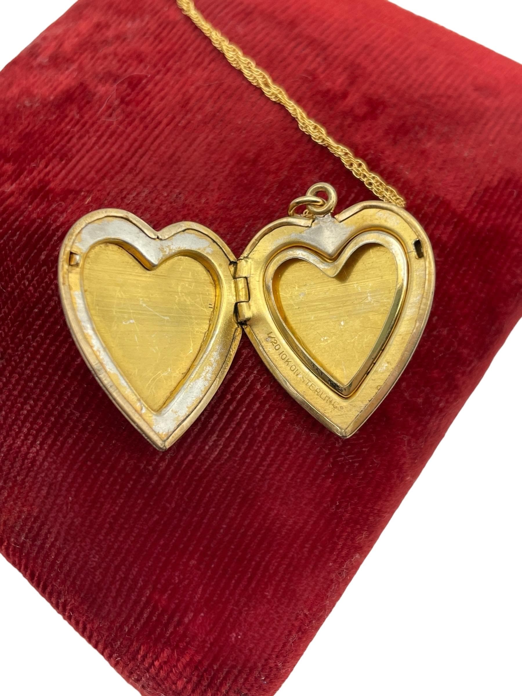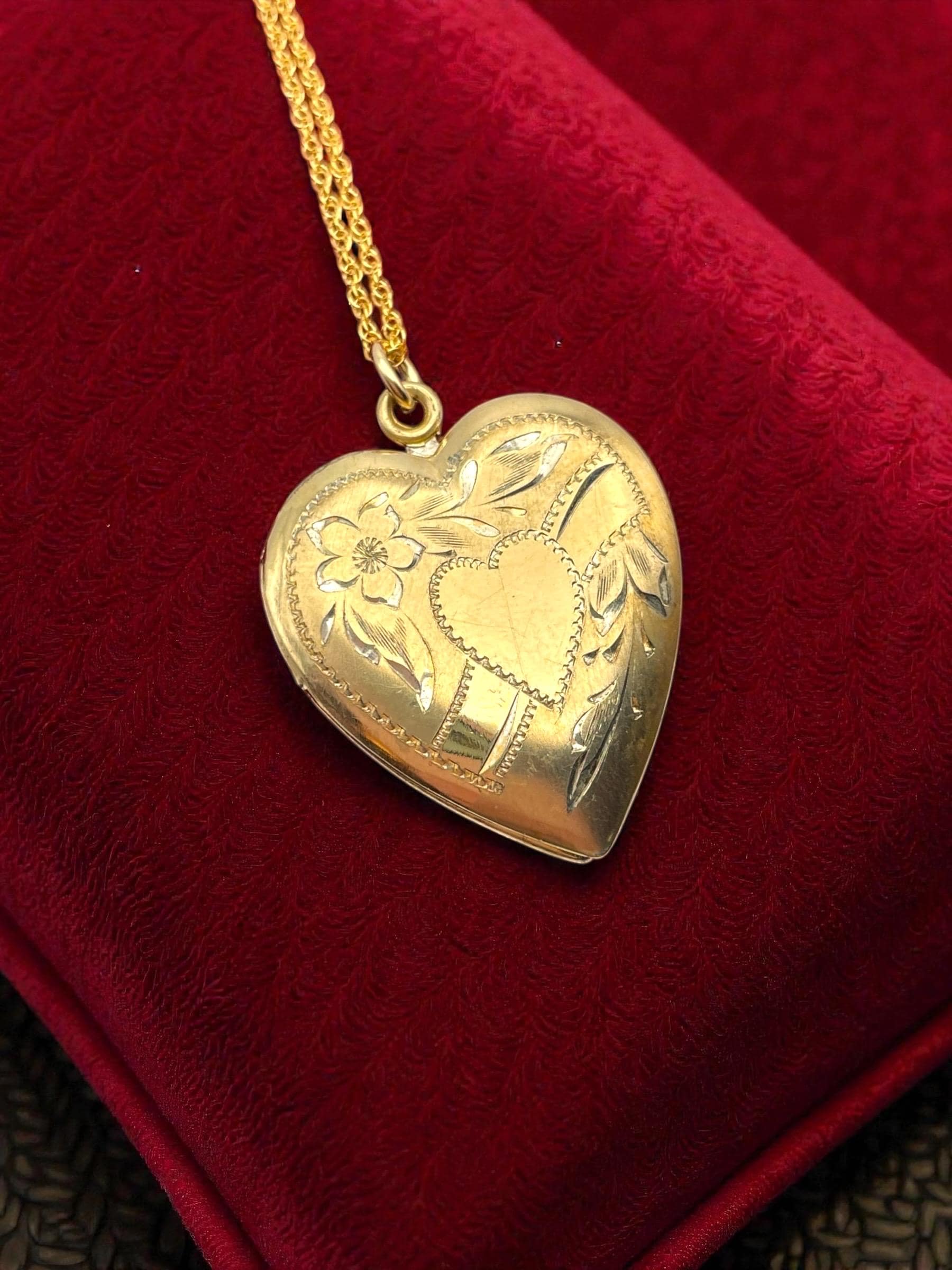 Vintage Heart Locket - Vermeil Etched Sweetheart Necklace - 10K Gold Filled on Sterling 14K GF Chain Photo Pendant