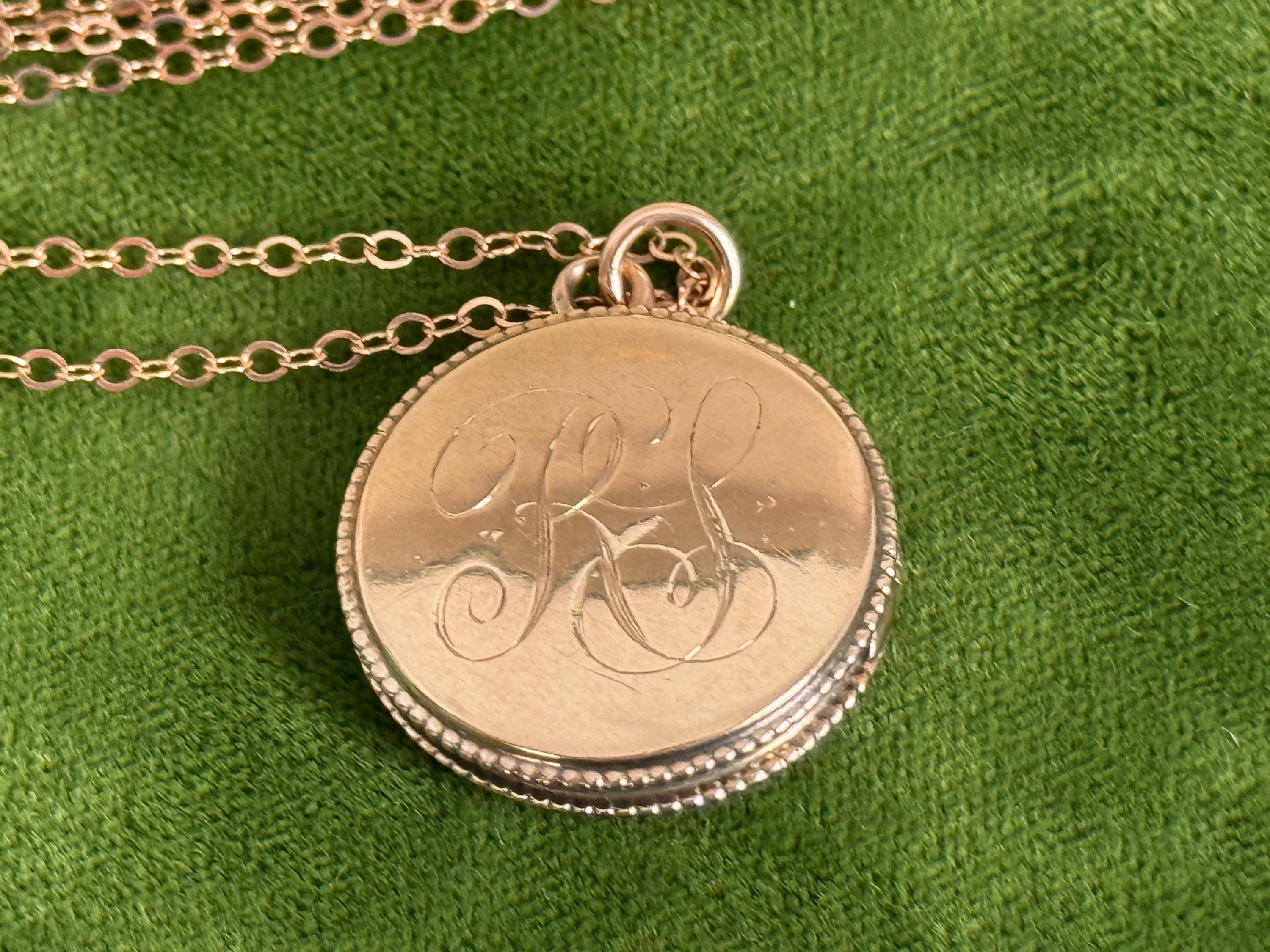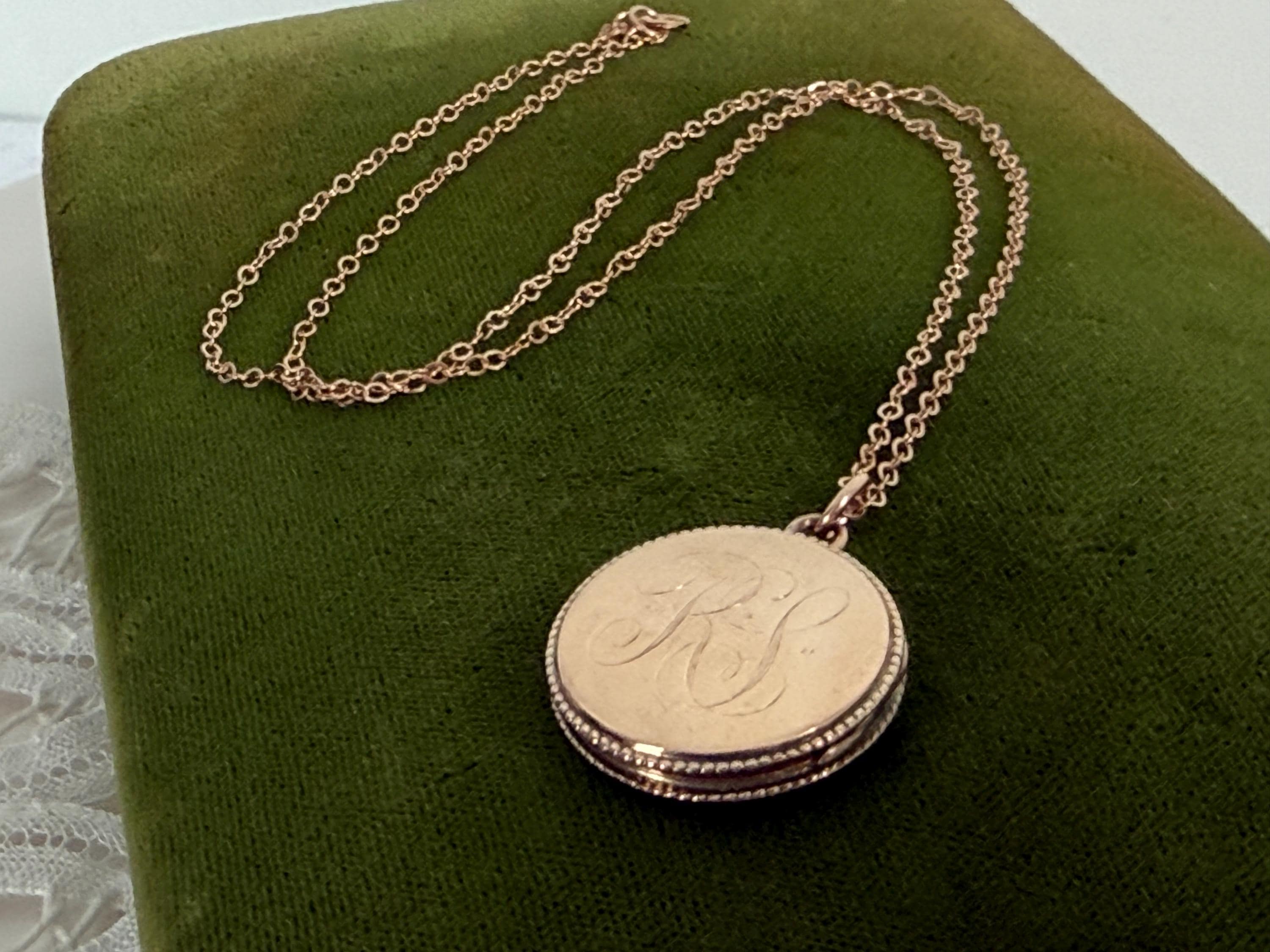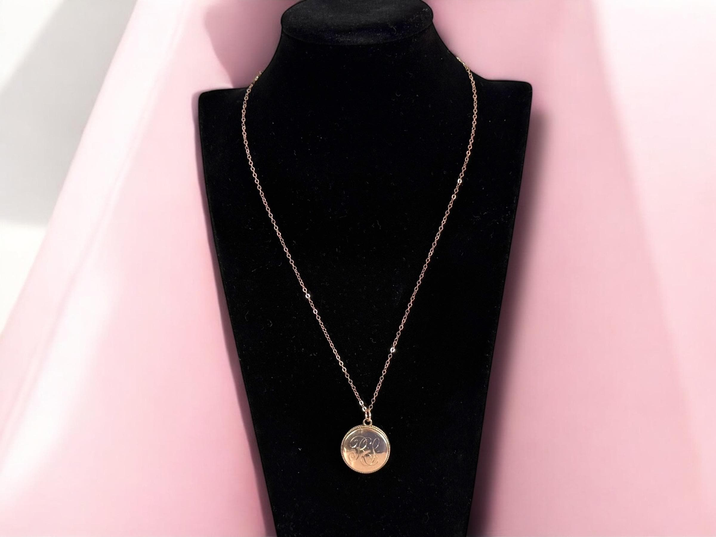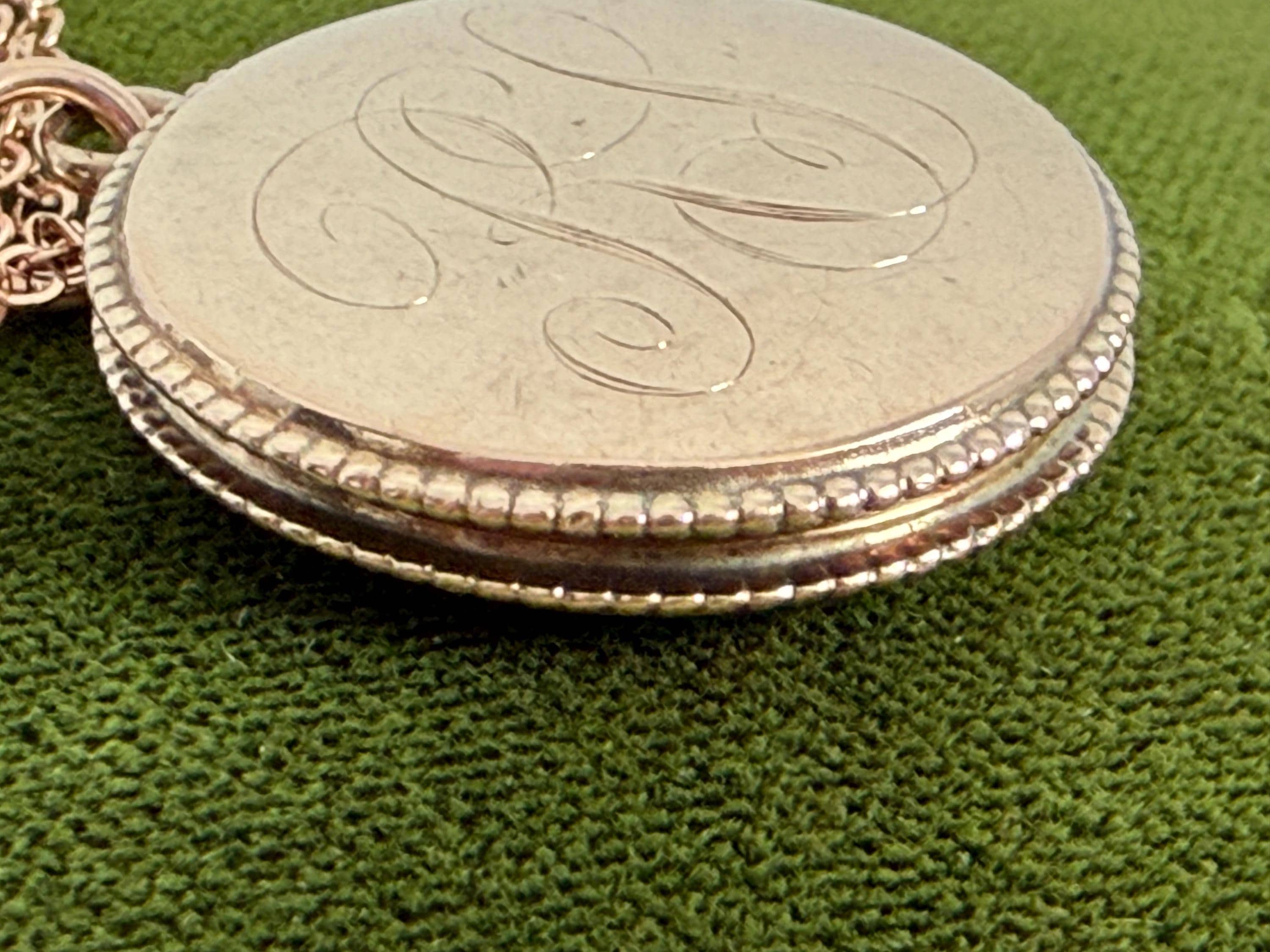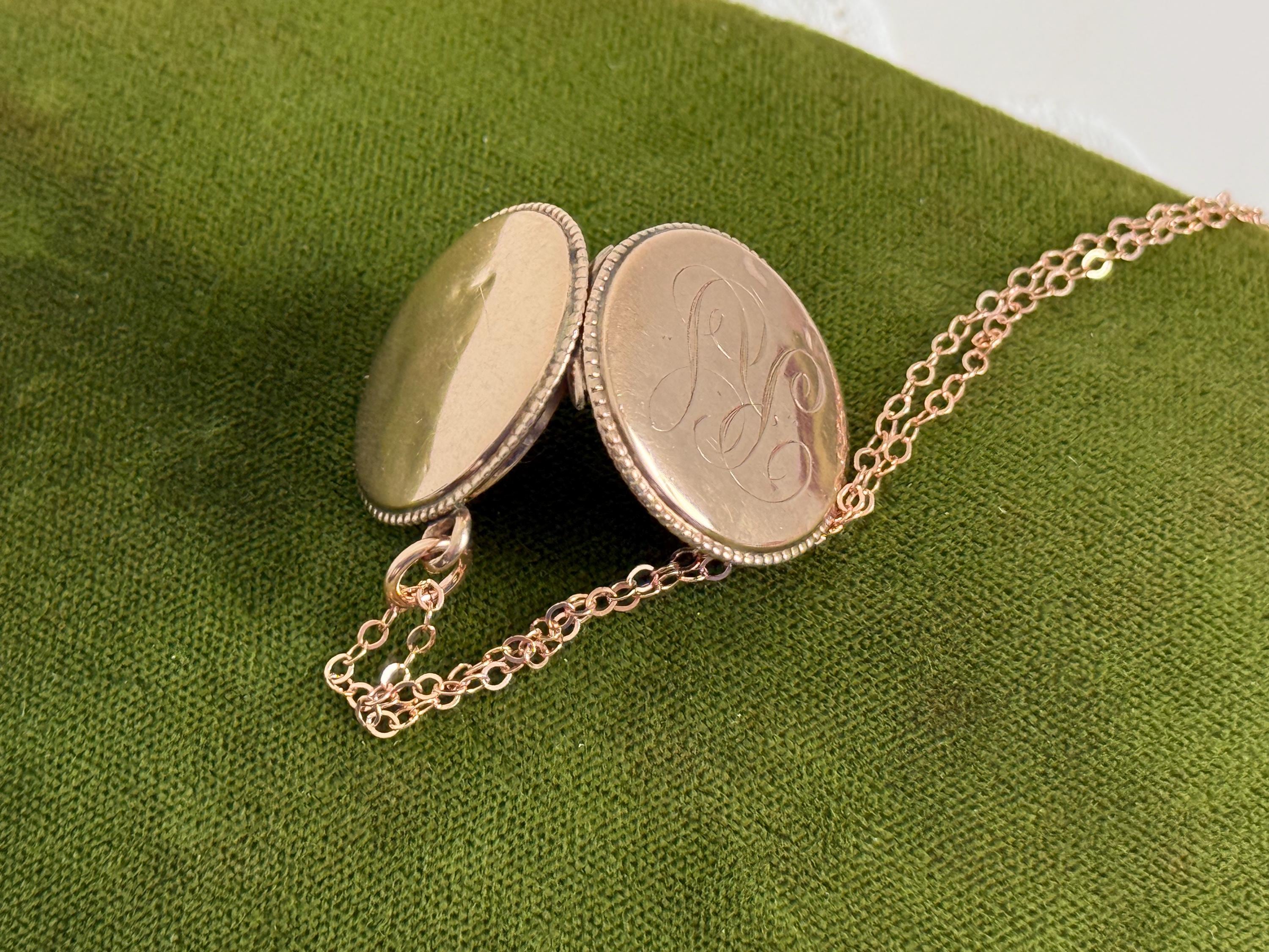 Vintage Round Locket: Rose Gold Filled w/ LS Monogram on 14K Rose GF Chain