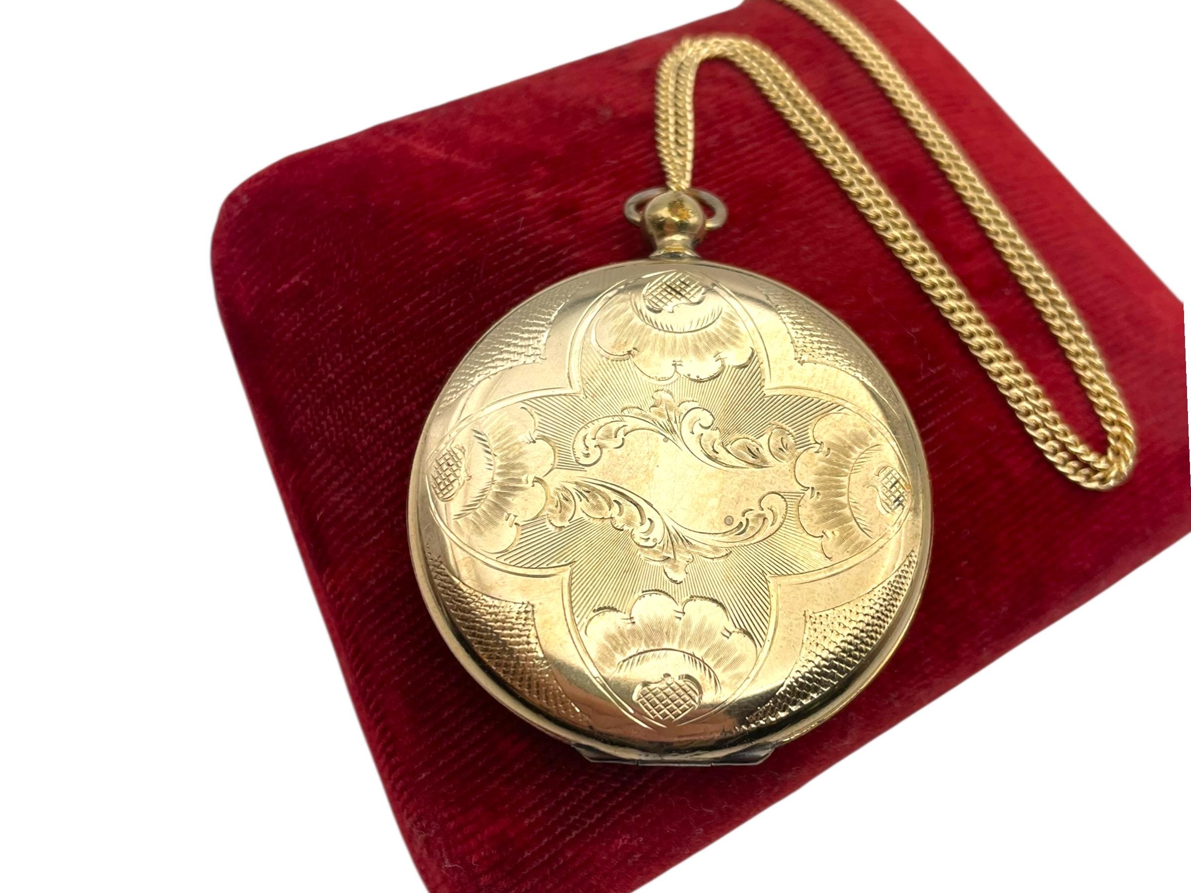 Antique Gold Plated Locket Necklace: LARGE Locket Vintage Etched Victorian Watch Case Photo Pendant