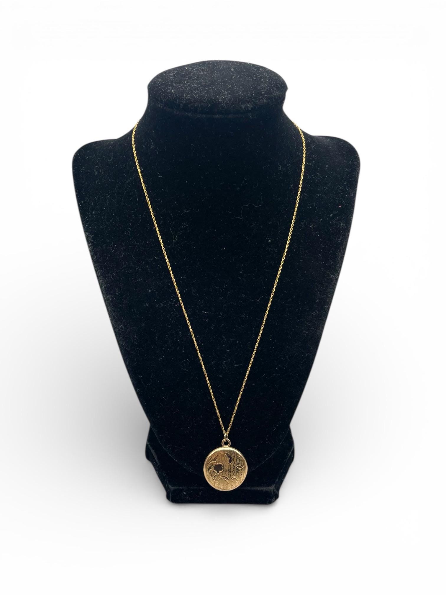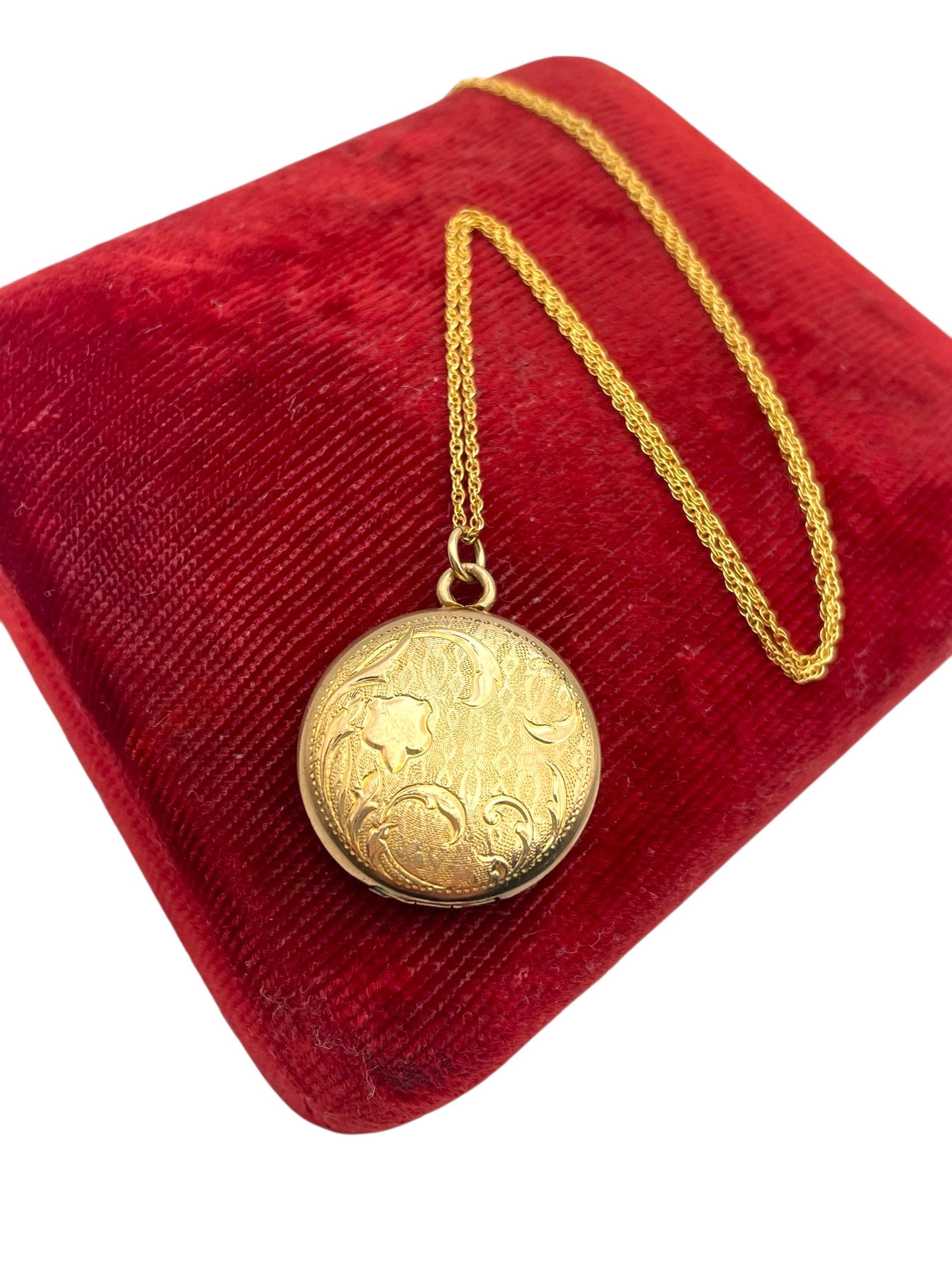 The antique locket hangs from a new 14K gold filled chain that is 20'' in length. The locket can be purchased with or without the chain.