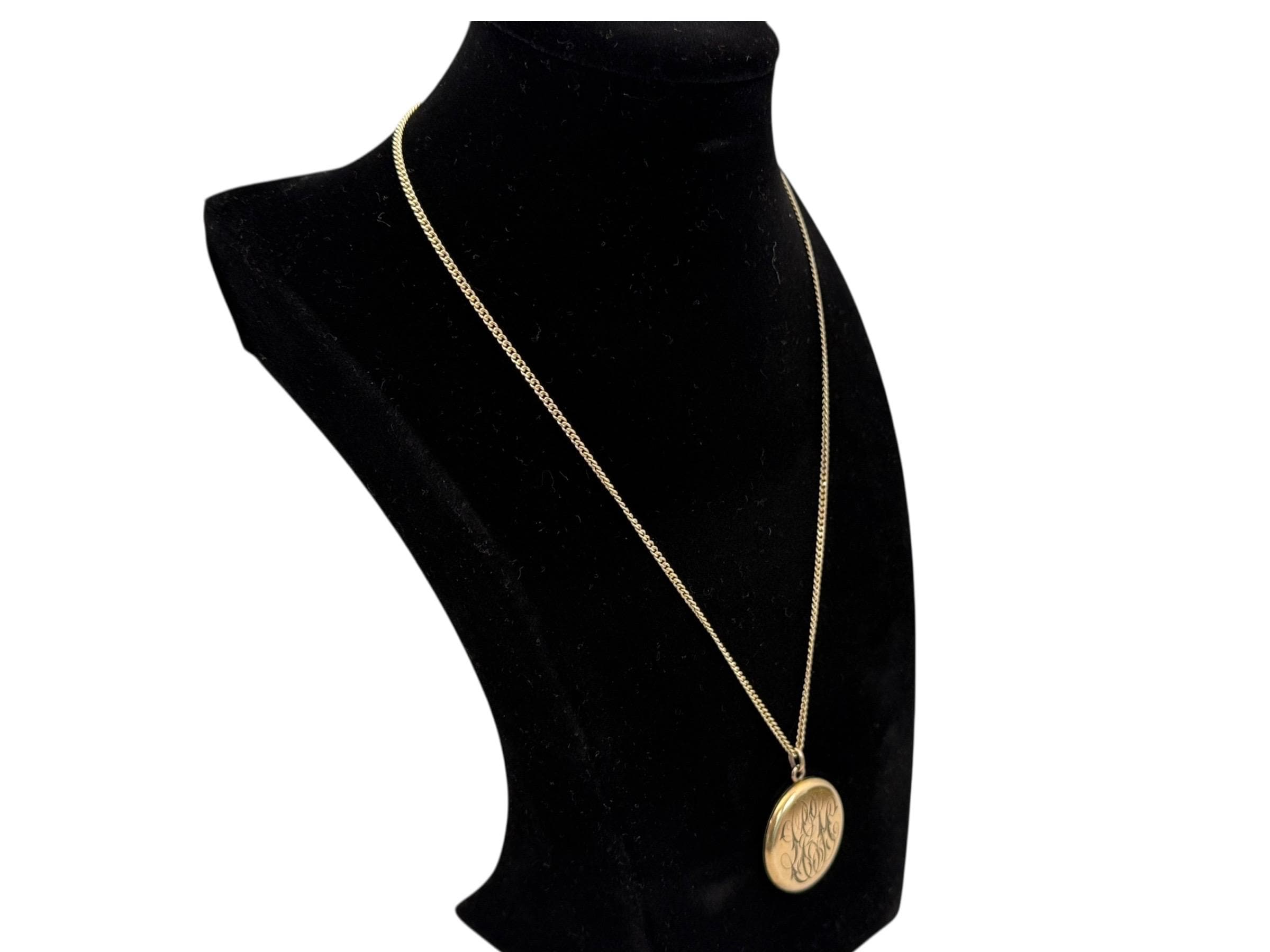 The vintage locket hangs on a new 18” long curb chain that is marked as 14K gold filled.