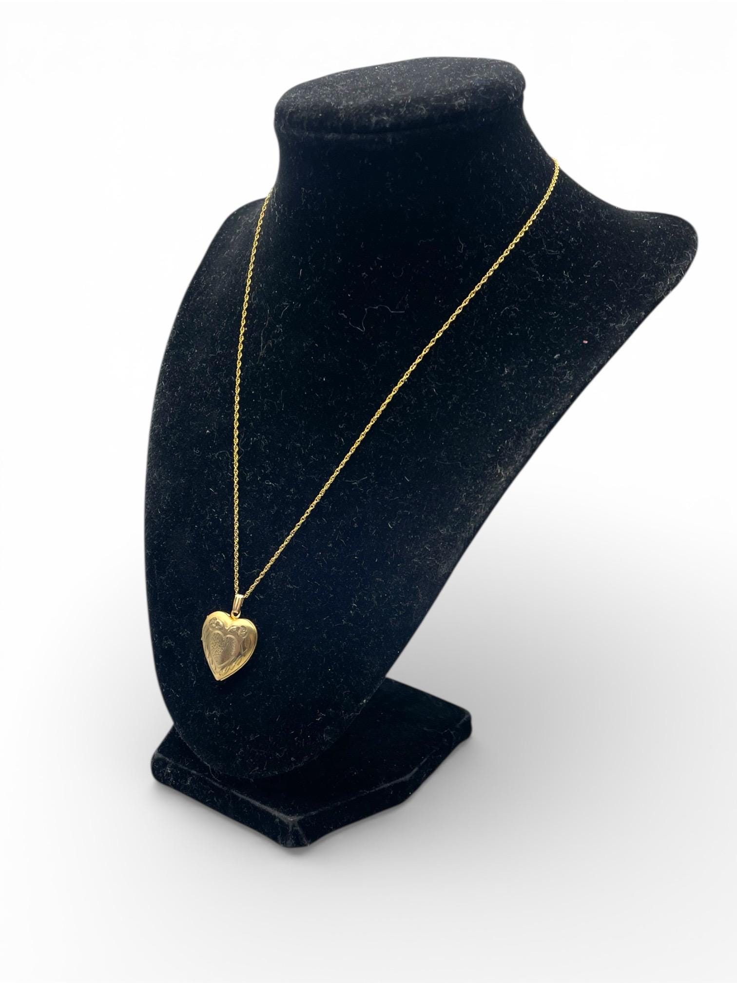 Vintage Heart Locket - 14K Gold Filled Necklace Etched Love Pendant on 14K GF Chain