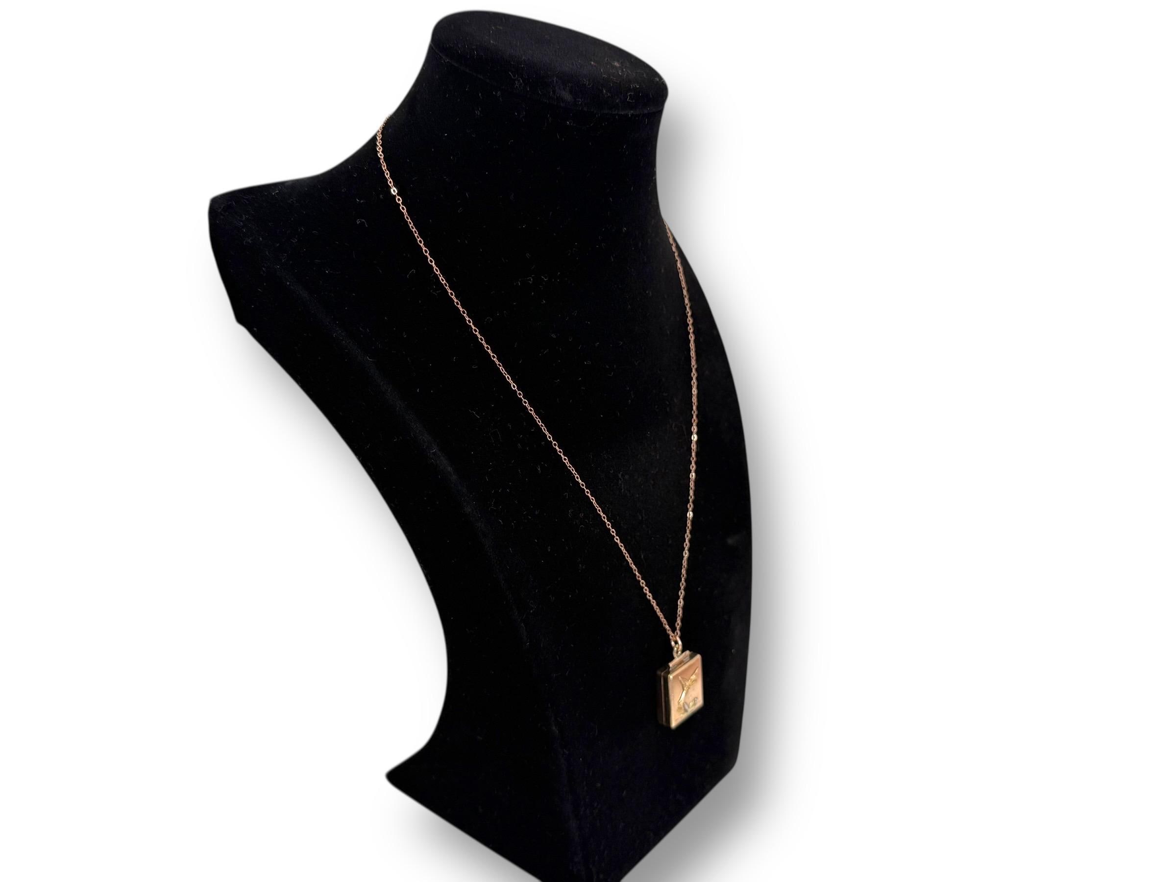 This is an antique watch (circa early 1900s) fob that can be worn on a pocket watch chain or attached to a necklace chain and worn as a pendant. We have attached it to a new 14K rose gold filled cable chain that is 18'' in length. The fob/charm can be purchased with or without the chain.