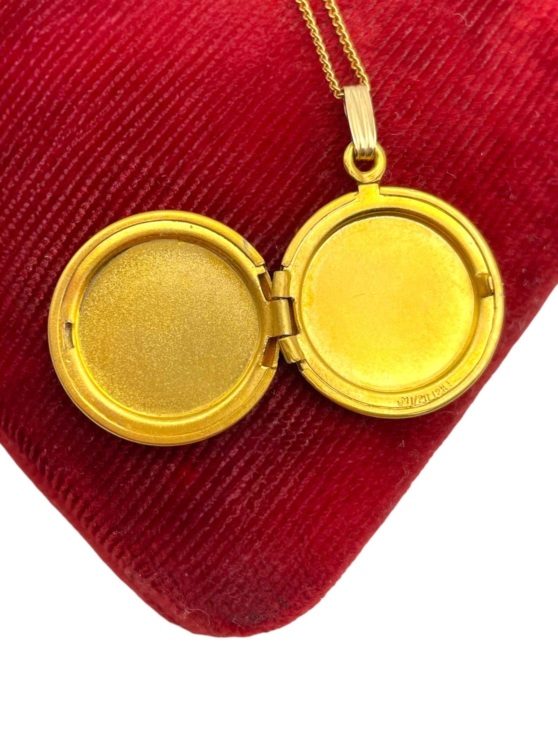 The locket hangs on a vintage 18” long gold filled chain. The chain has a spring ring clasp. The locket can be purchased with or without the chain.