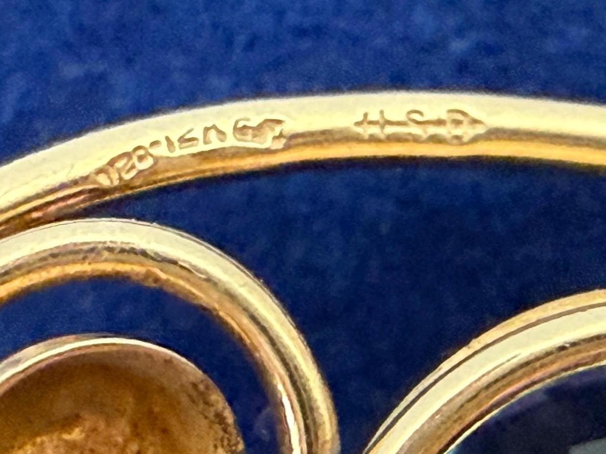 Brooch is marked 1/20 12K GF HSB with an arrow through the letters on the back.