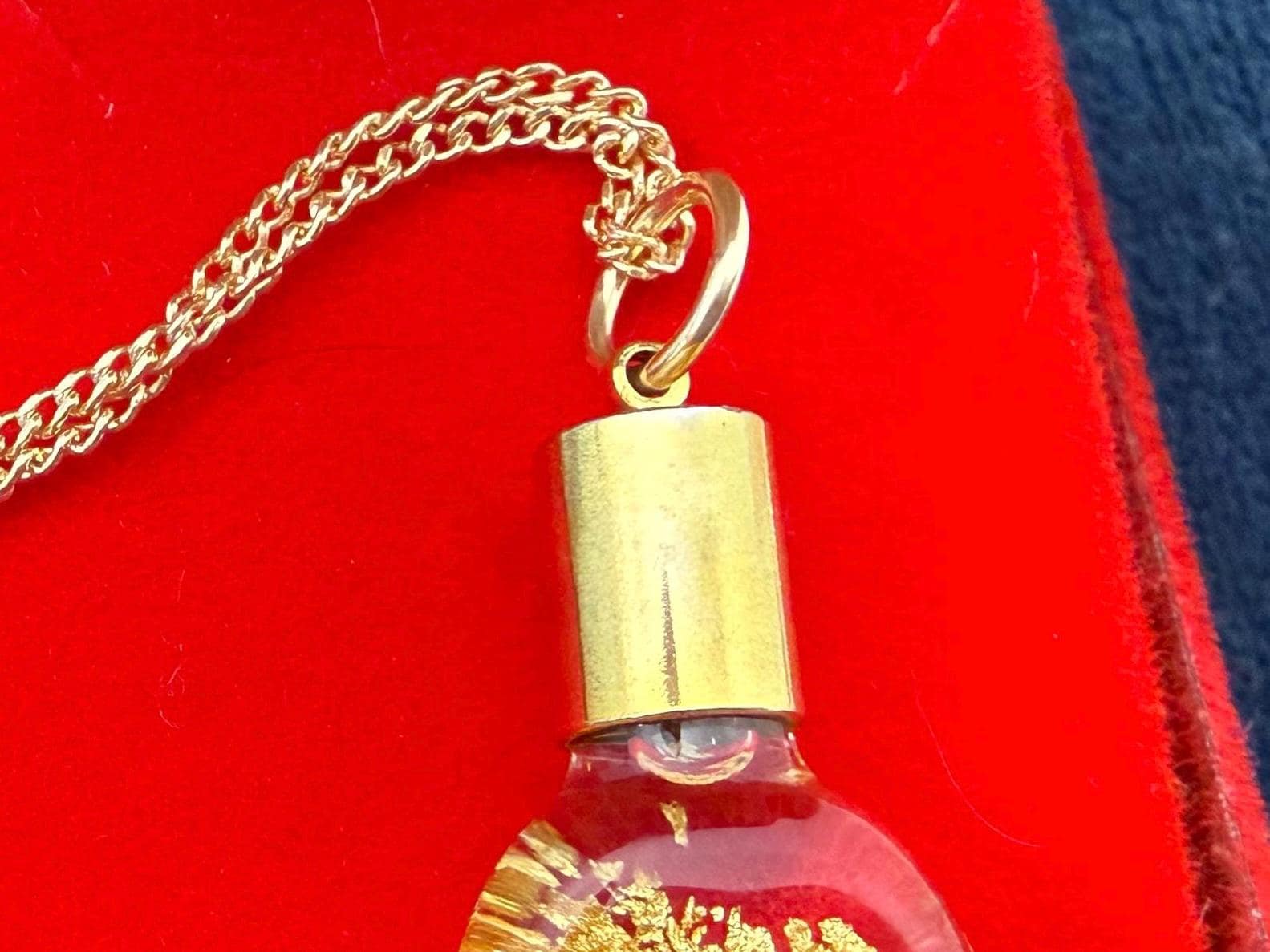 Vintage Glass Pendant w/ Gold Flakes, 14K GF Chain, Souvenir Charm Necklace