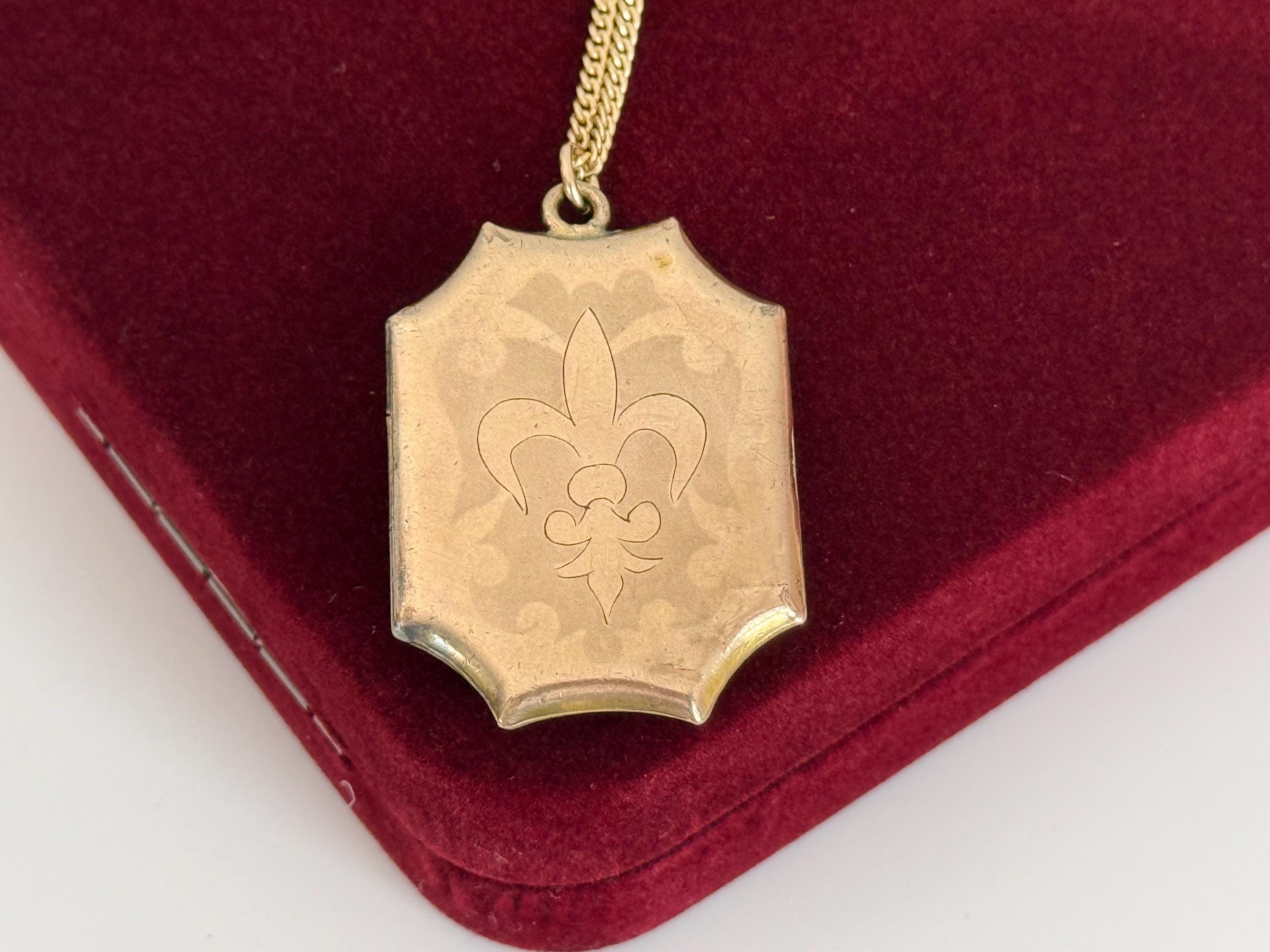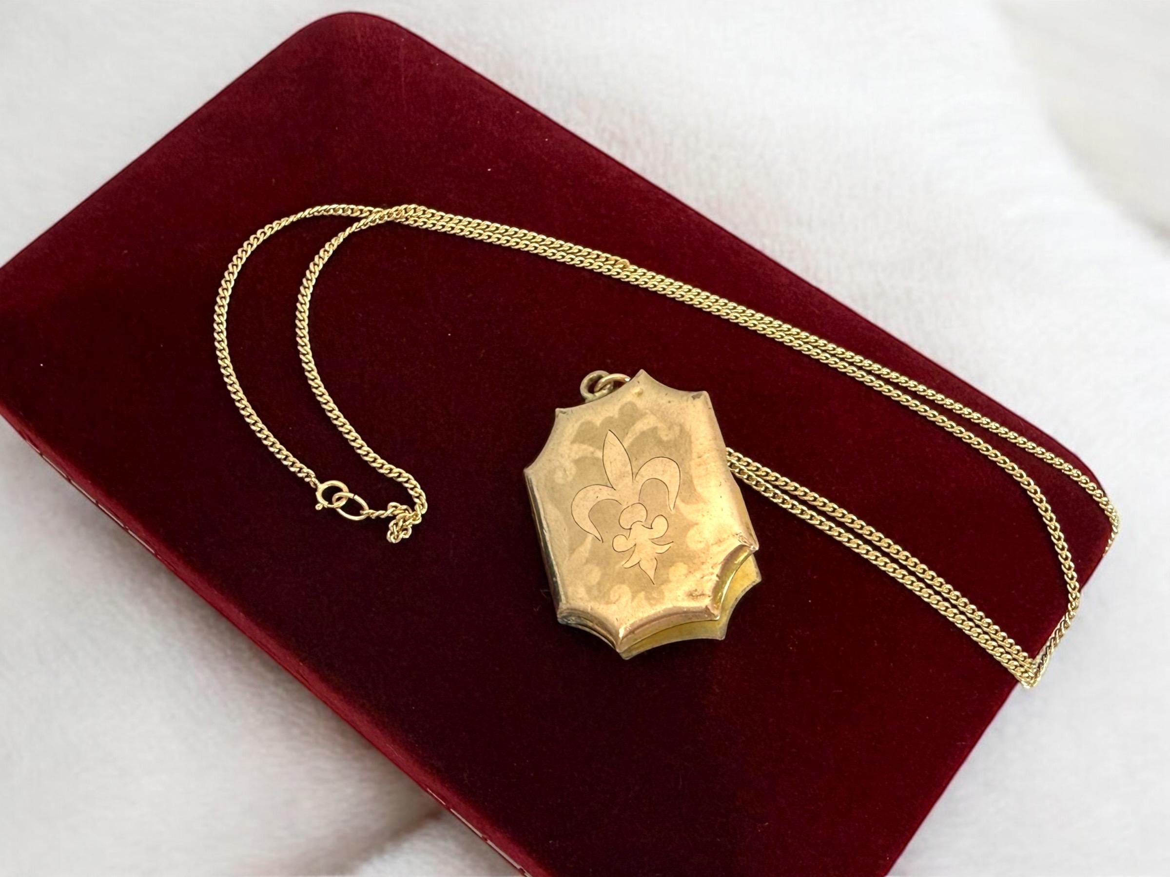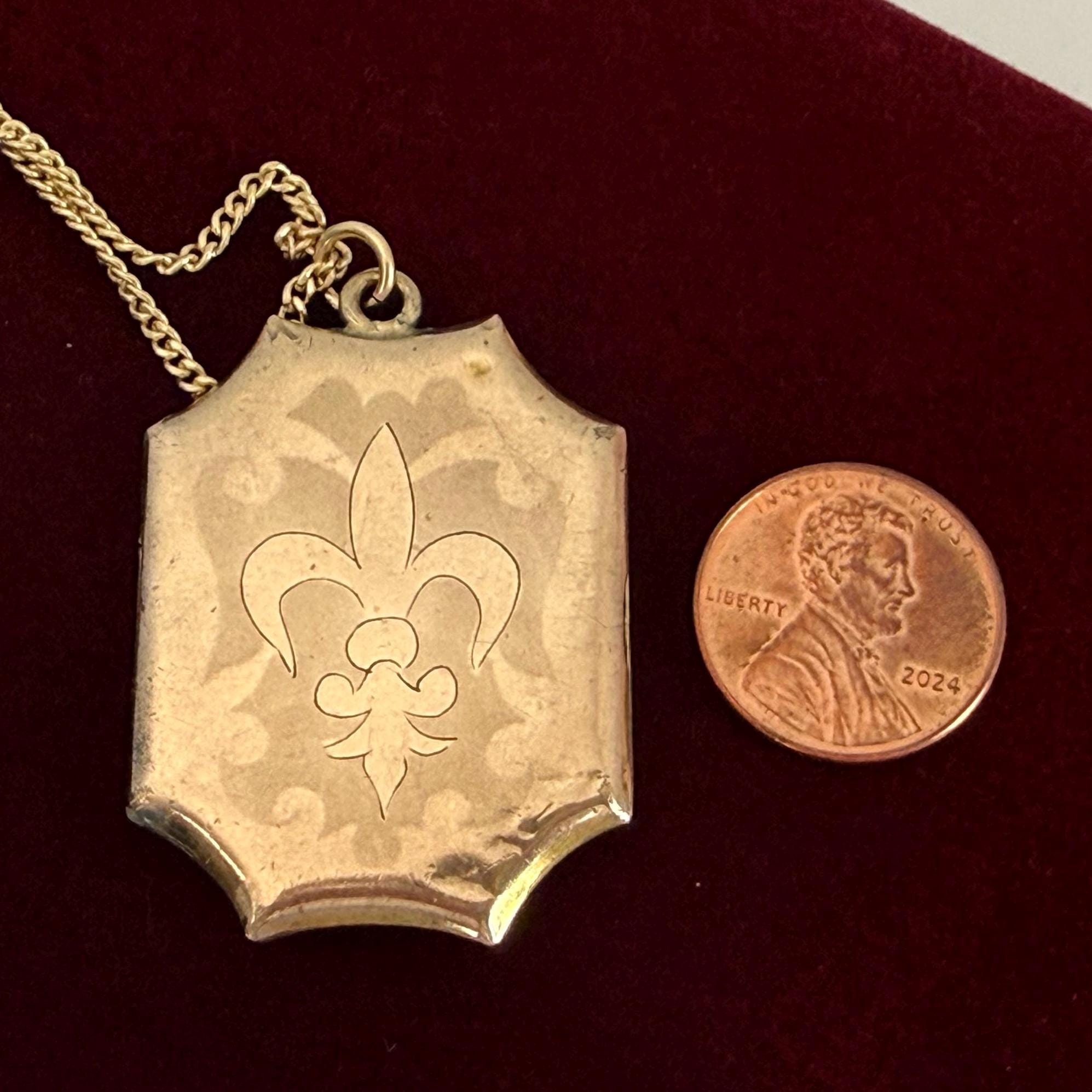 Vintage Gold Filled Locket Necklace – Fleur de Lis, Monogrammed Photo Pendant