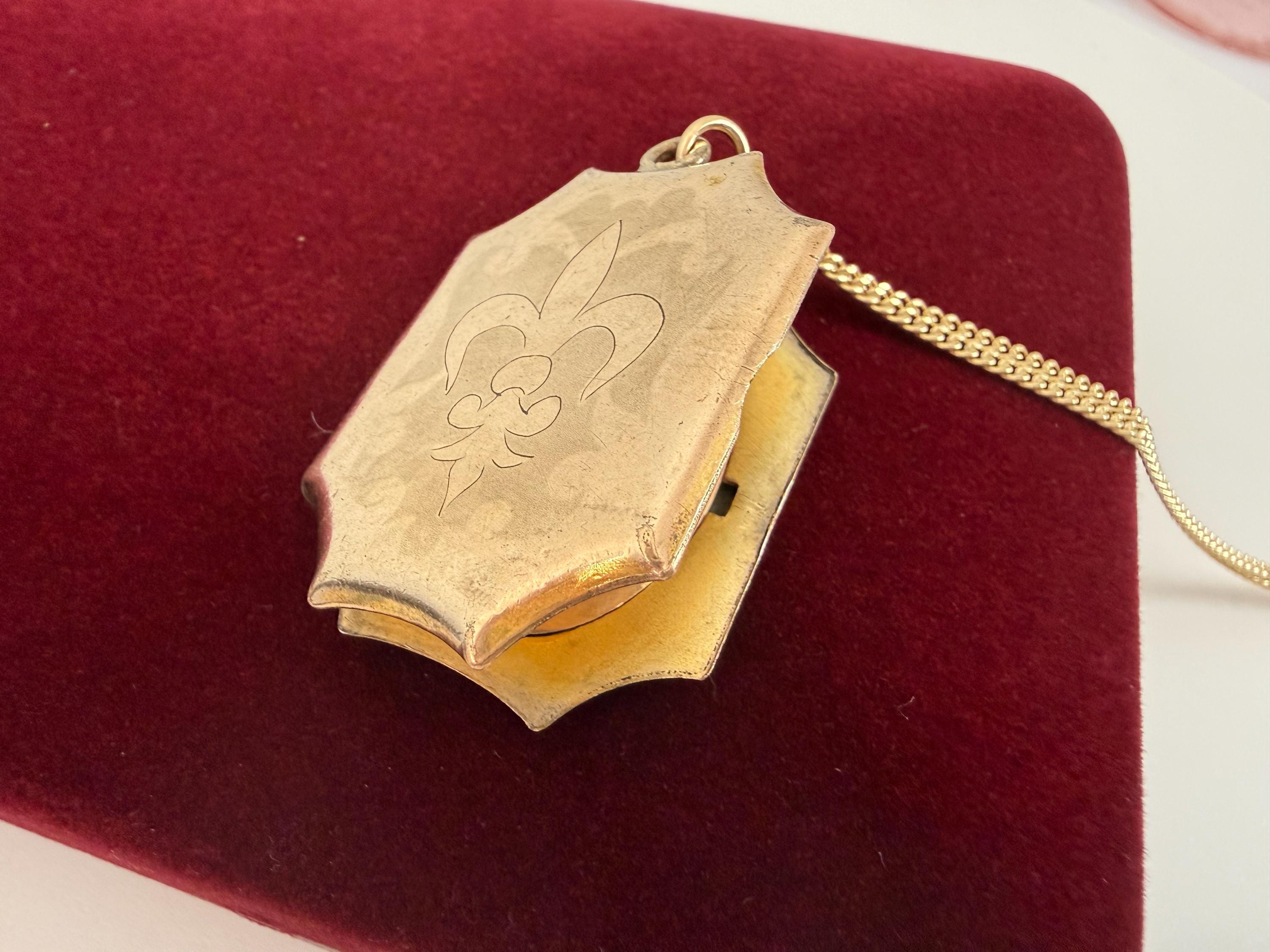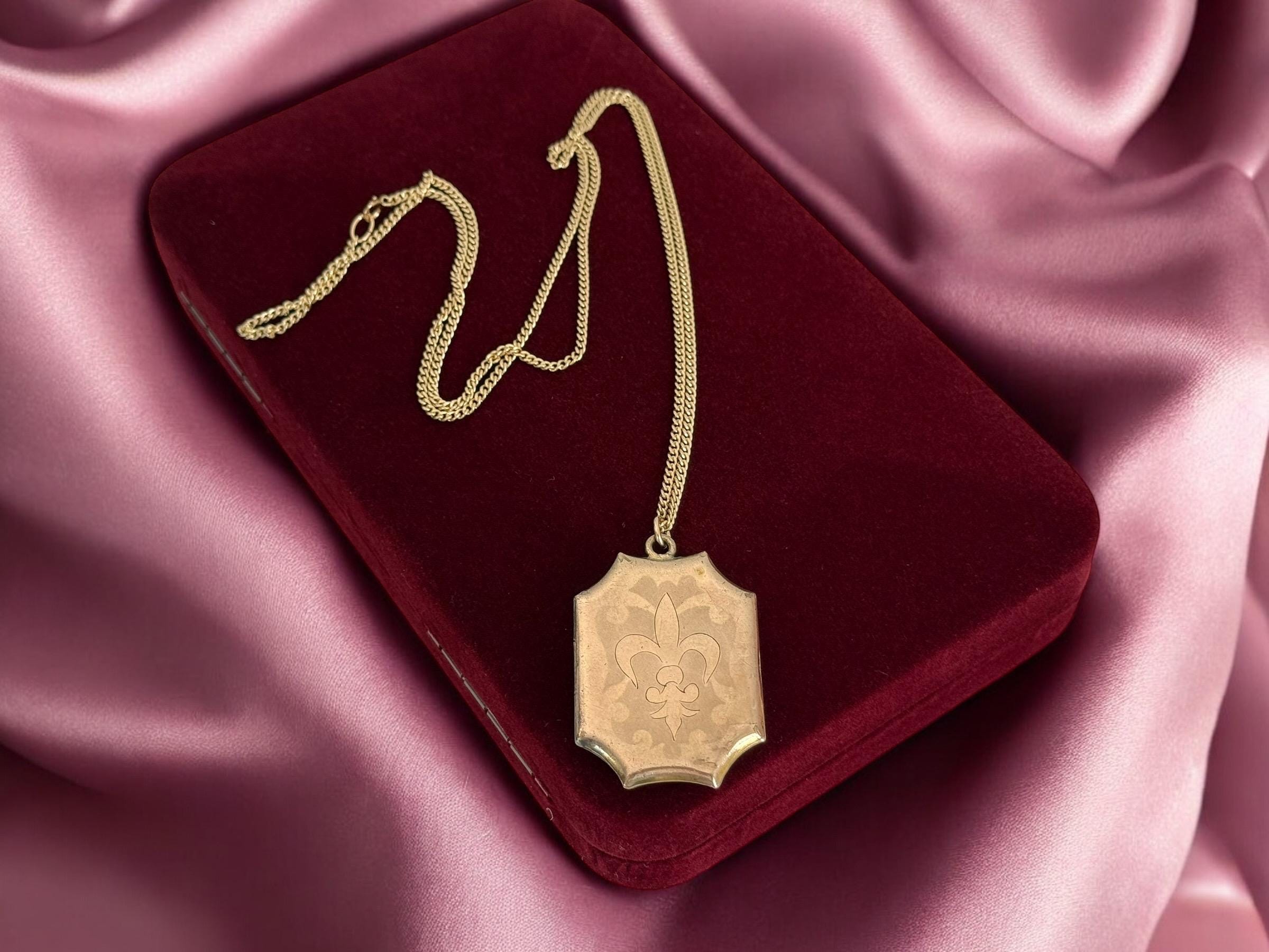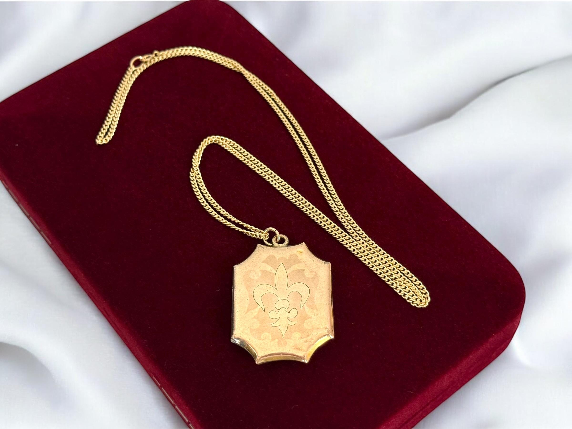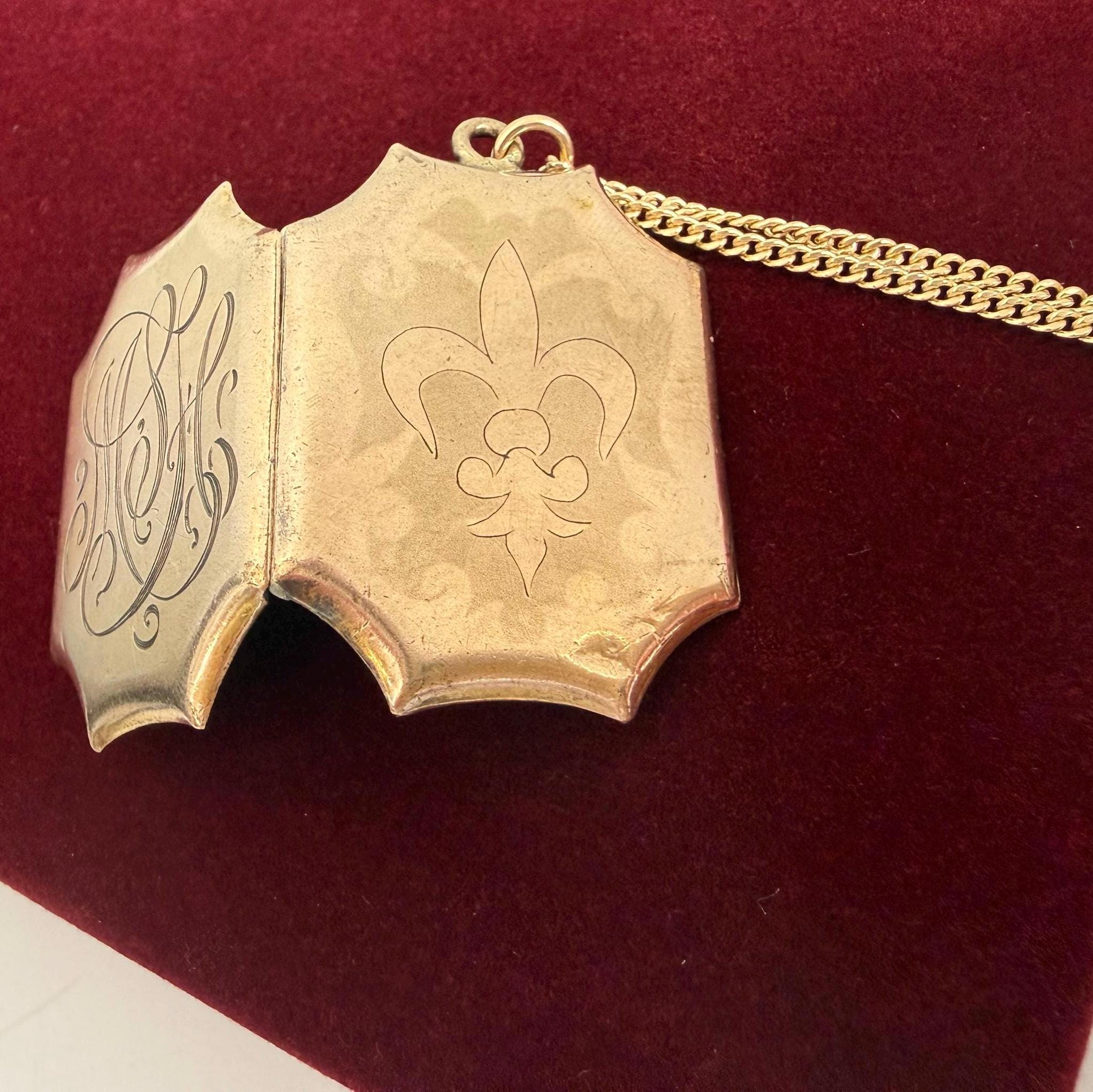 Vintage Gold Filled Locket Necklace – Fleur de Lis, Monogrammed Photo Pendant