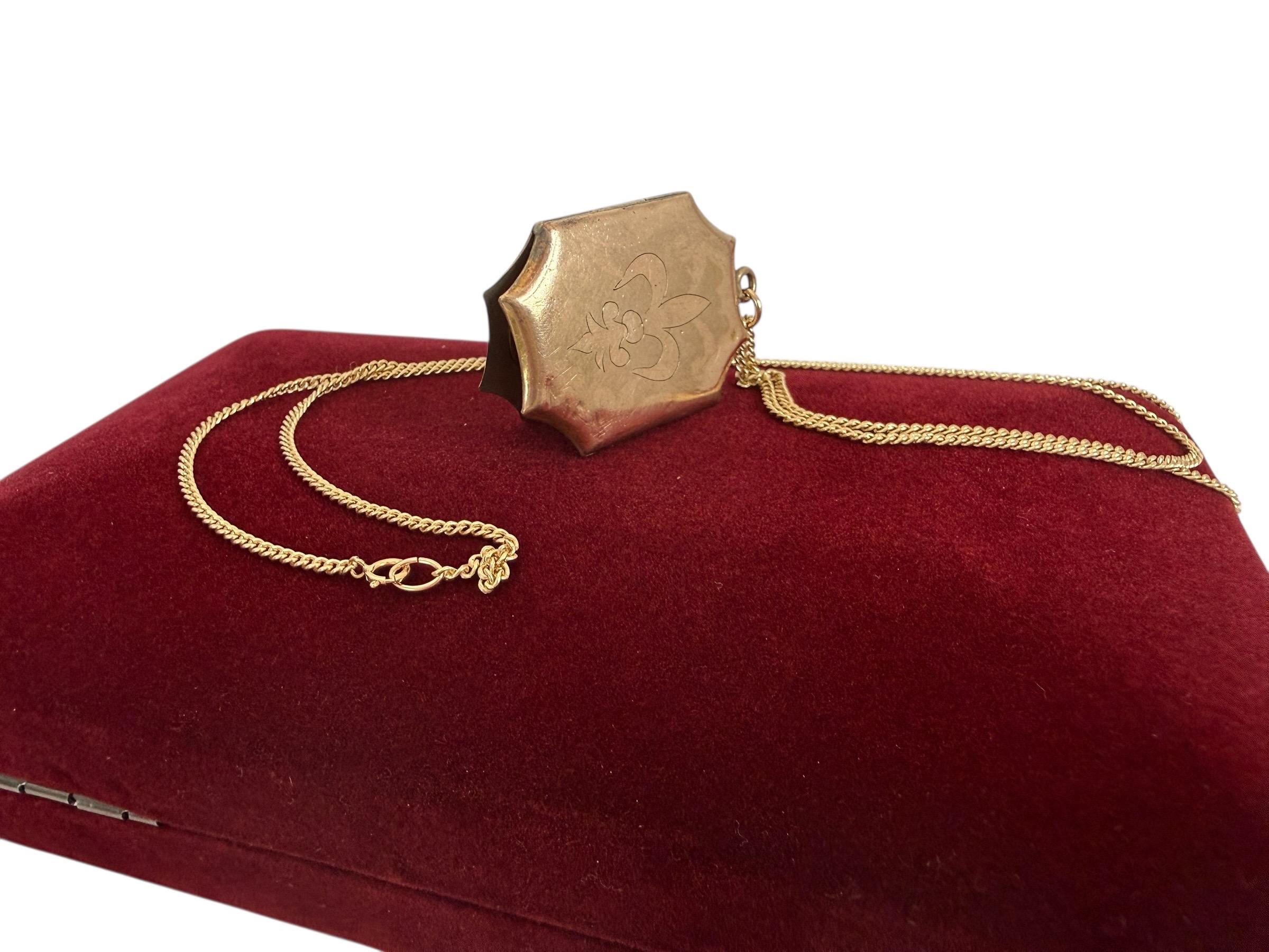 The locket hangs from a new 14K gold filled curb chain with a spring ring clasp. The clasp opens and closes securely.