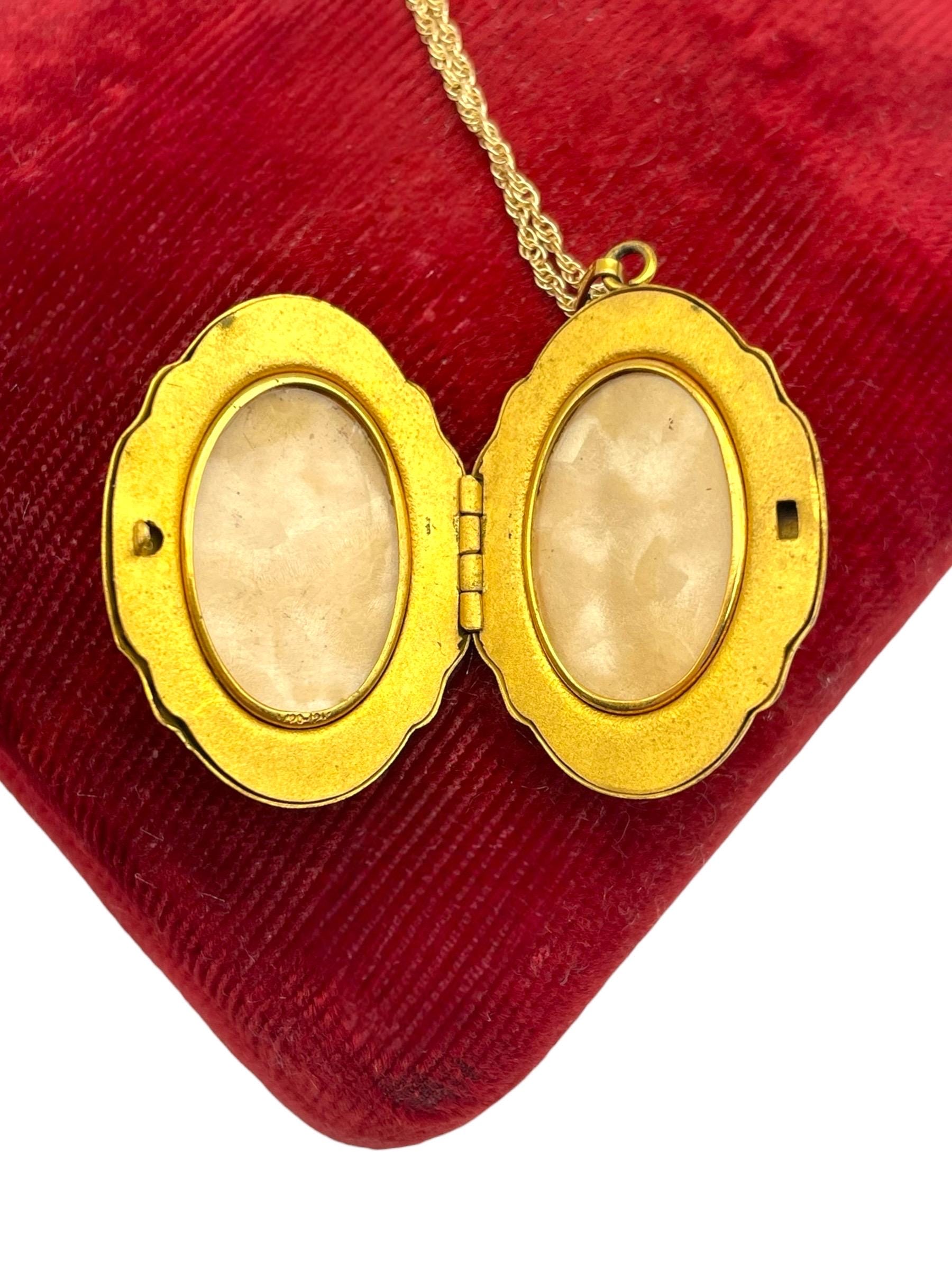 The vintage locket hangs from a new 20'' long 14K gold filled rope chain. The locket can be purchased with or without the chain.