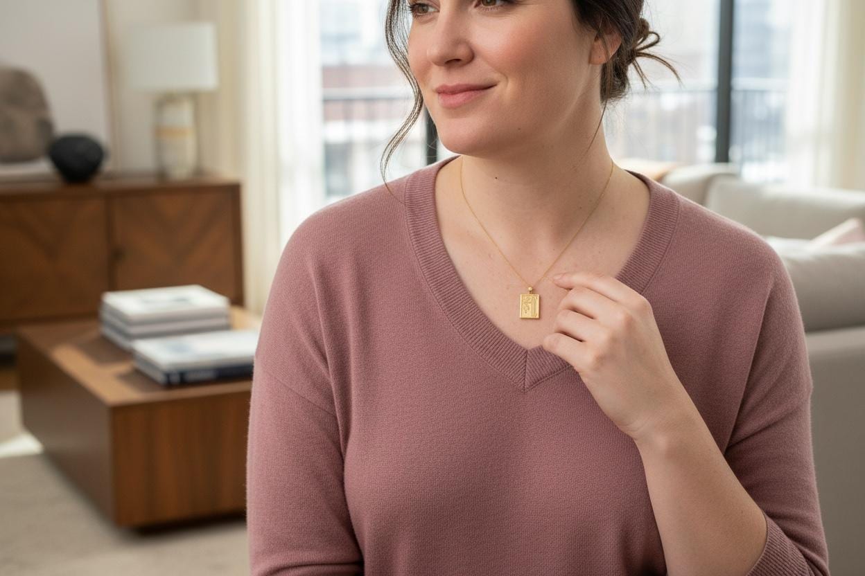 ***Note: the last photos shown are AI generated and do not represent the exact design and style of the necklace, but its general appearance. Photo gives inspiration as to how the piece can be worn or displayed!***
