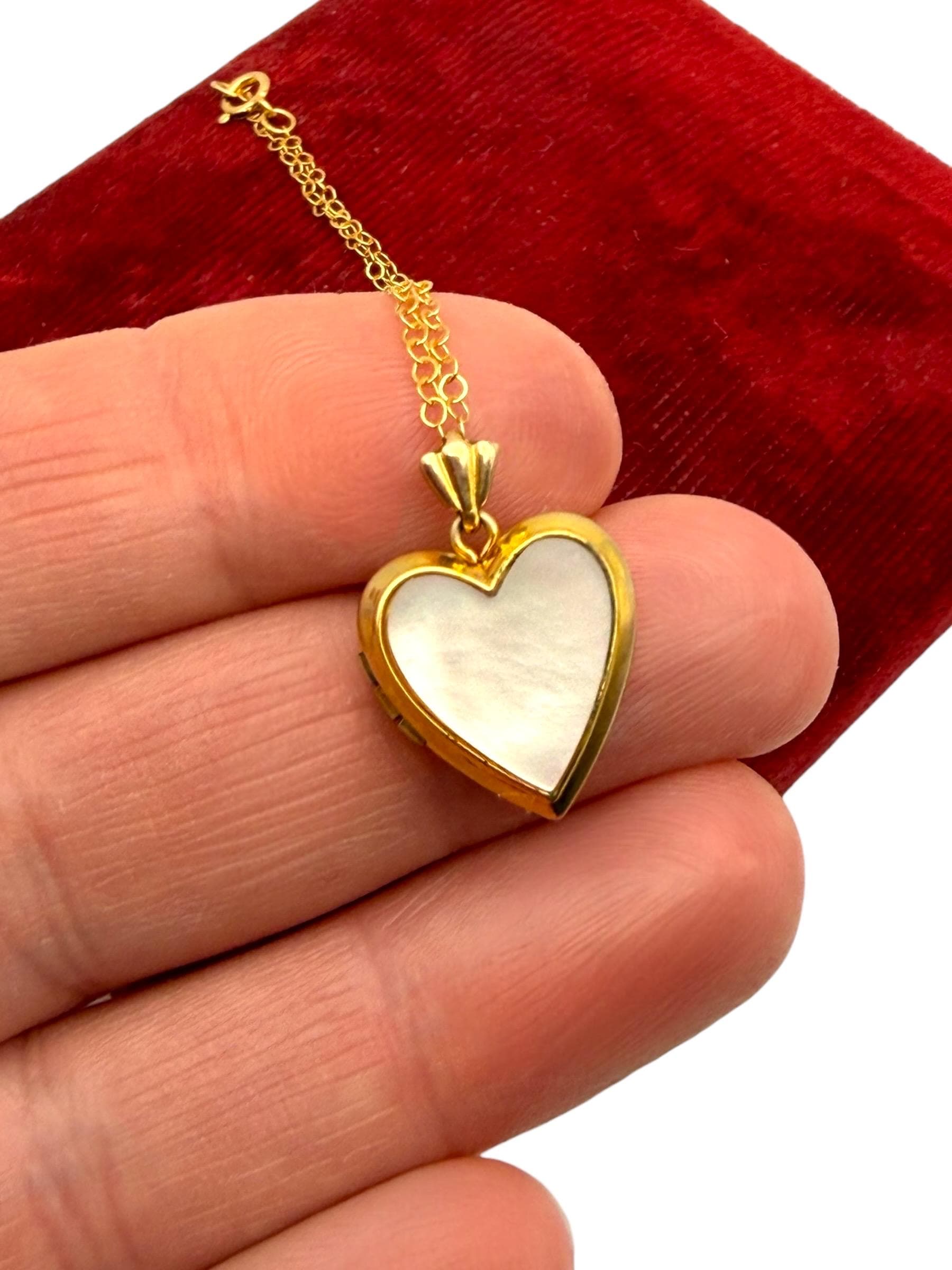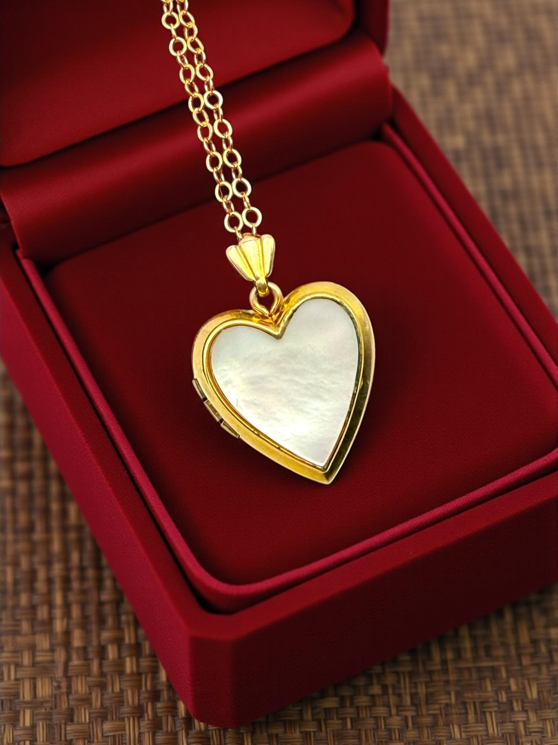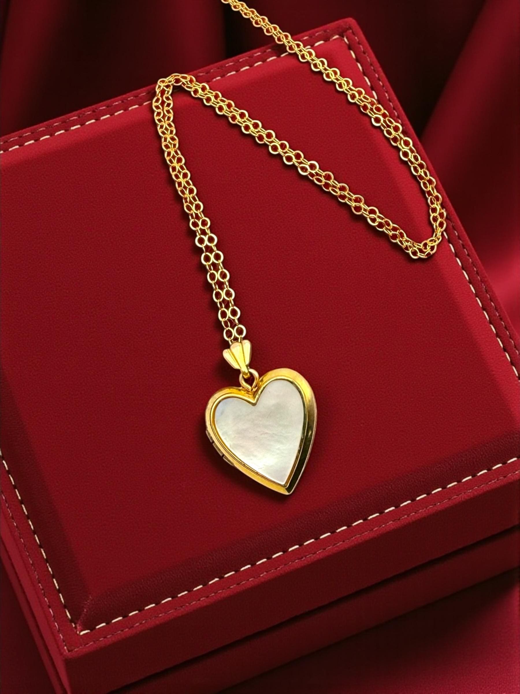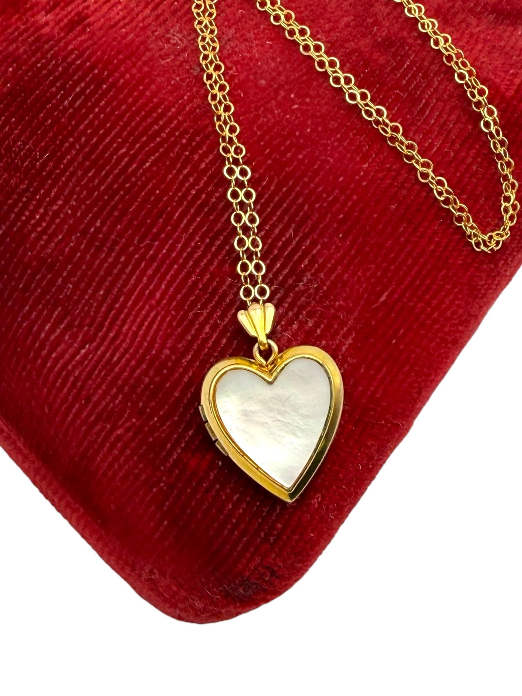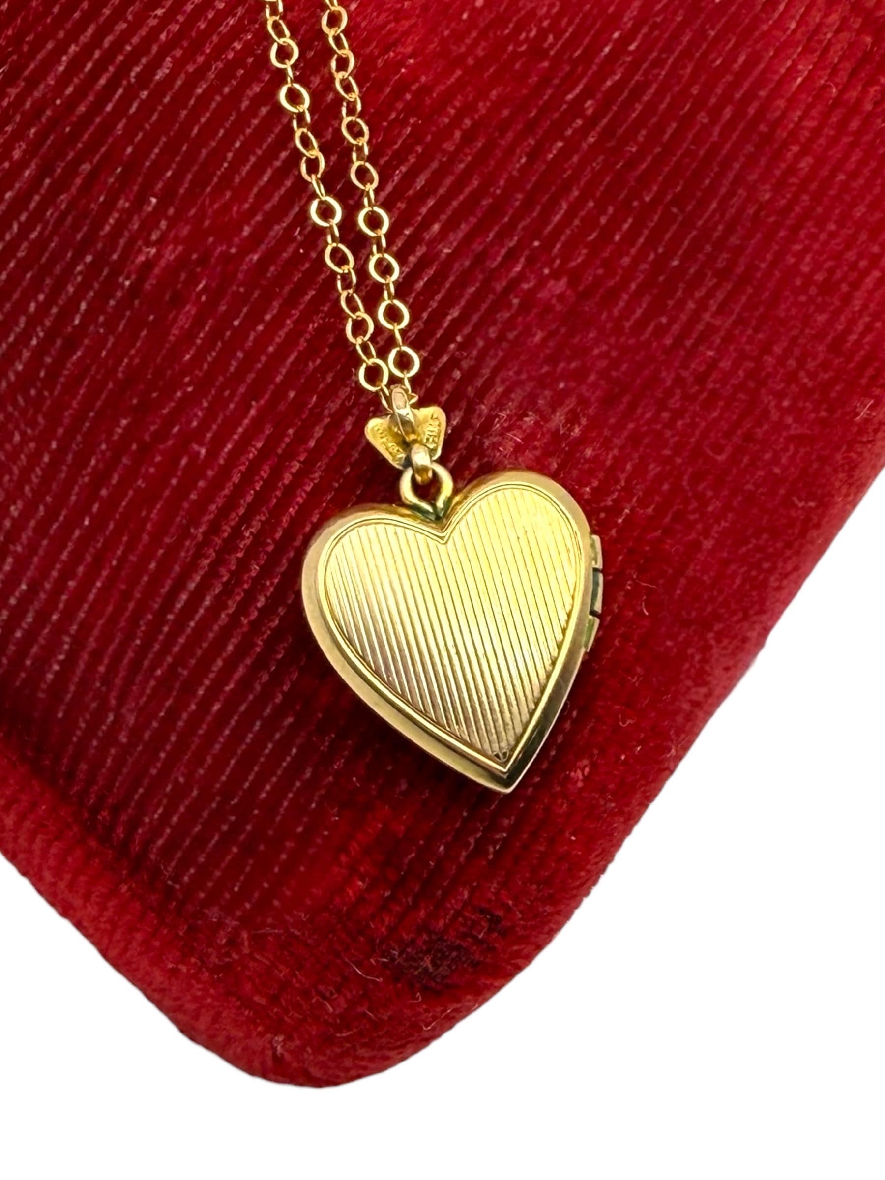 We have attached the adorable heart locket to a new 18'' long 14K Gold filled chain.