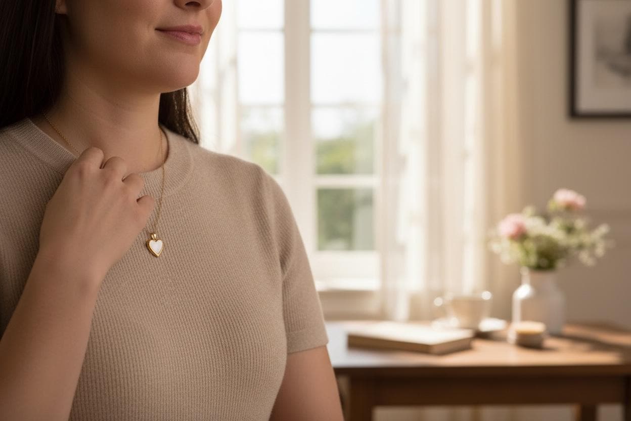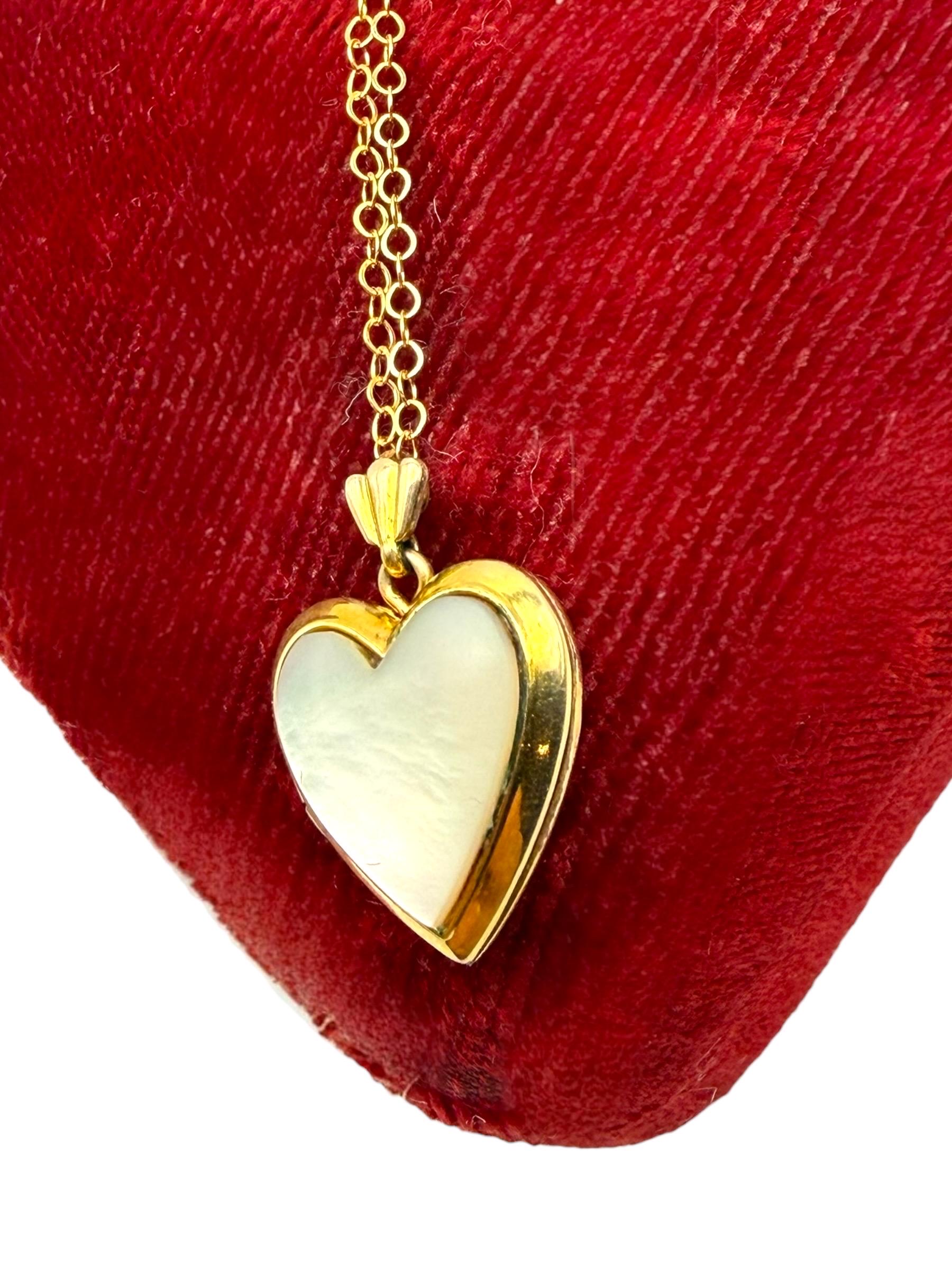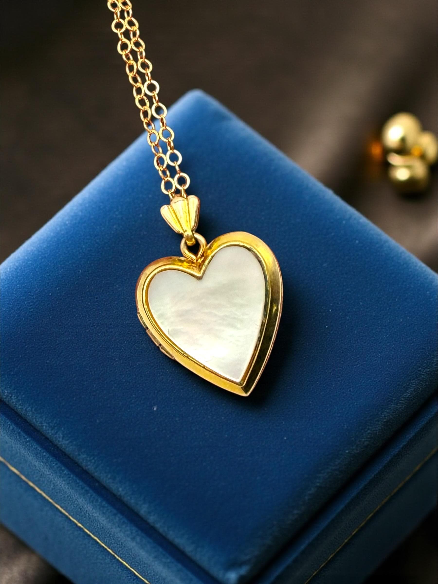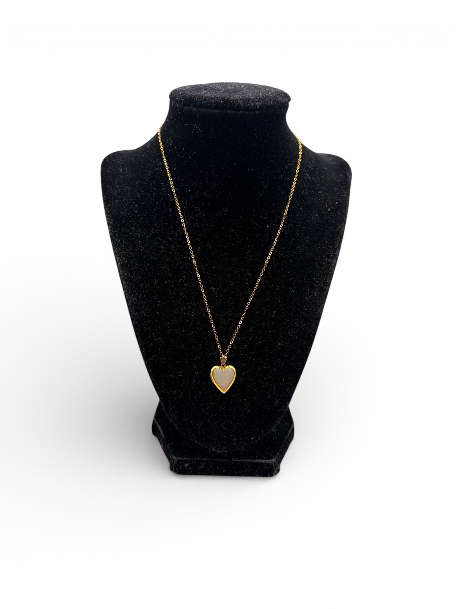 Vintage 12K Gold Filled Heart Locket Necklace: Simulated Mother of Pearl, Speidel Jewelry