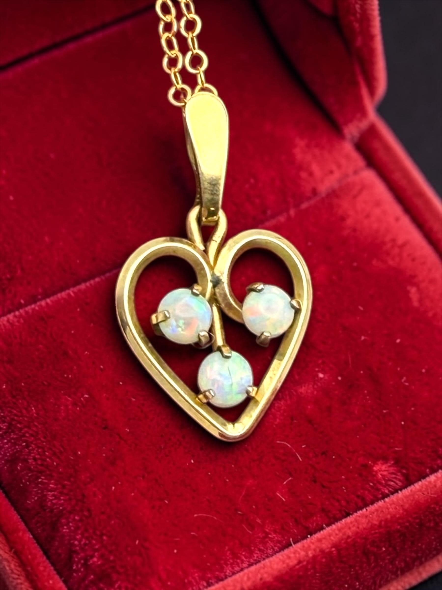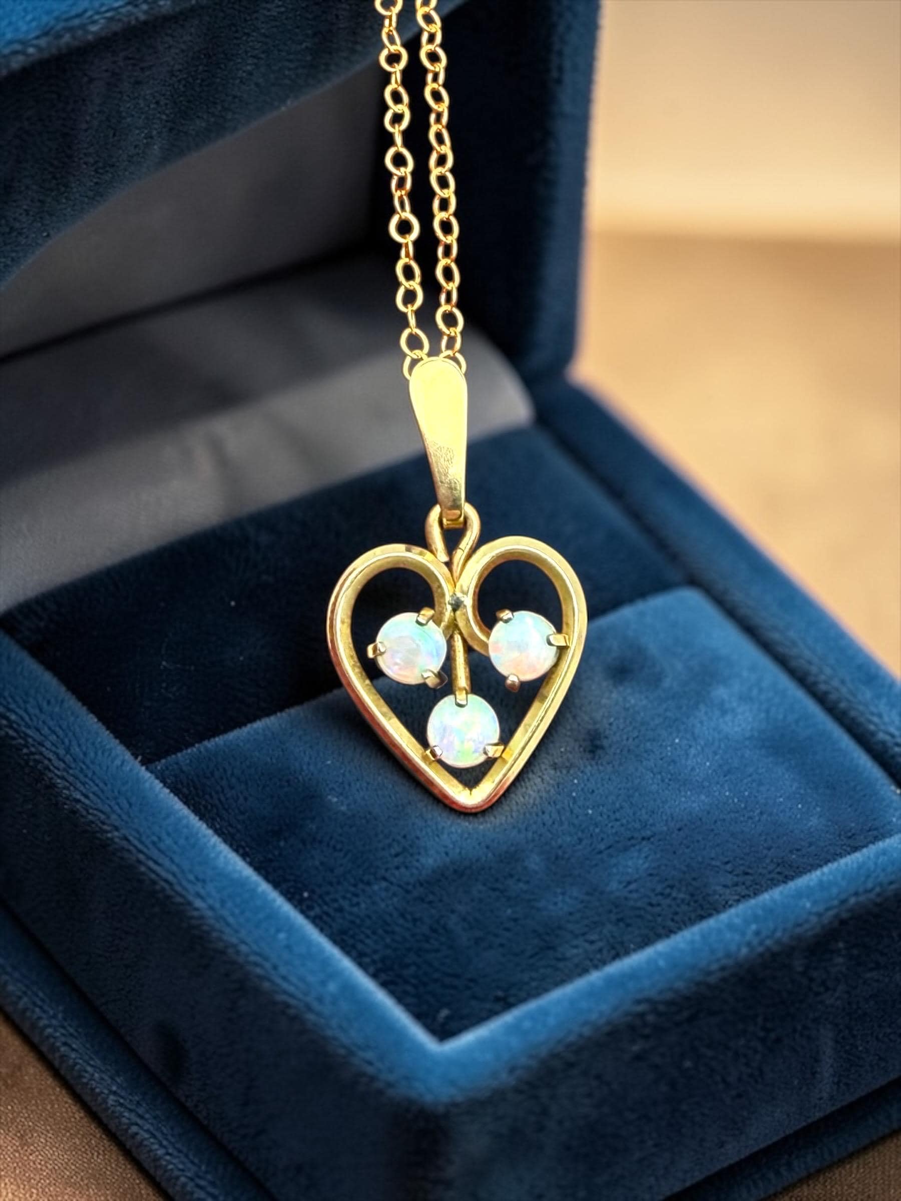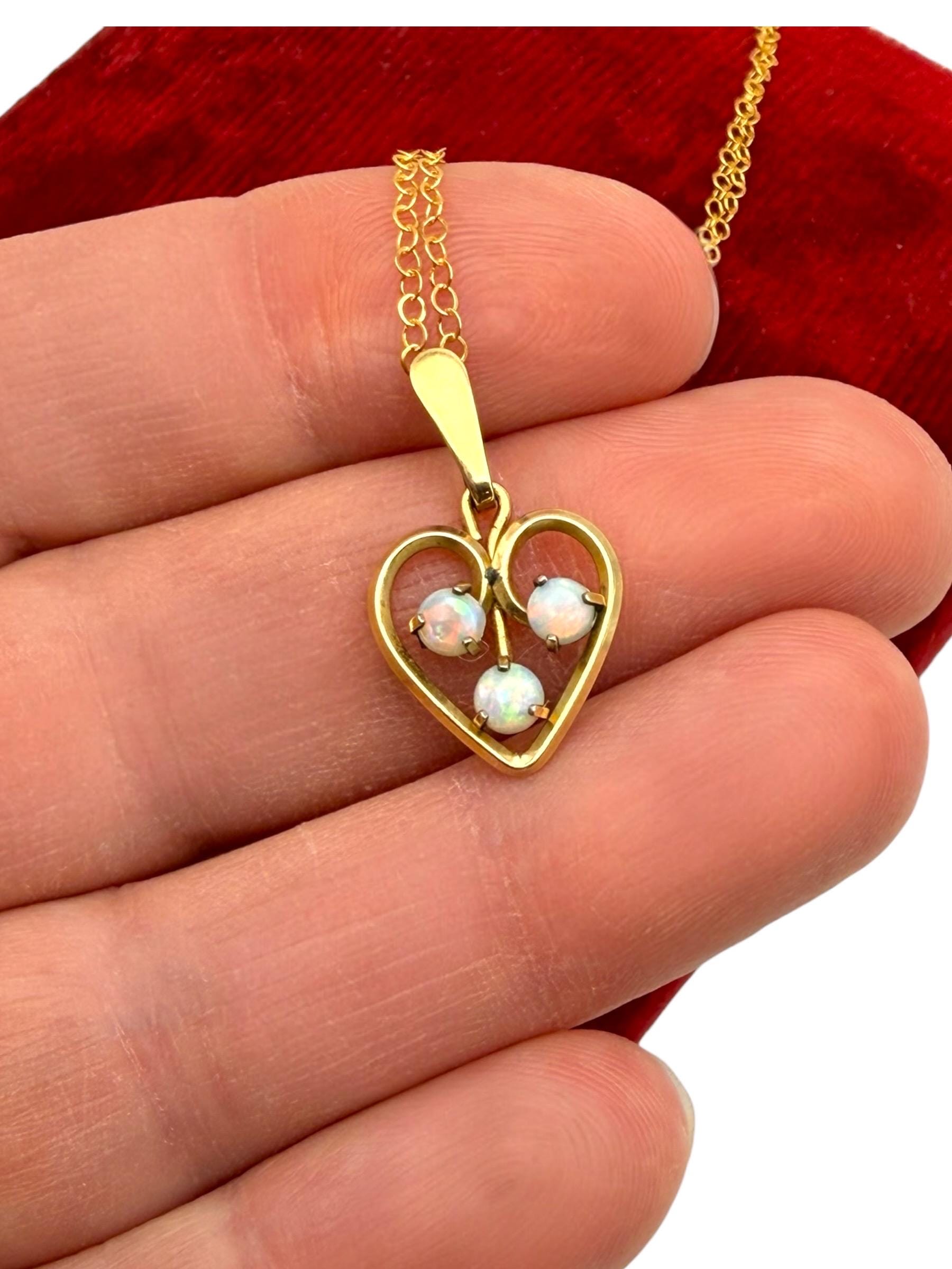 Vintage Heart Opal Necklace – 14K Gold Filled Chain, October Birthstone Pendant