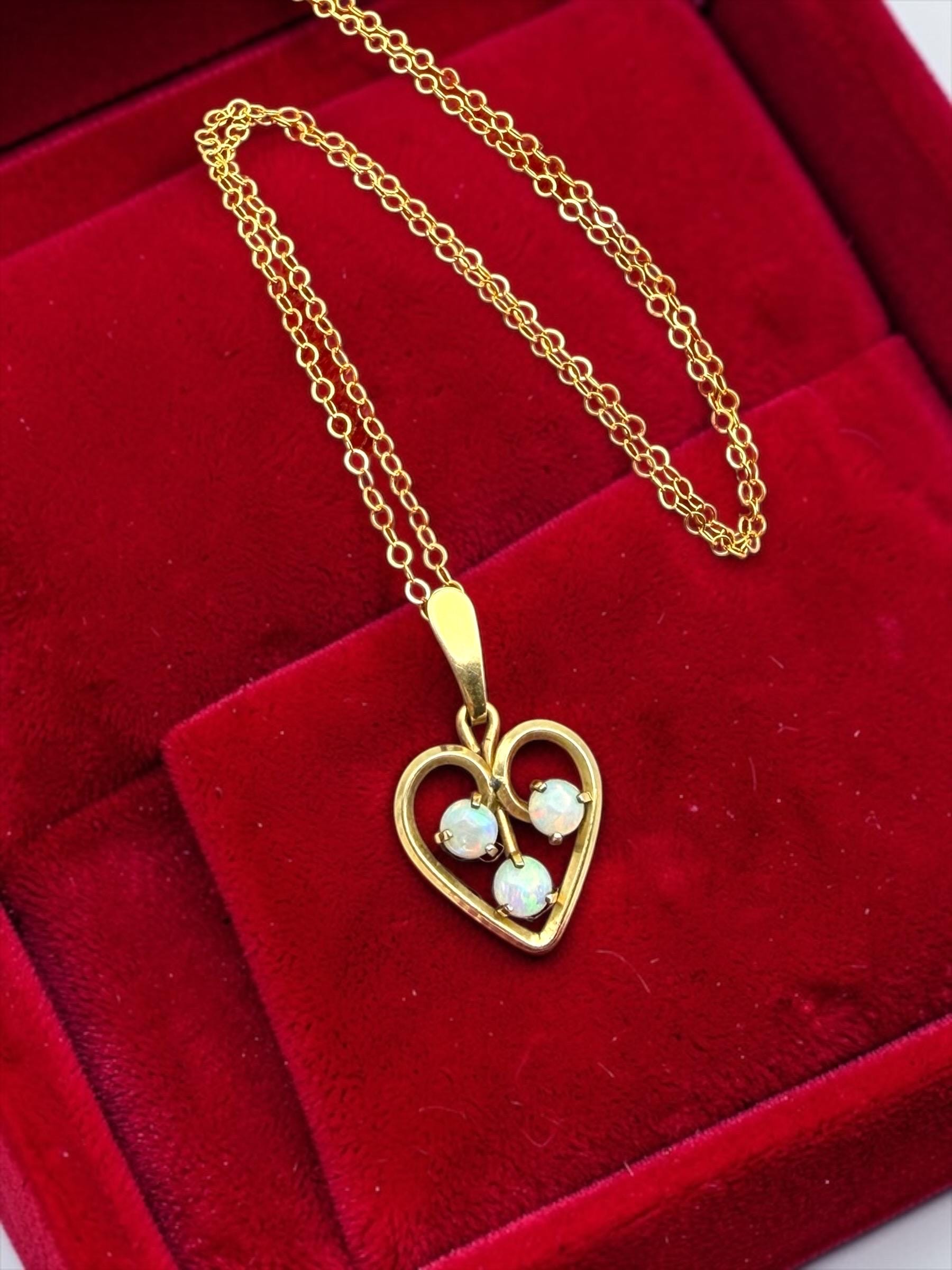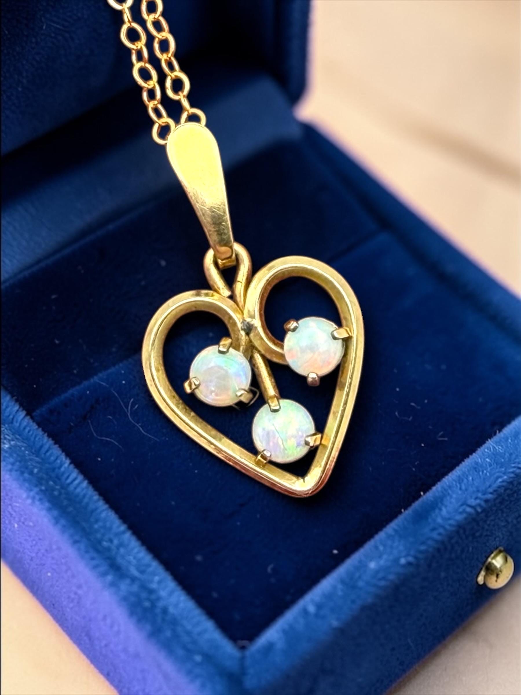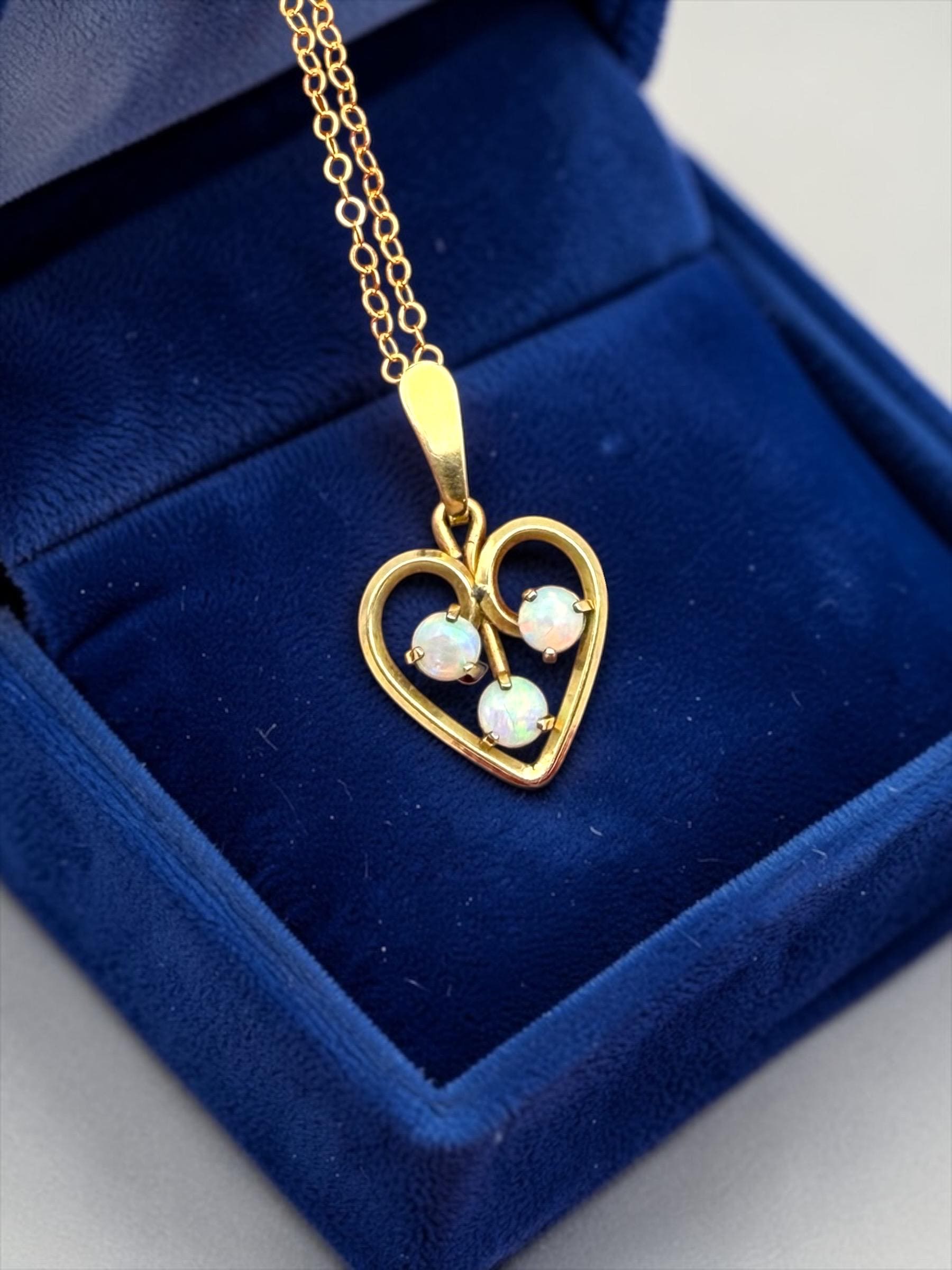 Vintage Heart Opal Necklace – 14K Gold Filled Chain, October Birthstone Pendant