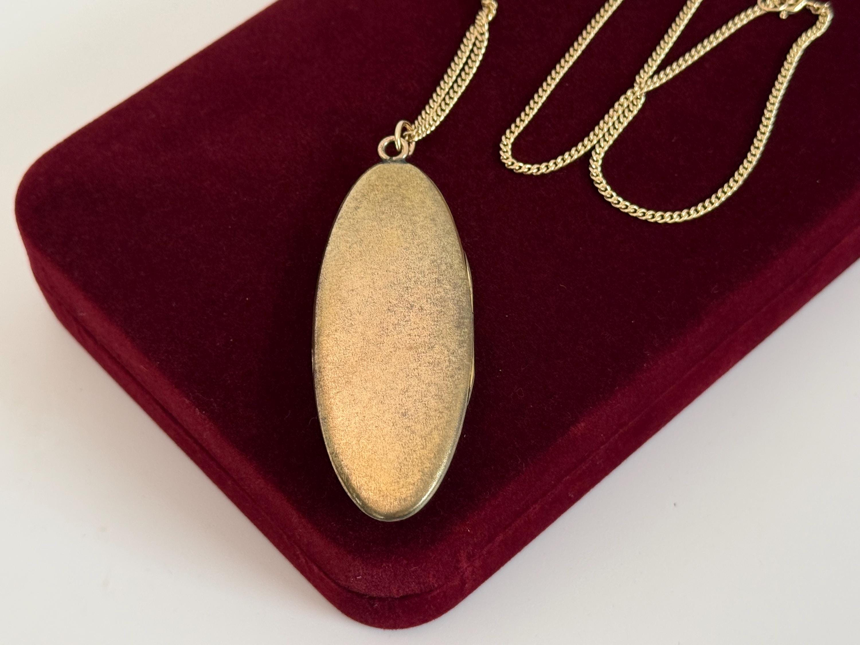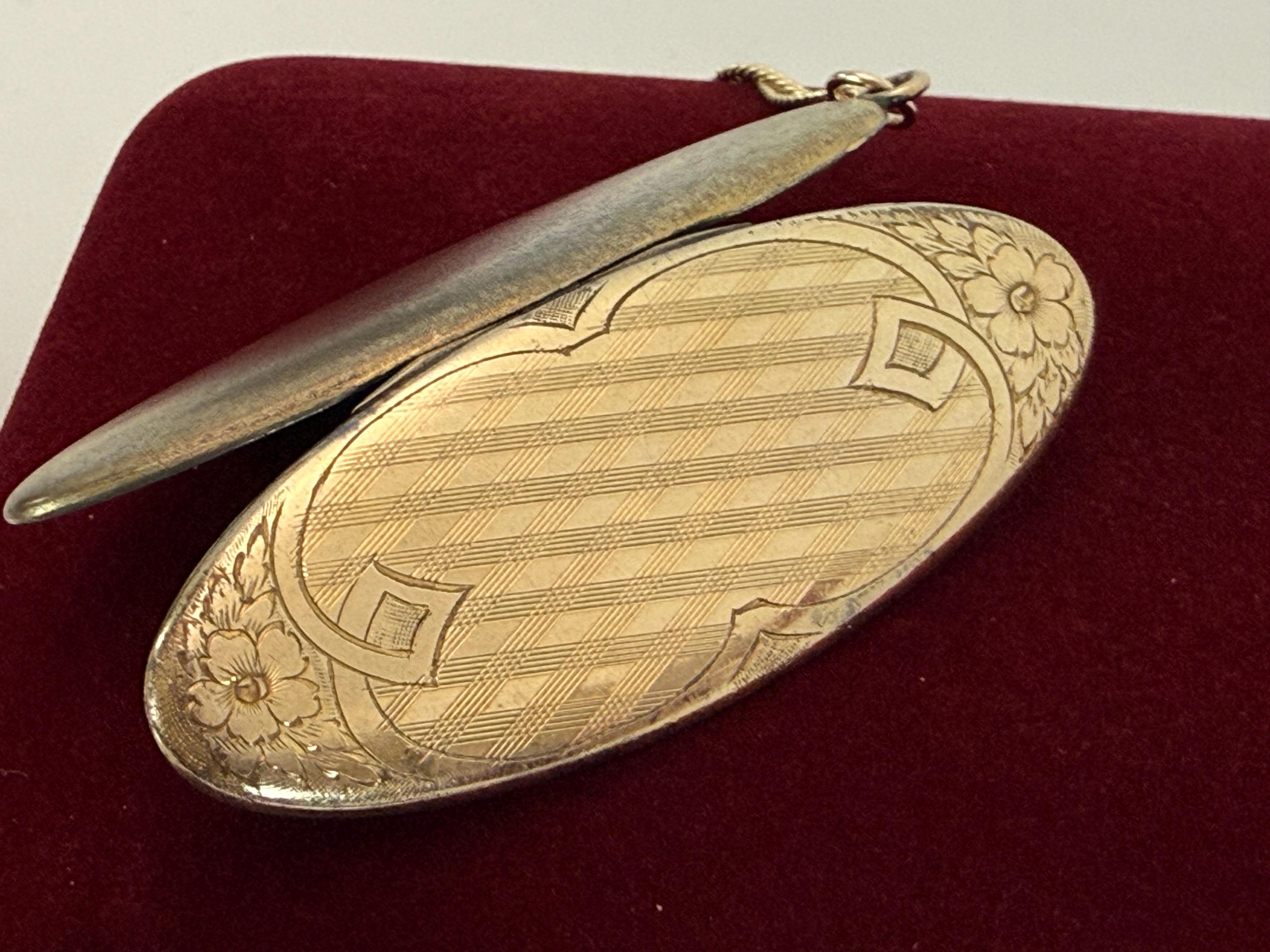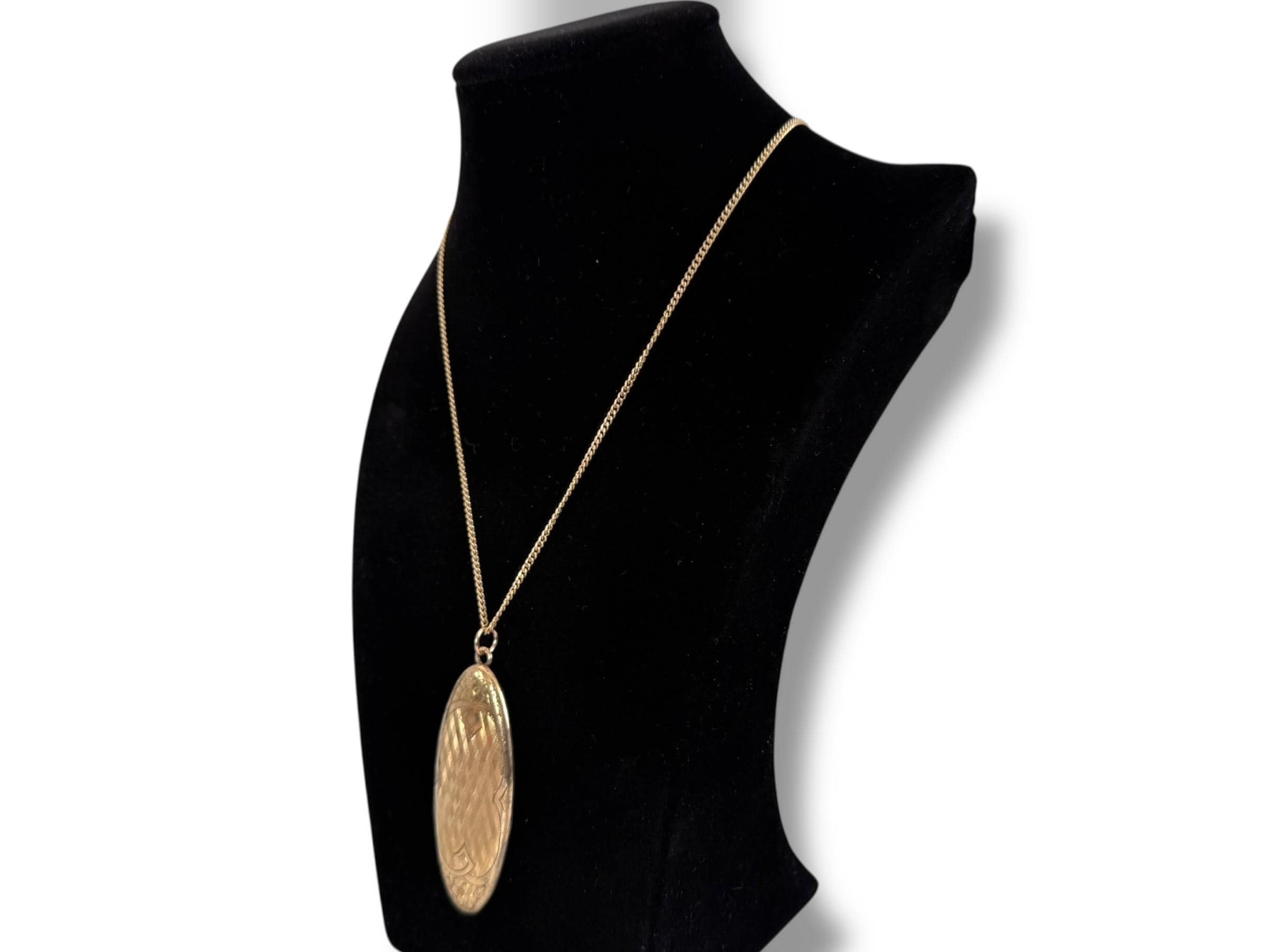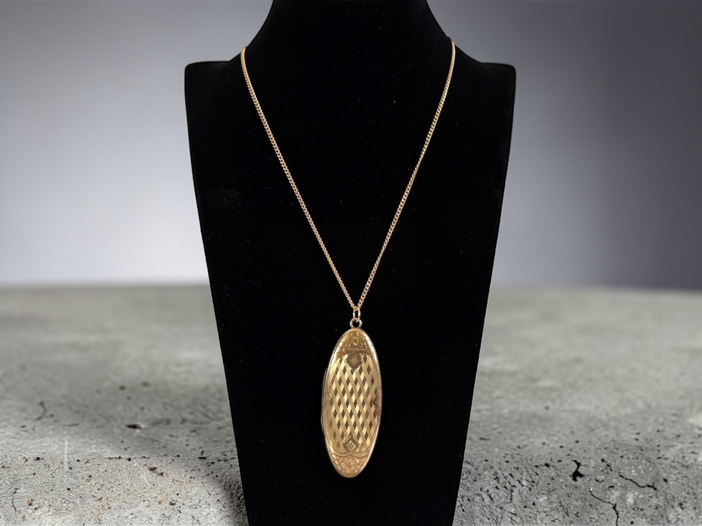Antique LARGE Oval Gold Filled Floral Locket Necklace, Etched Design, 2 Photo Wells