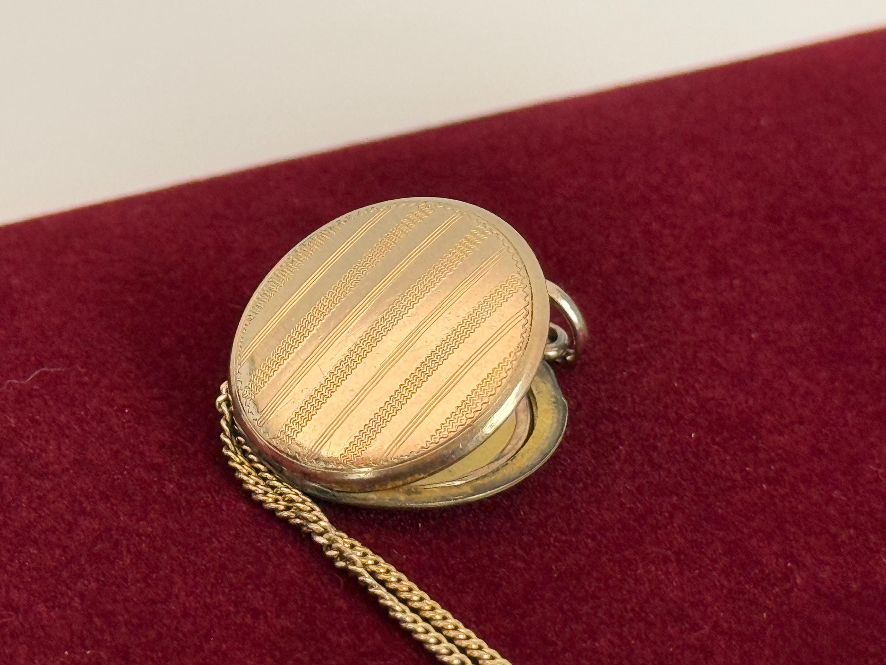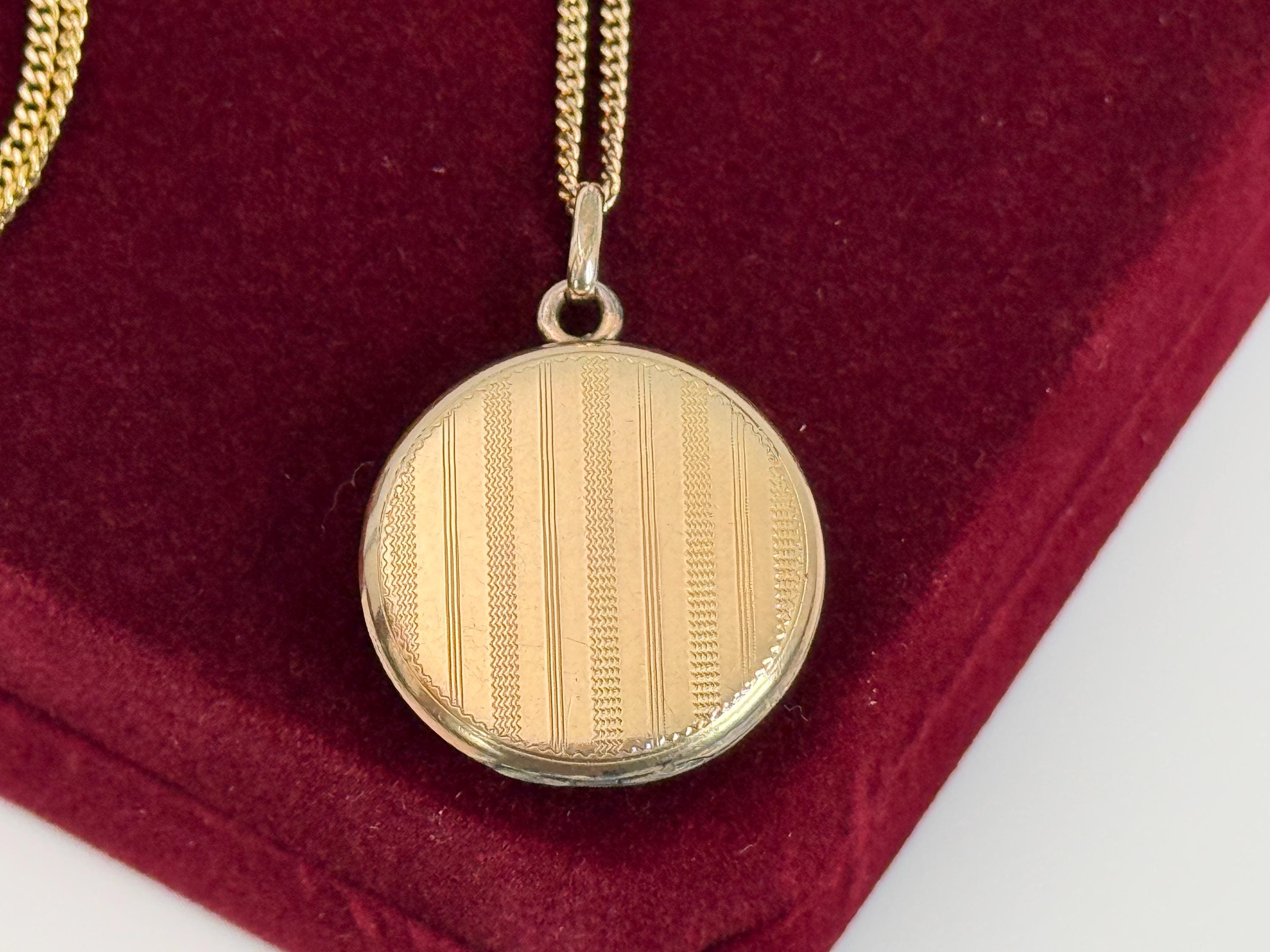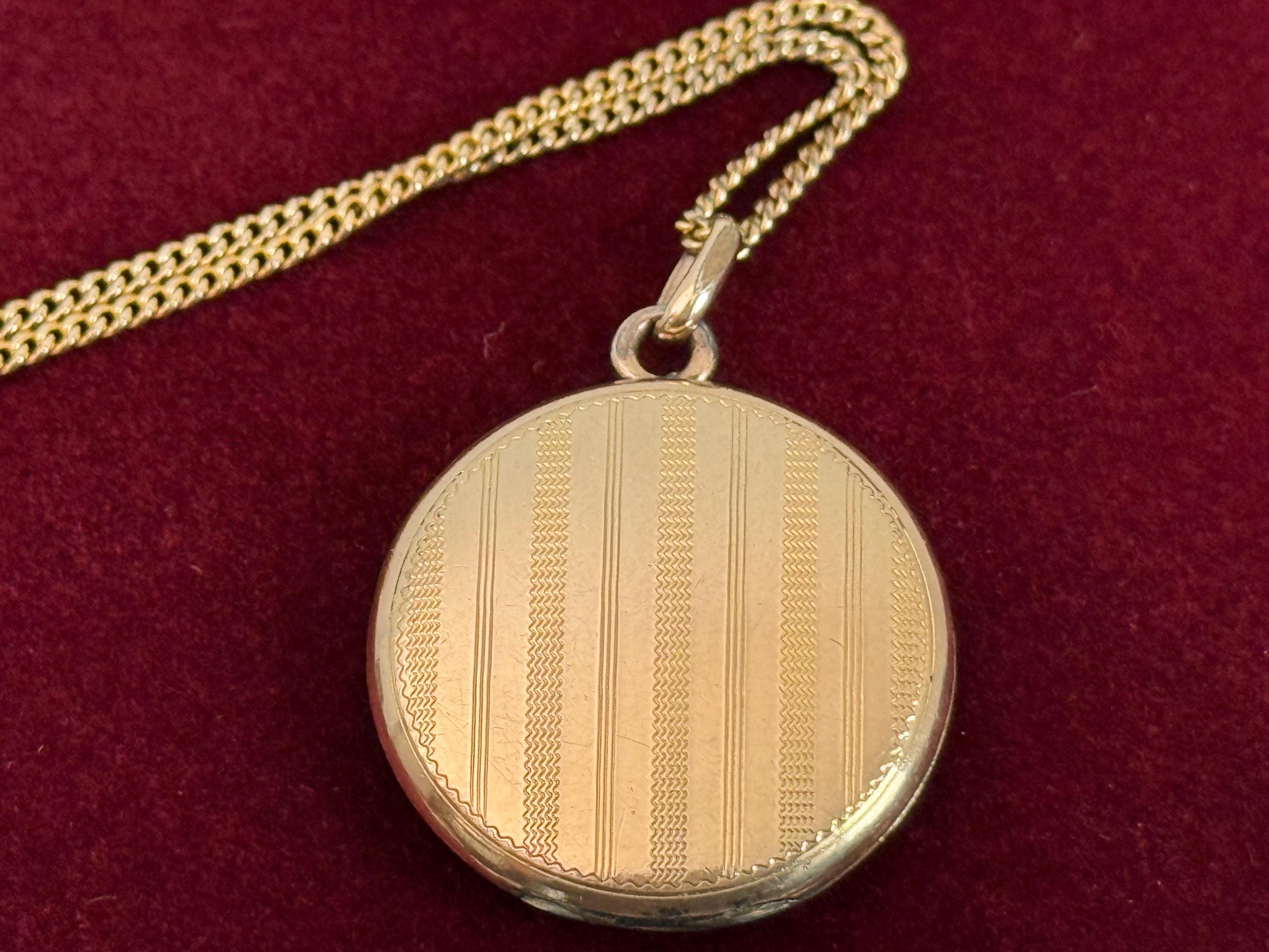 Vintage Gold Filled Etched Pinstripes Locket Necklace, 14K GF Chain