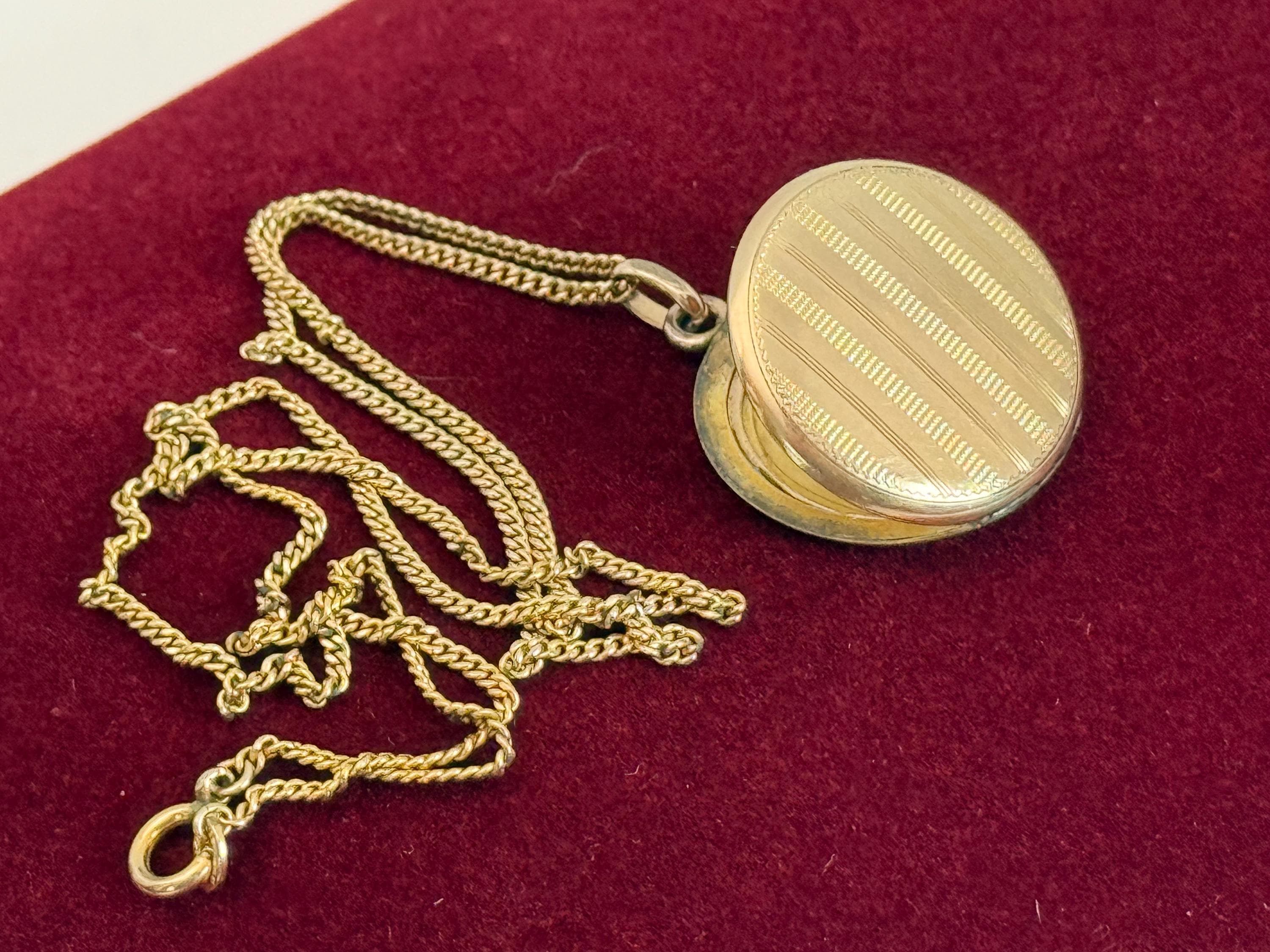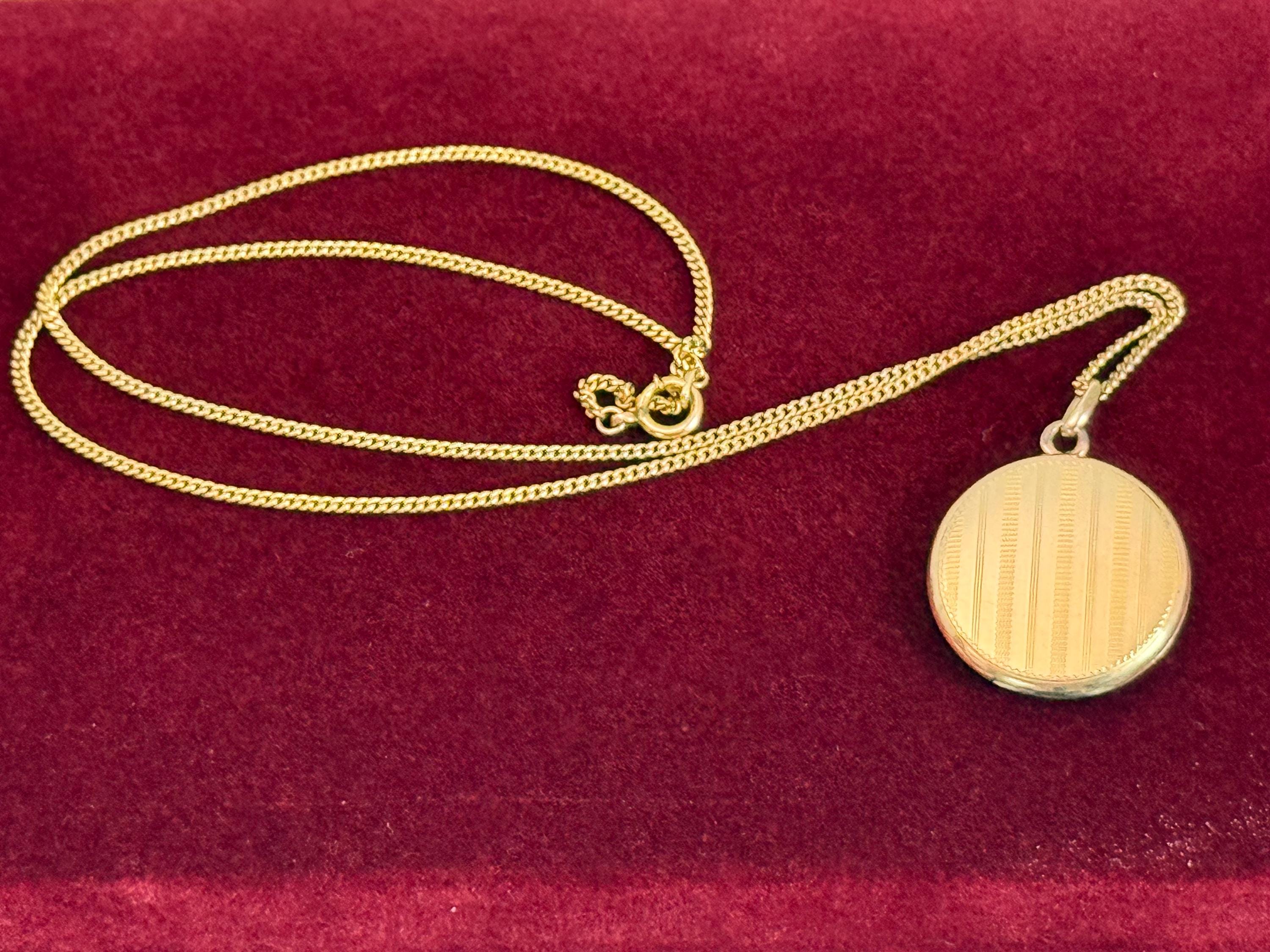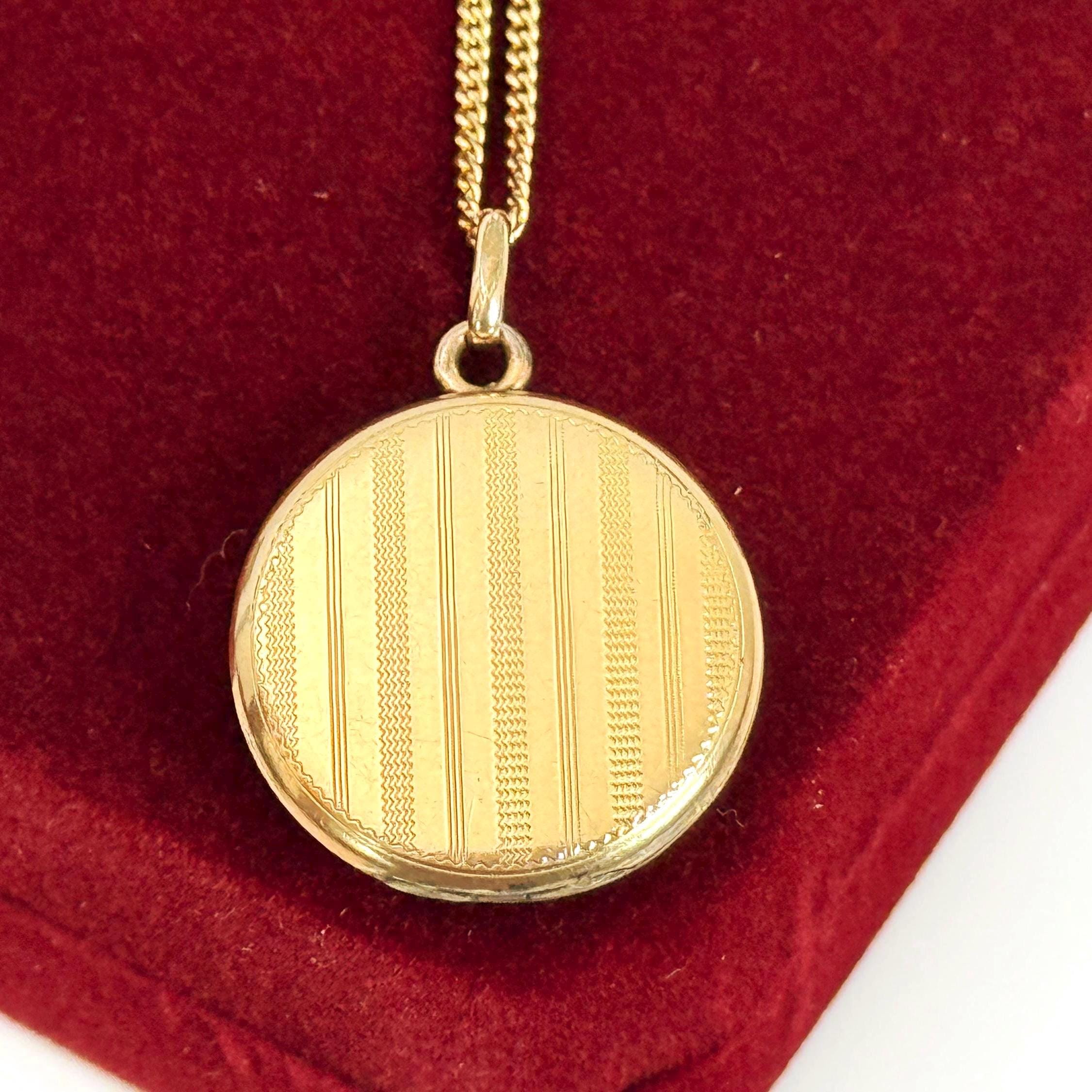 Vintage Gold Filled Etched Pinstripes Locket Necklace, 14K GF Chain