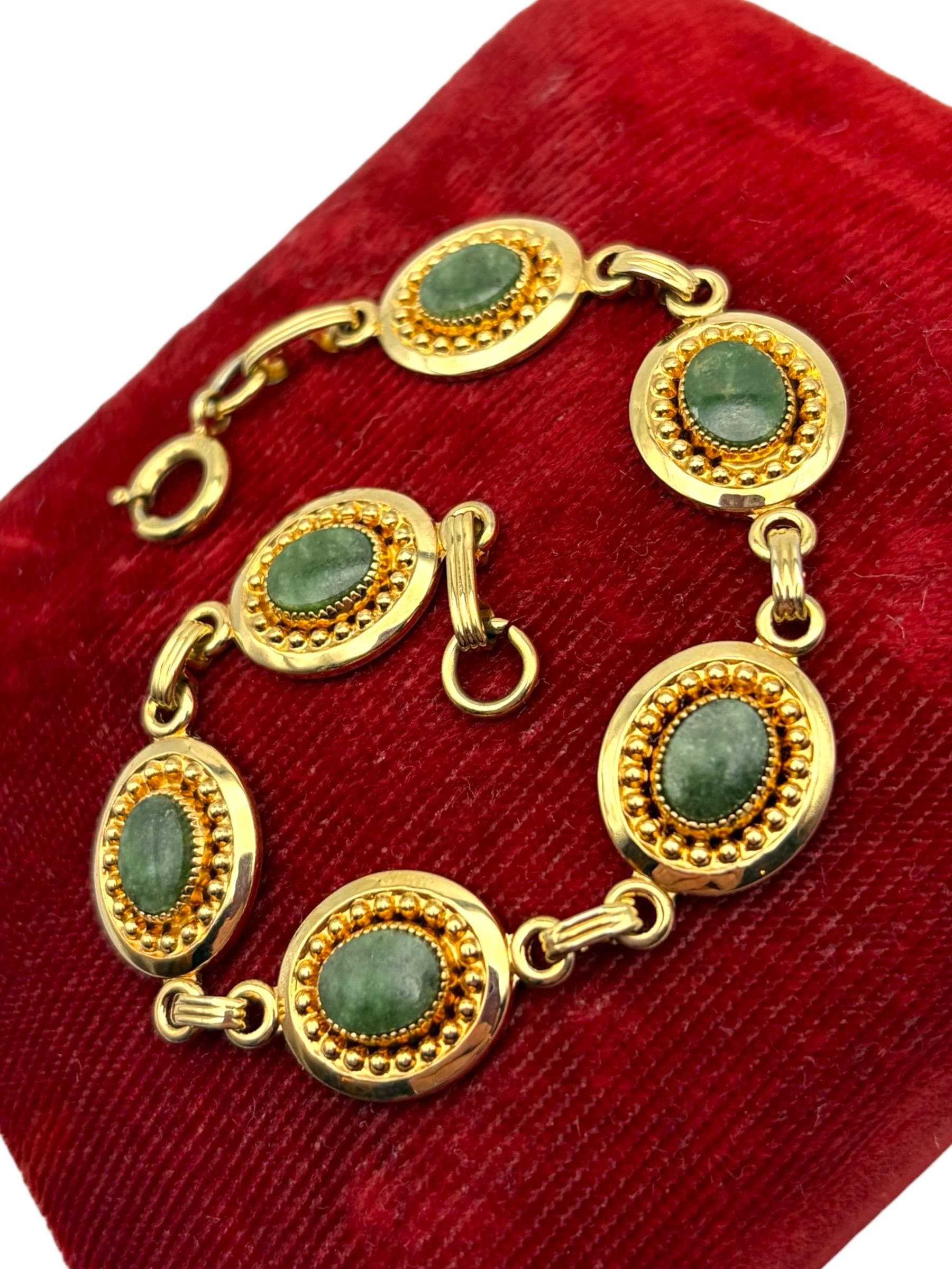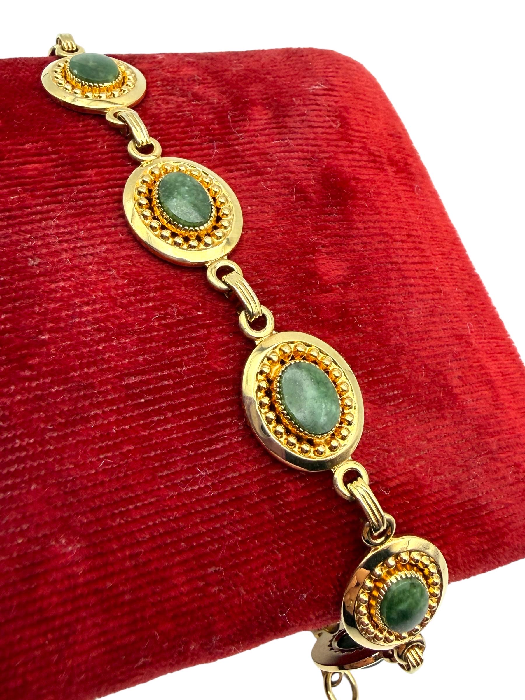 Vintage 12K Gold Filled Bracelet – Green Nephrite Jade Estate Jewelry 7 1/4'' long