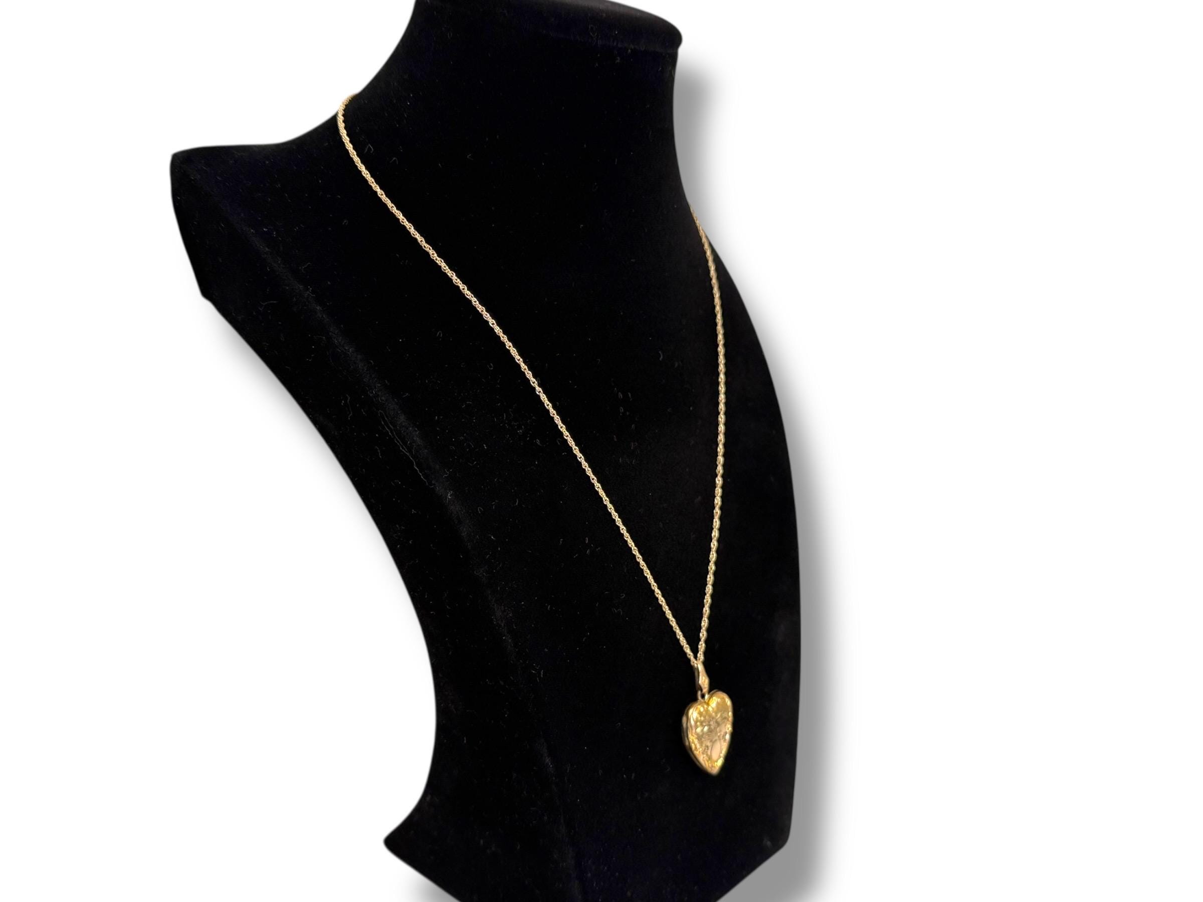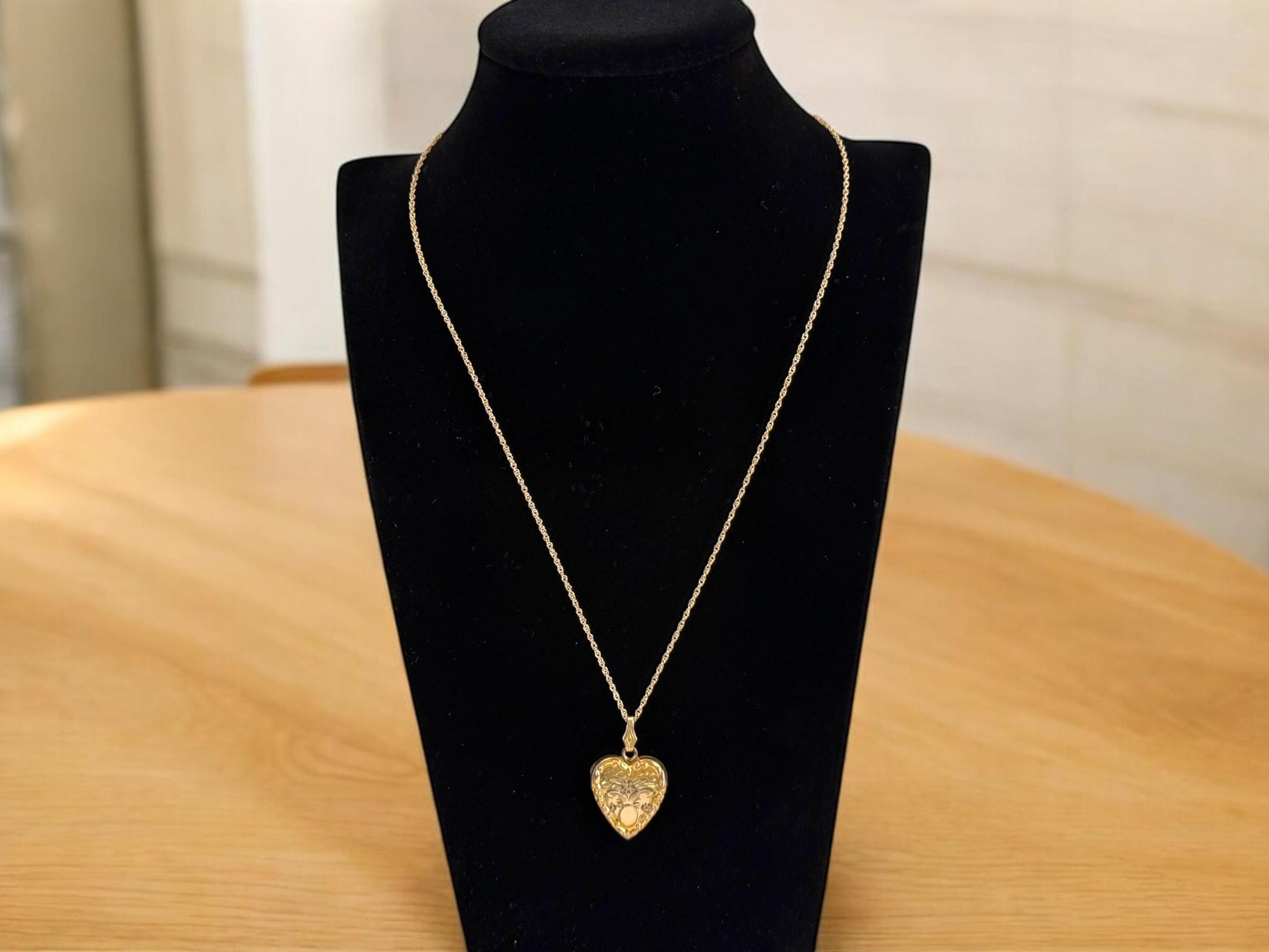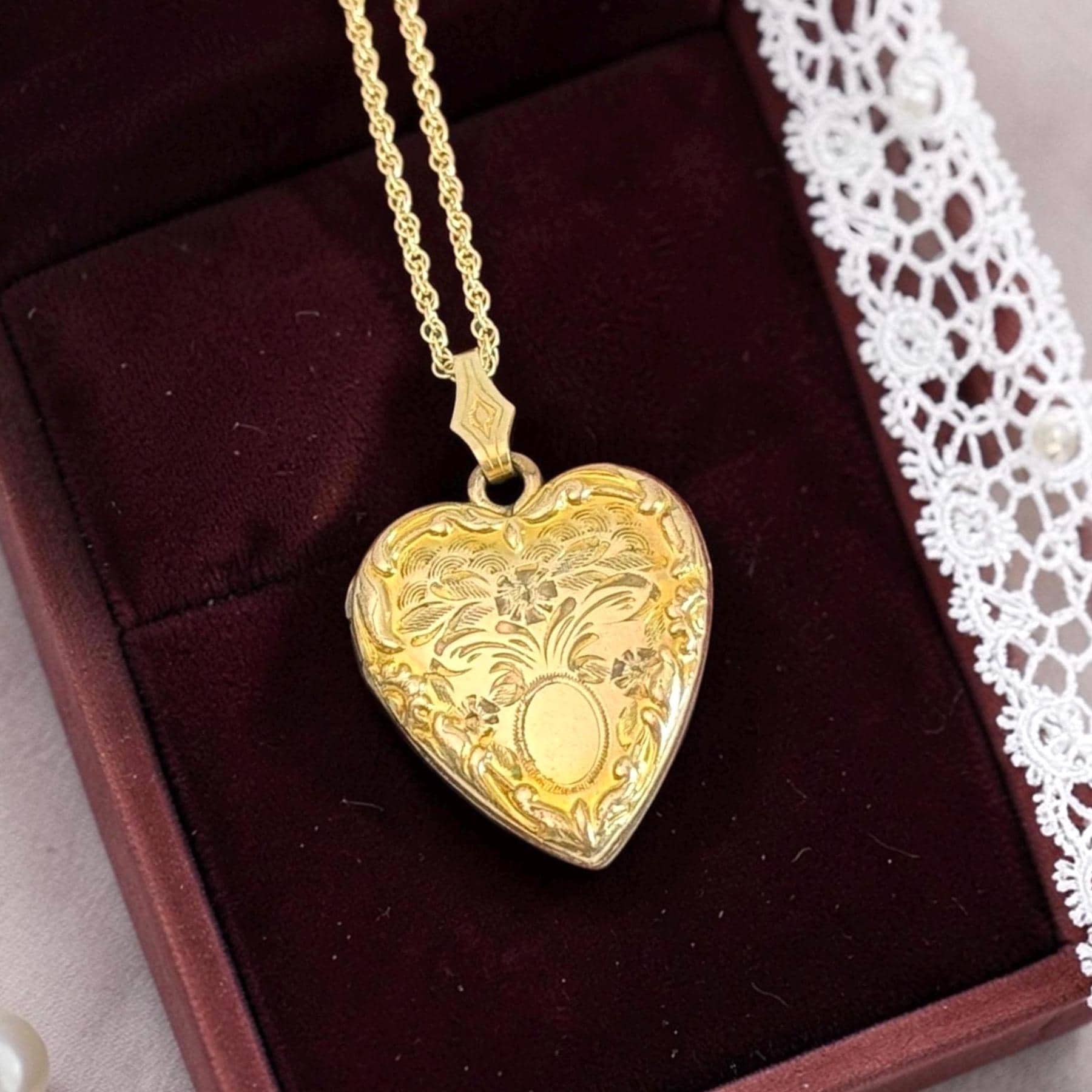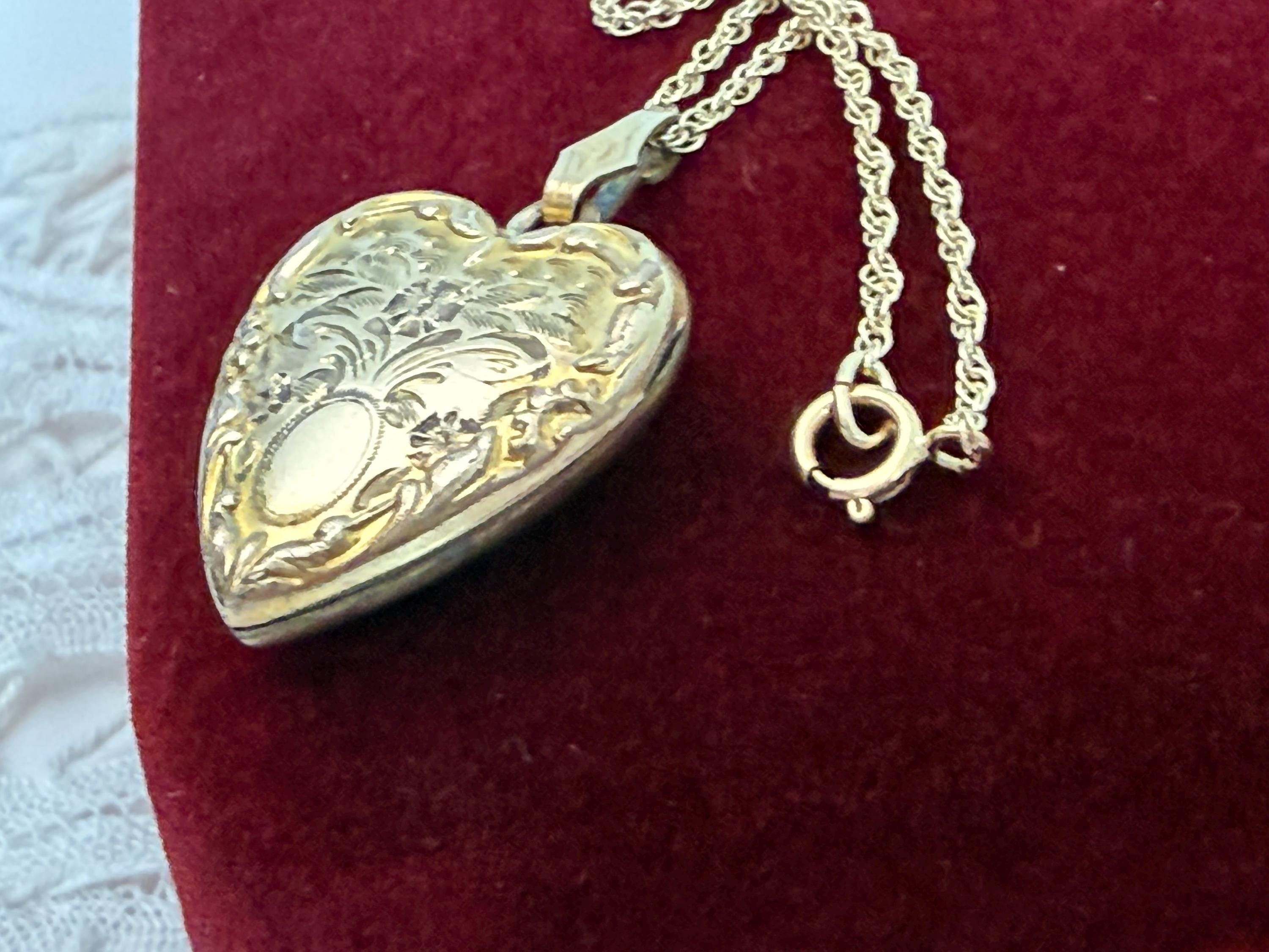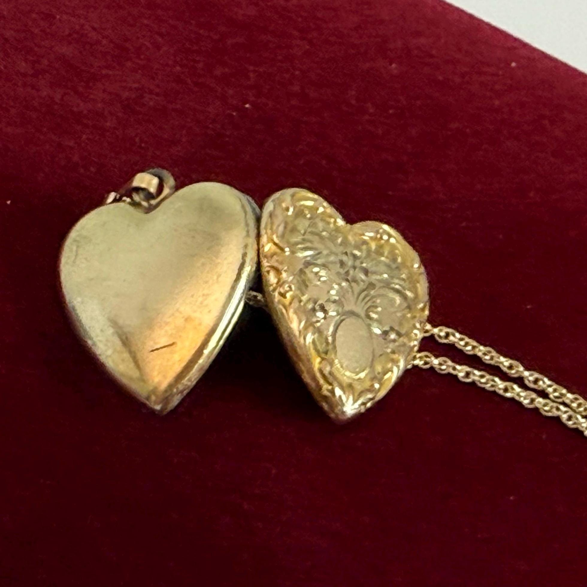 Vintage 10K Gold Filled Heart Locket, Etched Floral Repousse Necklace, 14K GF Chain