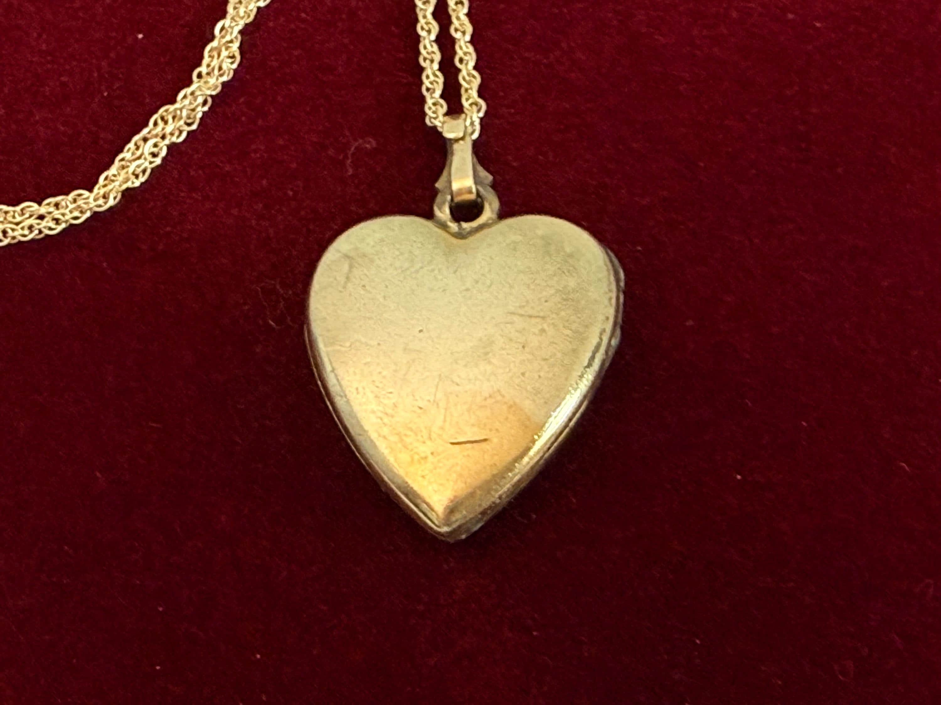Inside the locket there is a raised heart and inside that is marked 10K 1-20 GF and a maker's mark that is indiscernible.