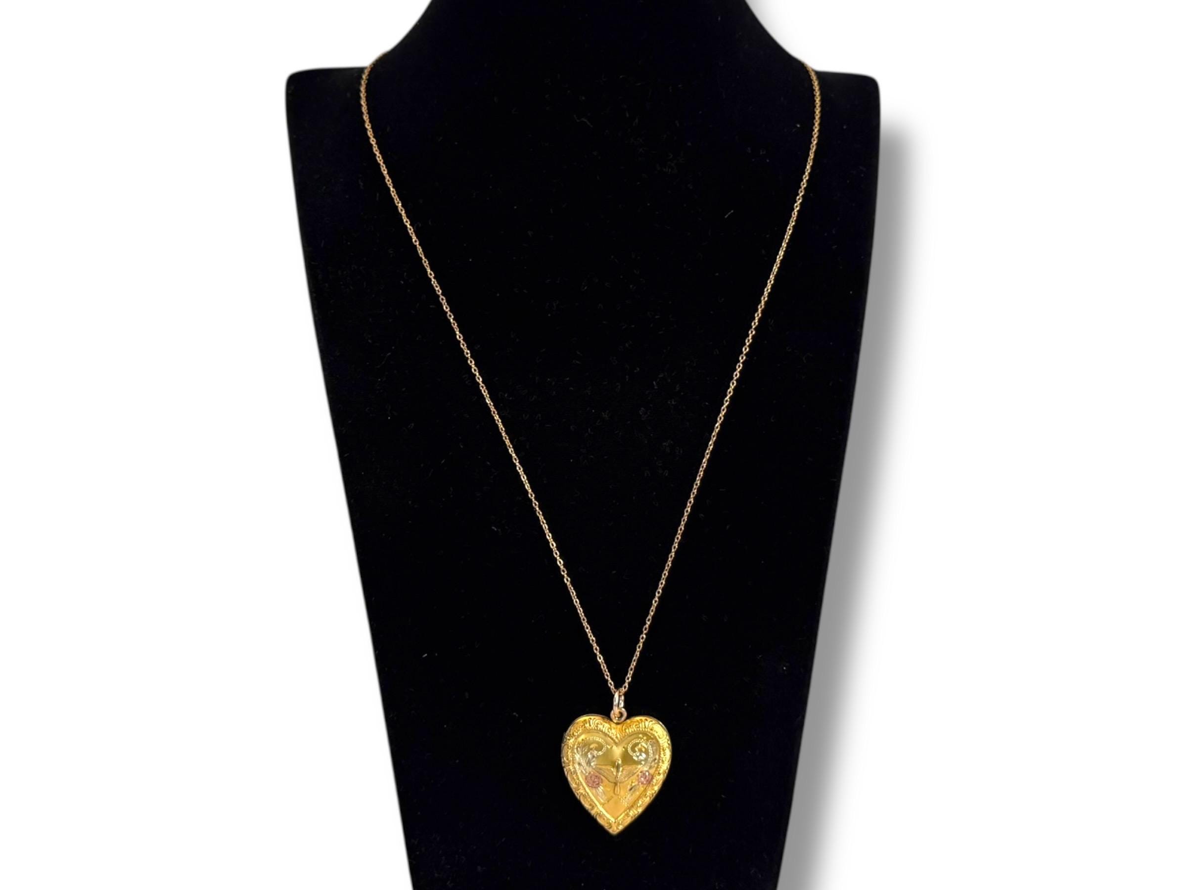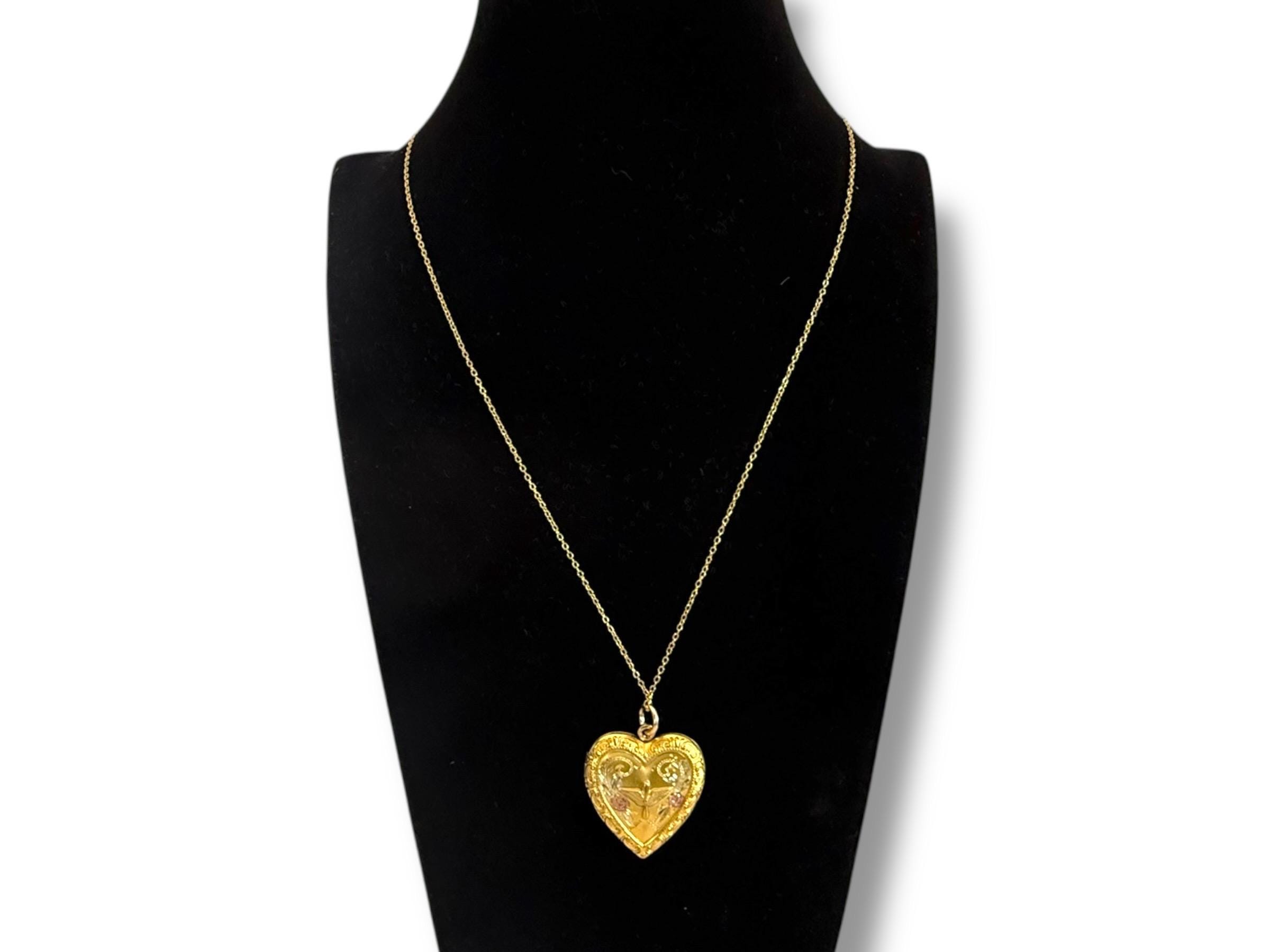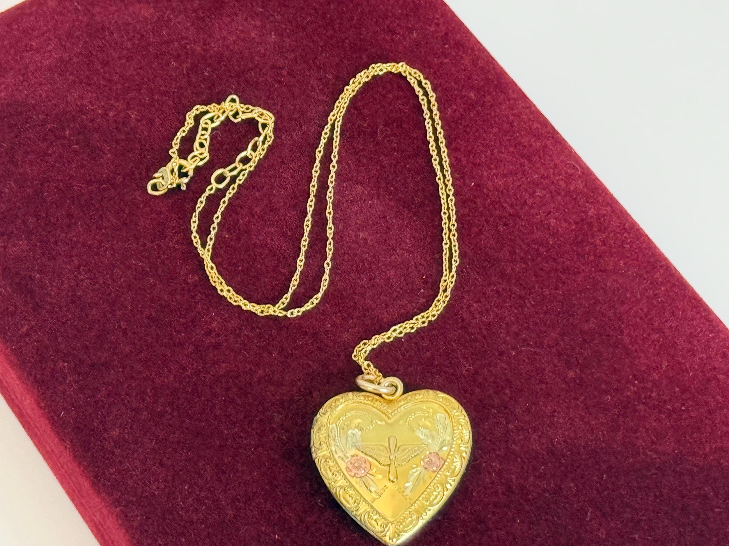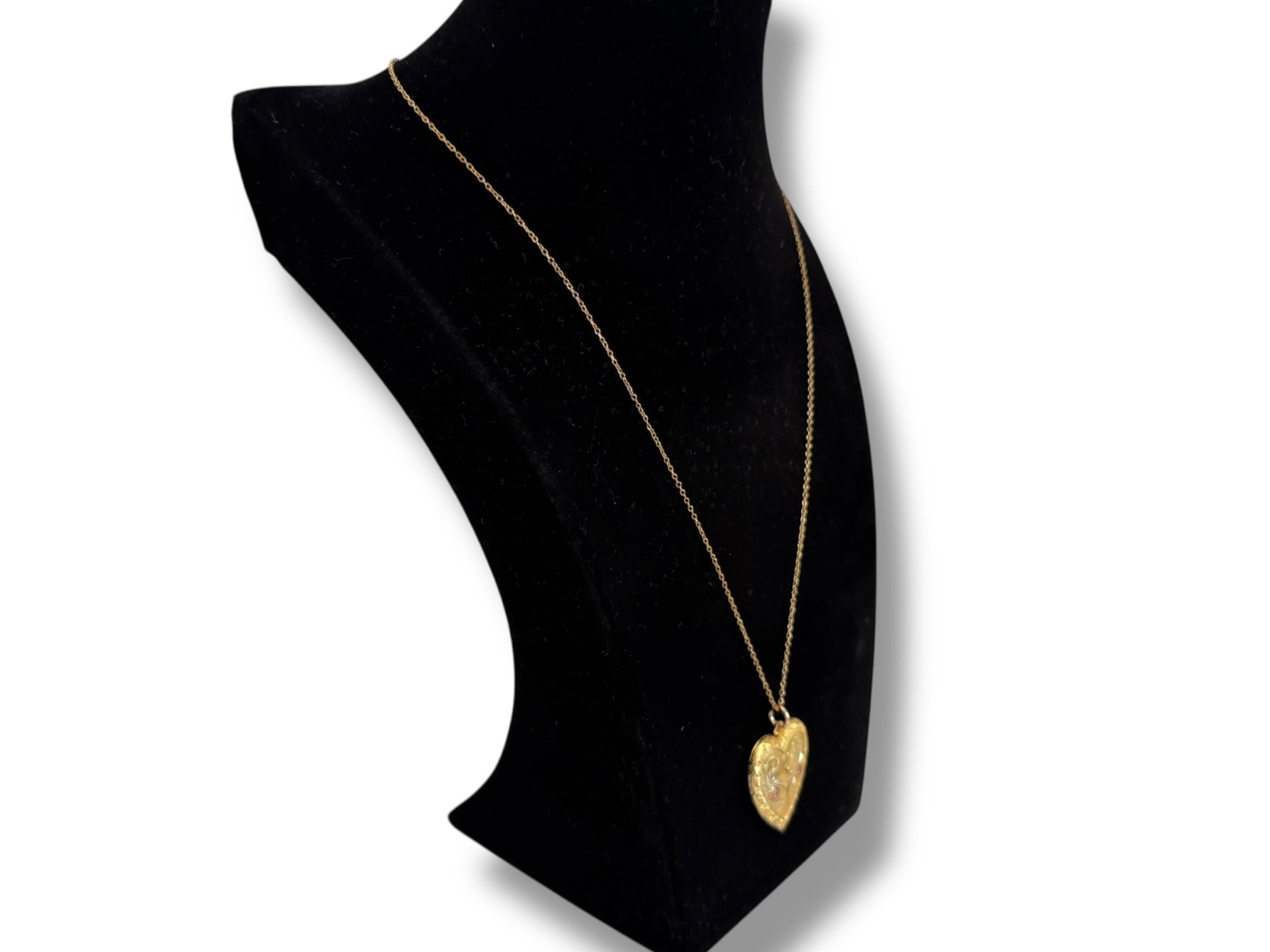 Vintage 12K Gold Filled Sterling Locket Necklace, US Army Air Corp Heart, 1940s Repousse